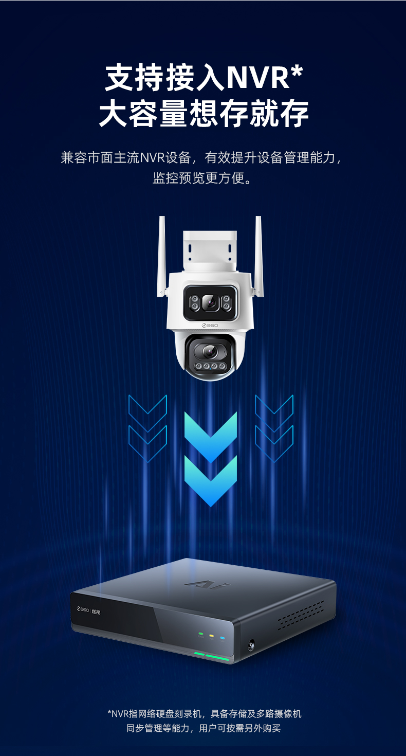 【超值】360智能摄像机D2 Pro双摄版 双200万镜头 微光夜视 移动侦测 360度全景画面