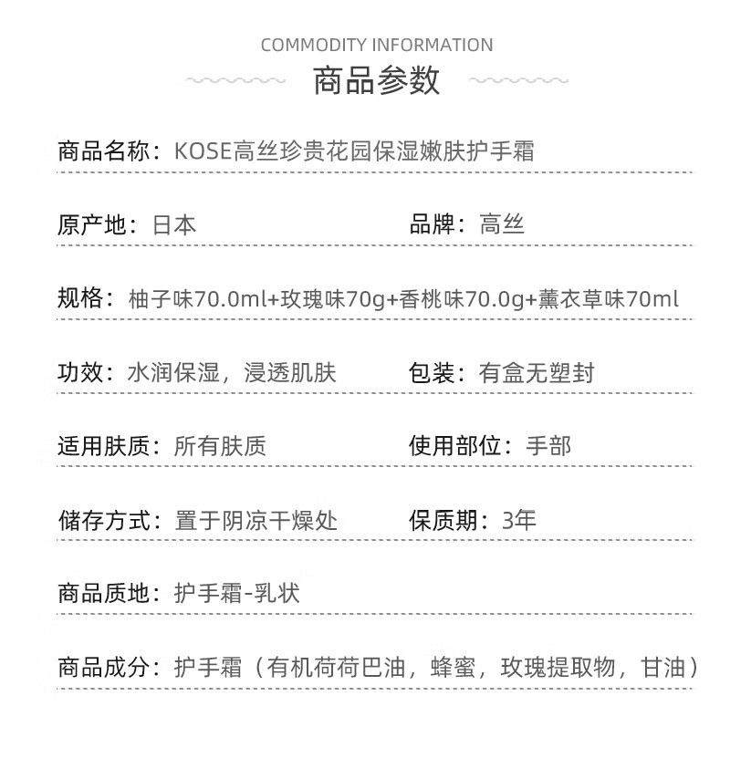【保税仓】Kose/高丝珍贵花园护手霜玫瑰味