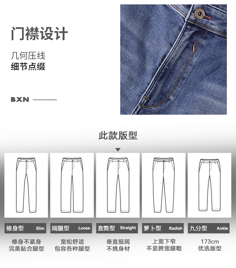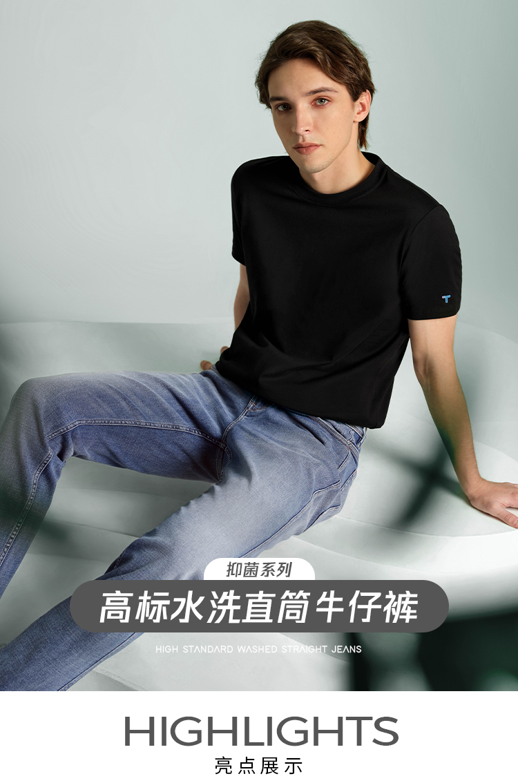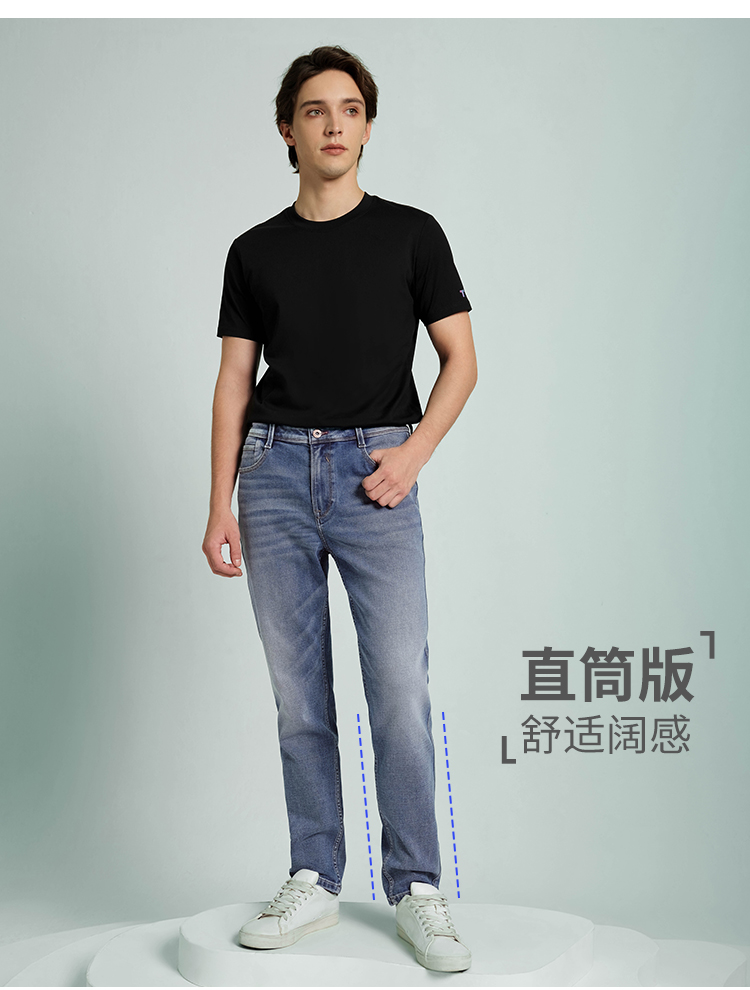 拇指白小牛高标水洗BXN直筒牛仔裤无限系列
