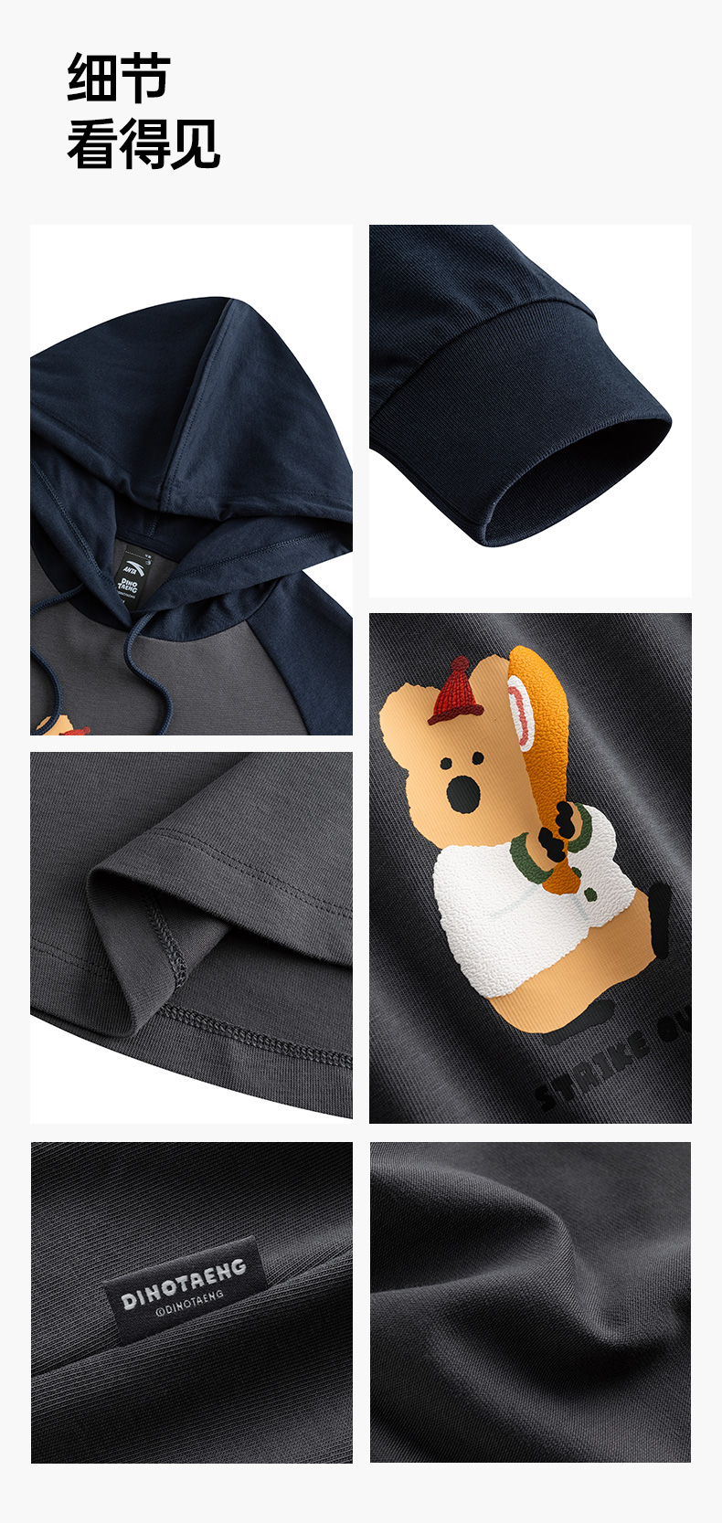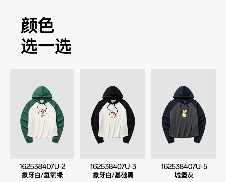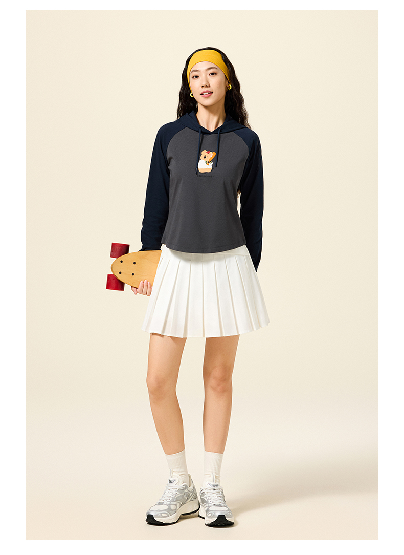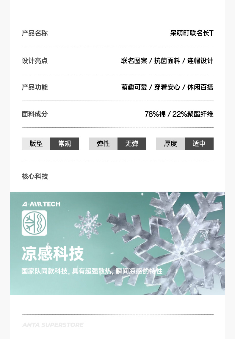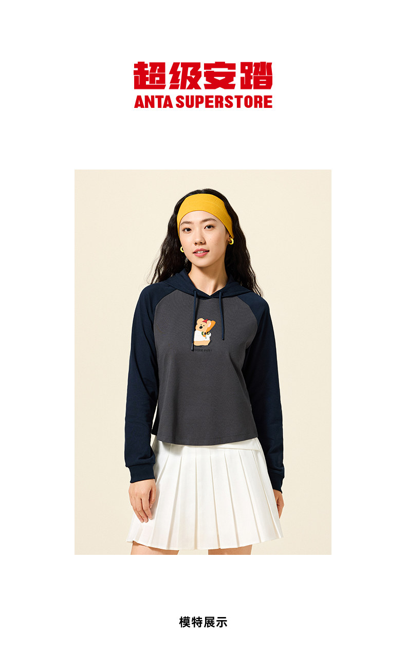 超级安踏呆萌町联名长T丨运动长袖T恤女士凉感抗菌连帽套头衫162538407U