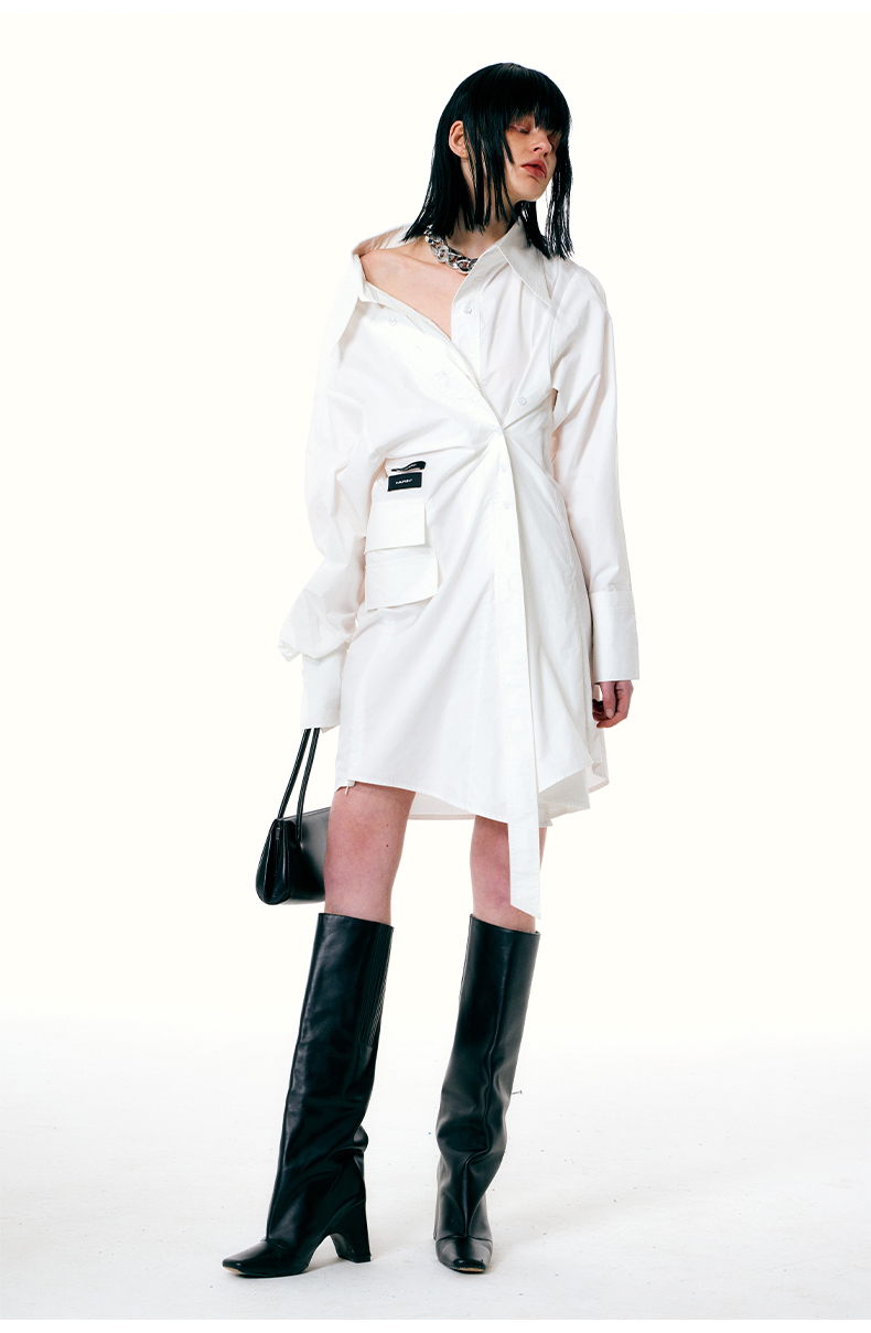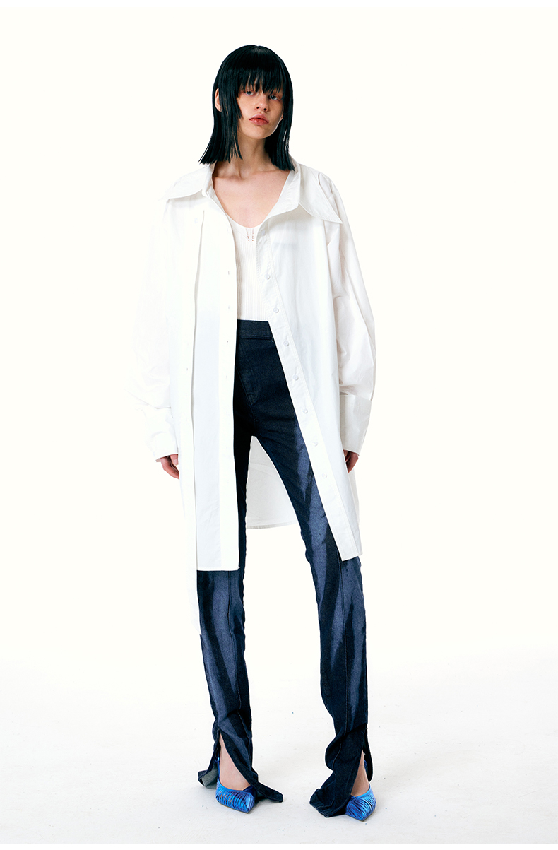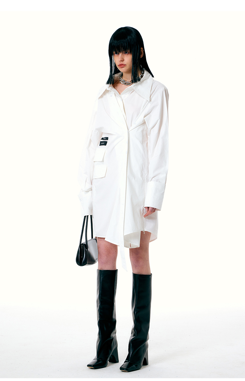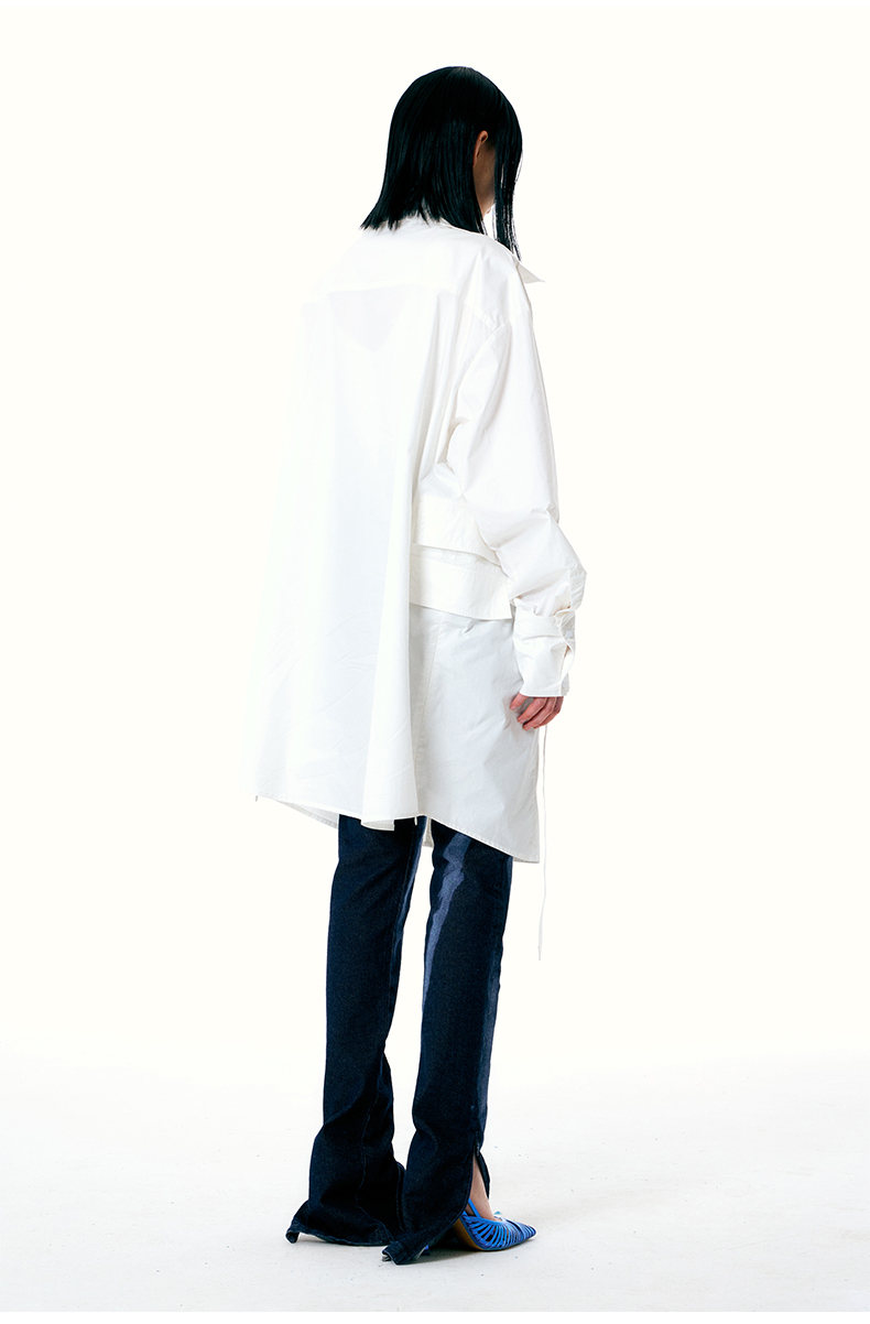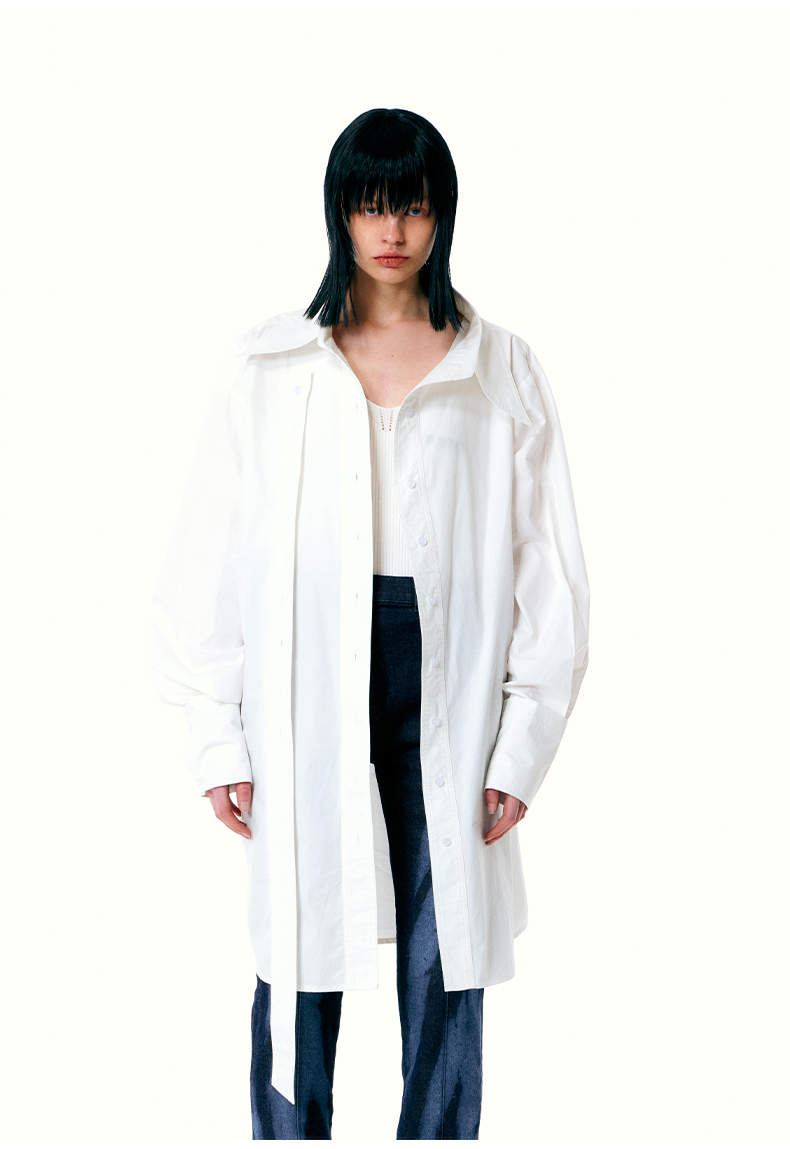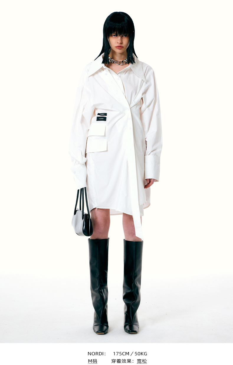 NUTH白色中长款多穿法衬衫春季新款青春时尚休闲衬衣