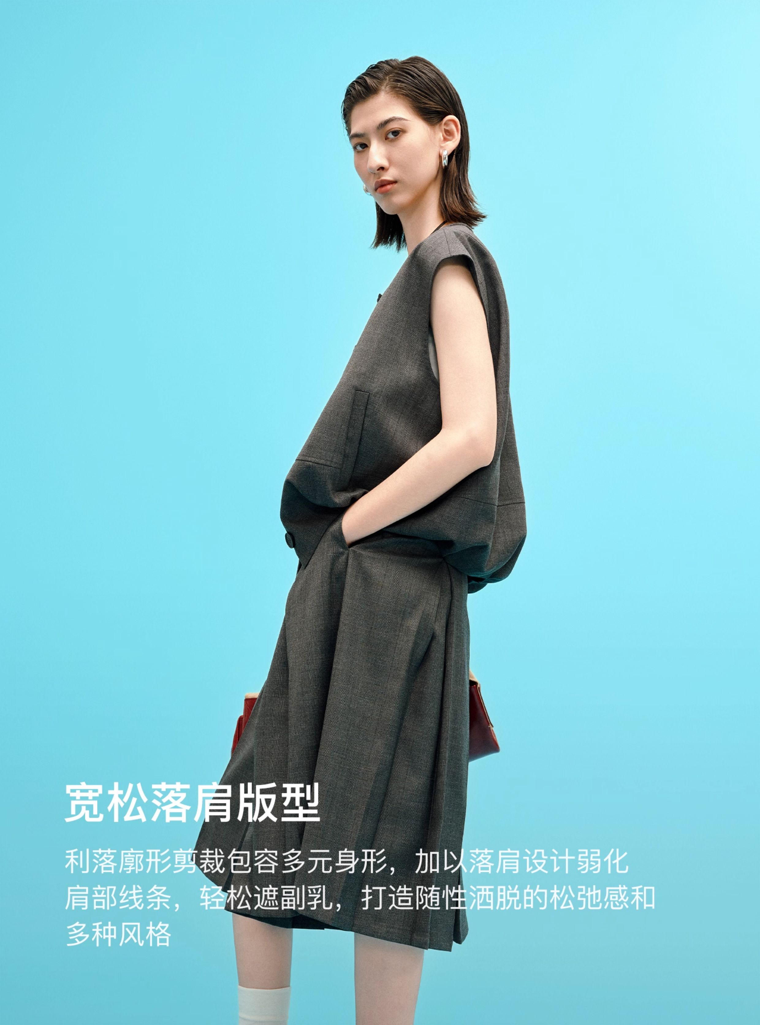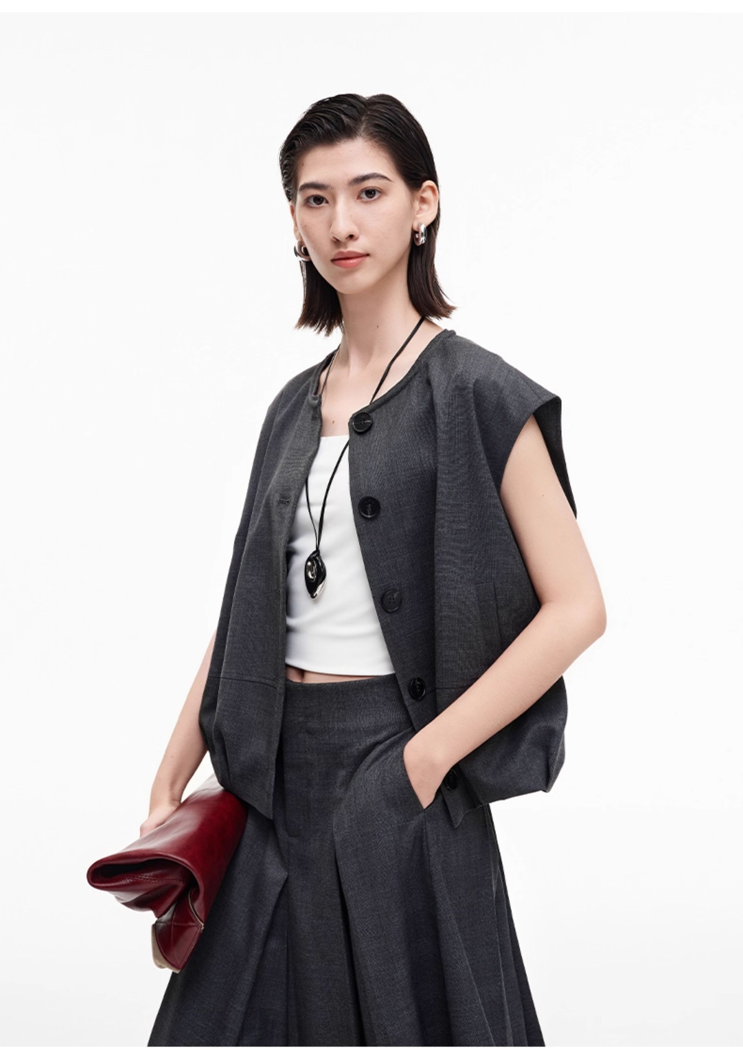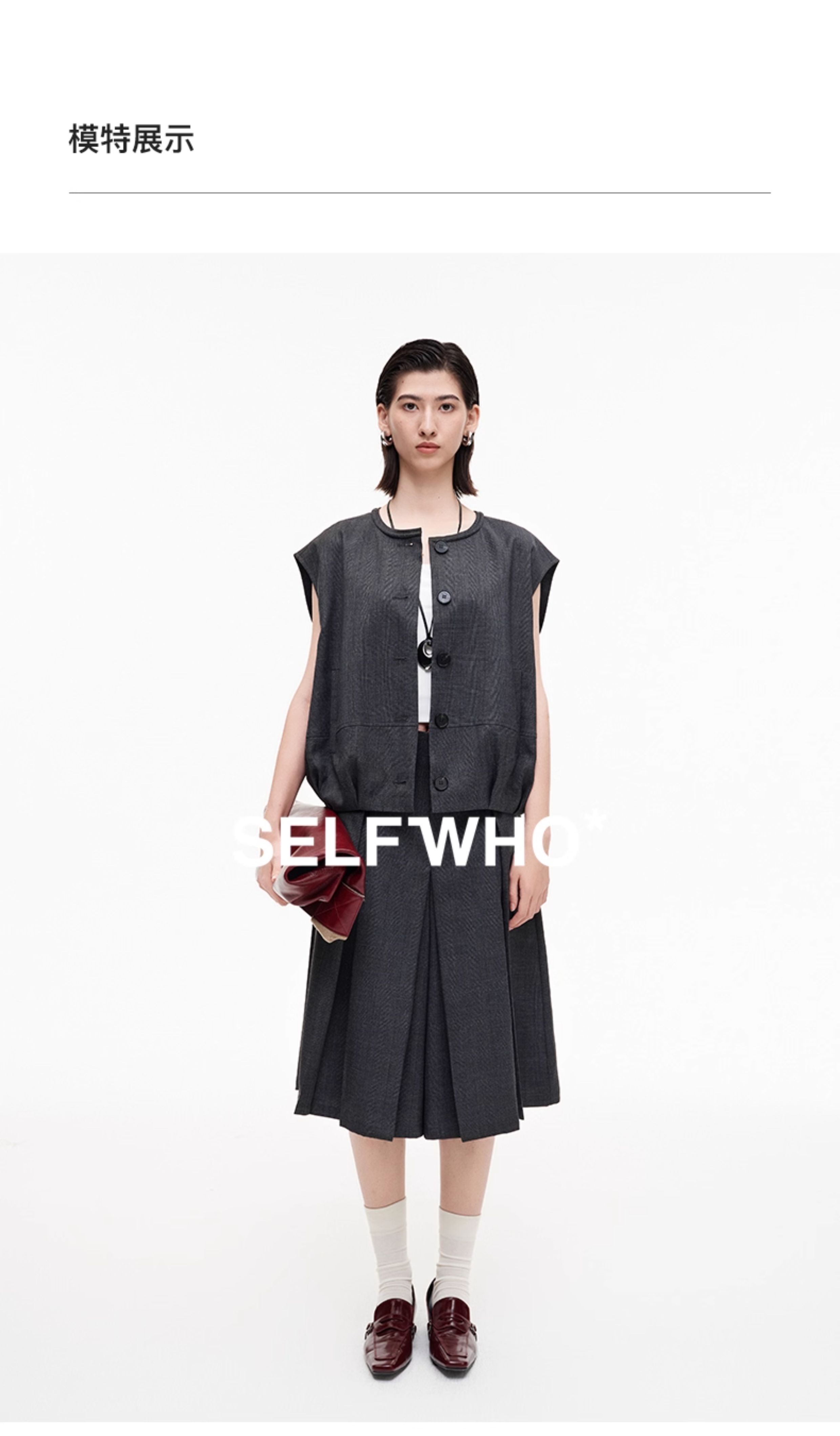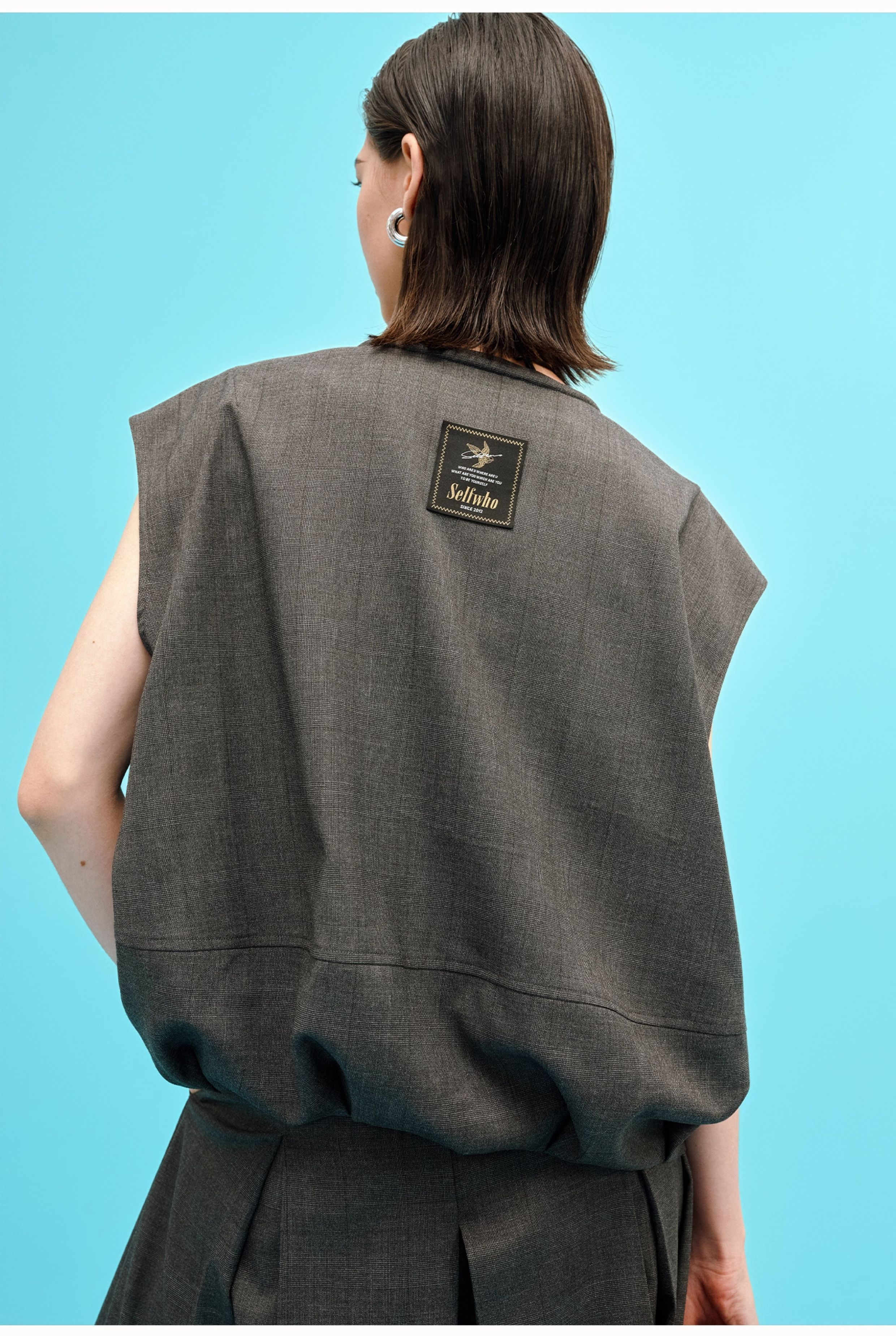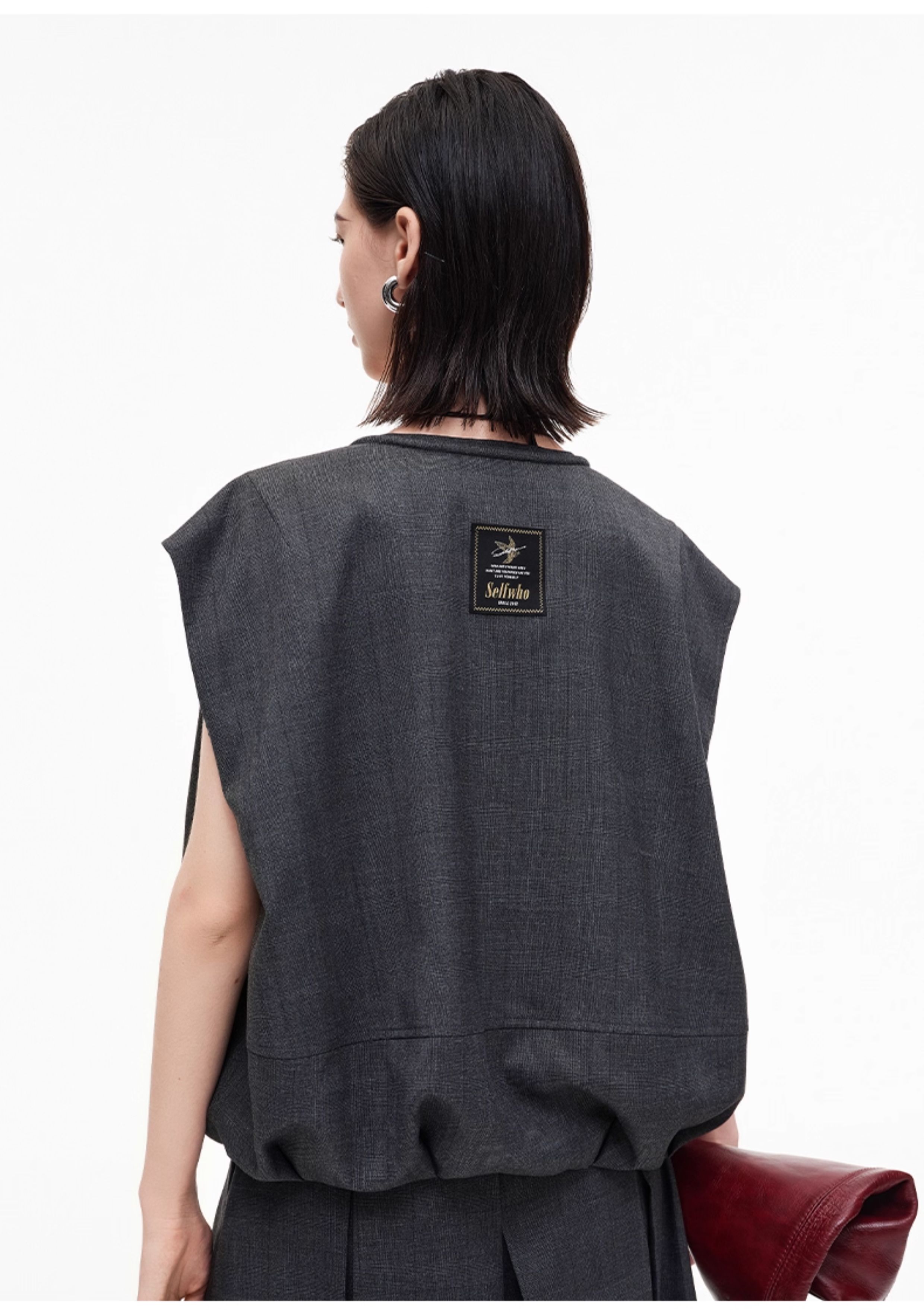 SELFWHO高智感夹克马甲女2026春季新款宽松落肩倒褶设计无袖马夹
