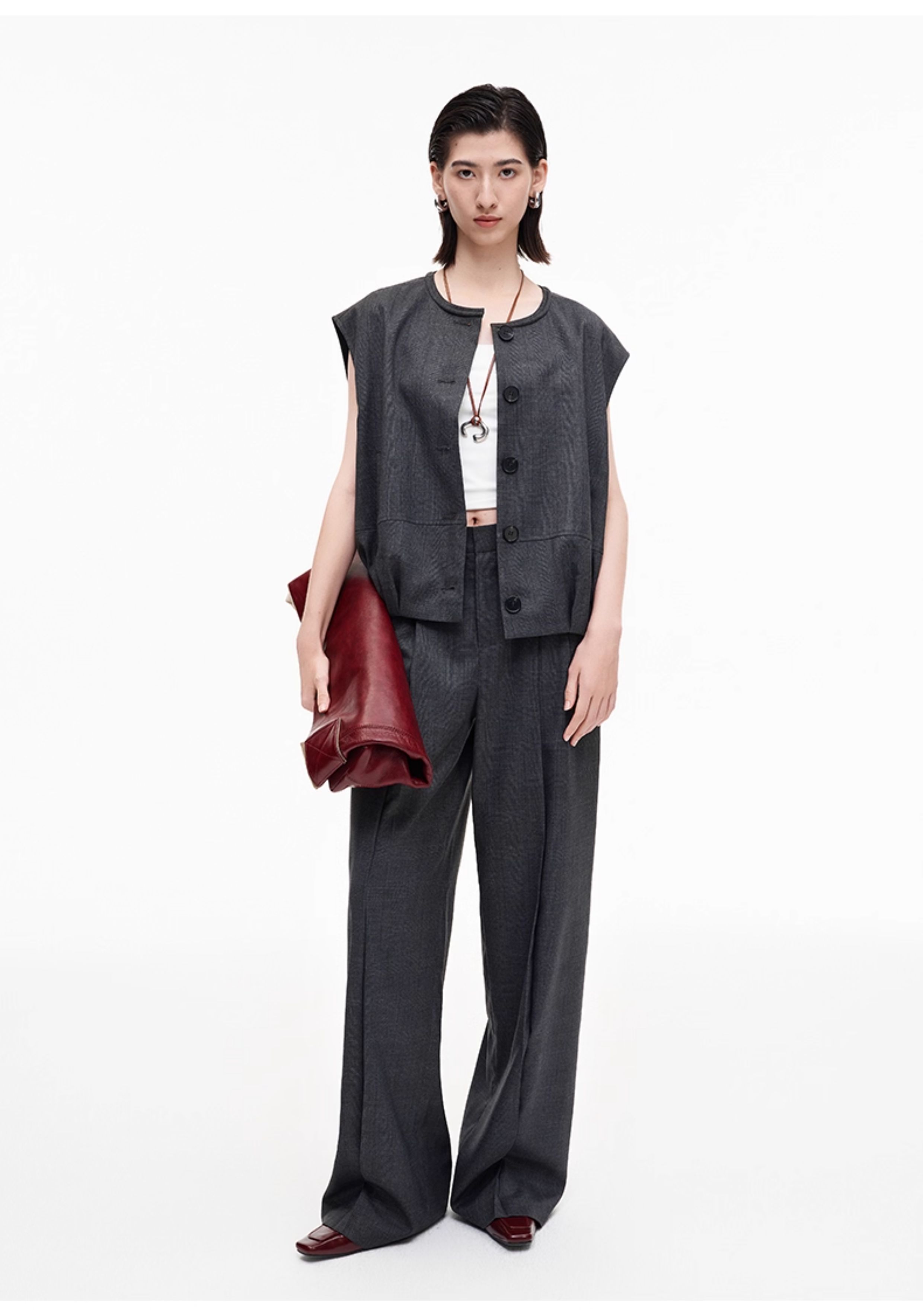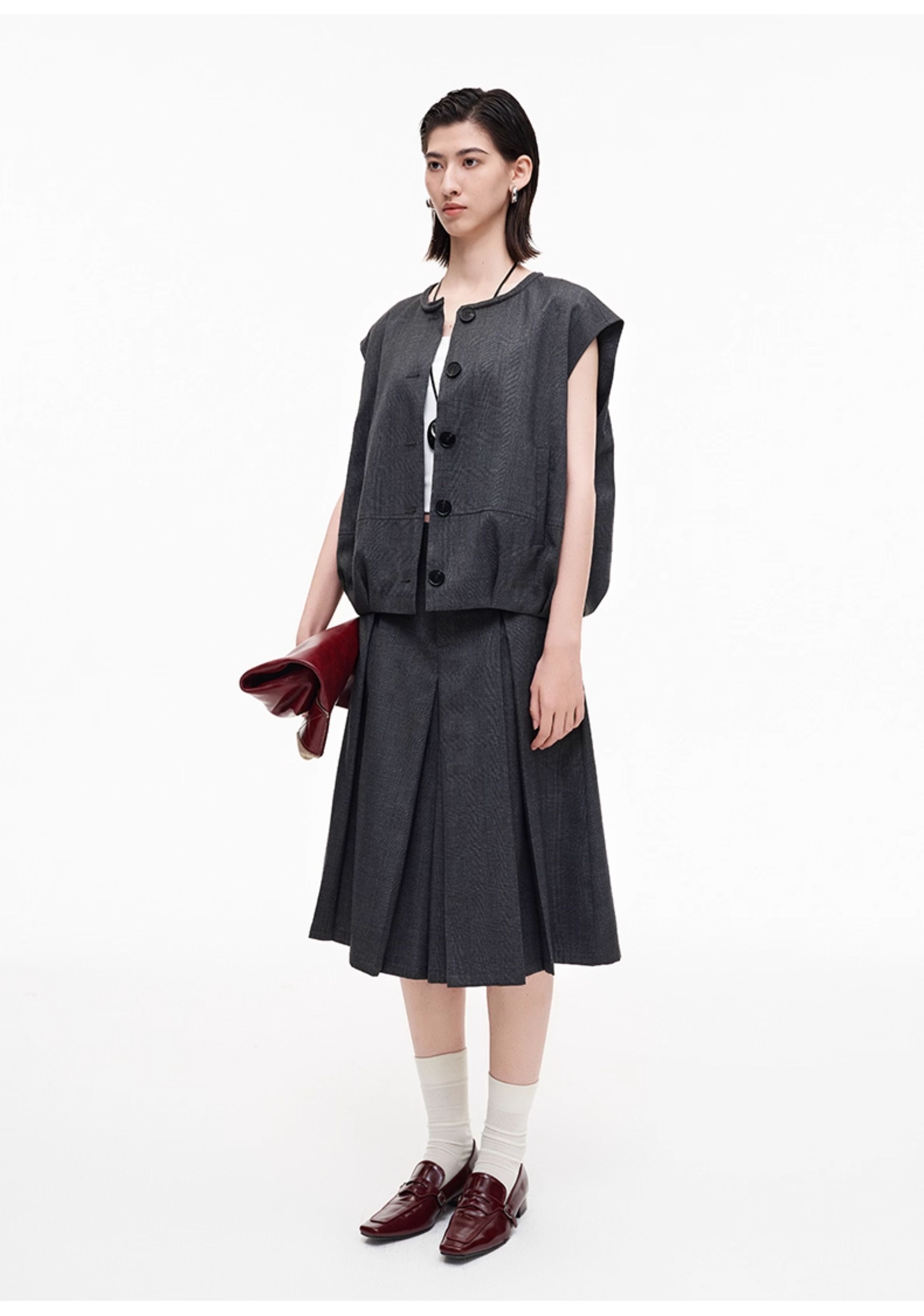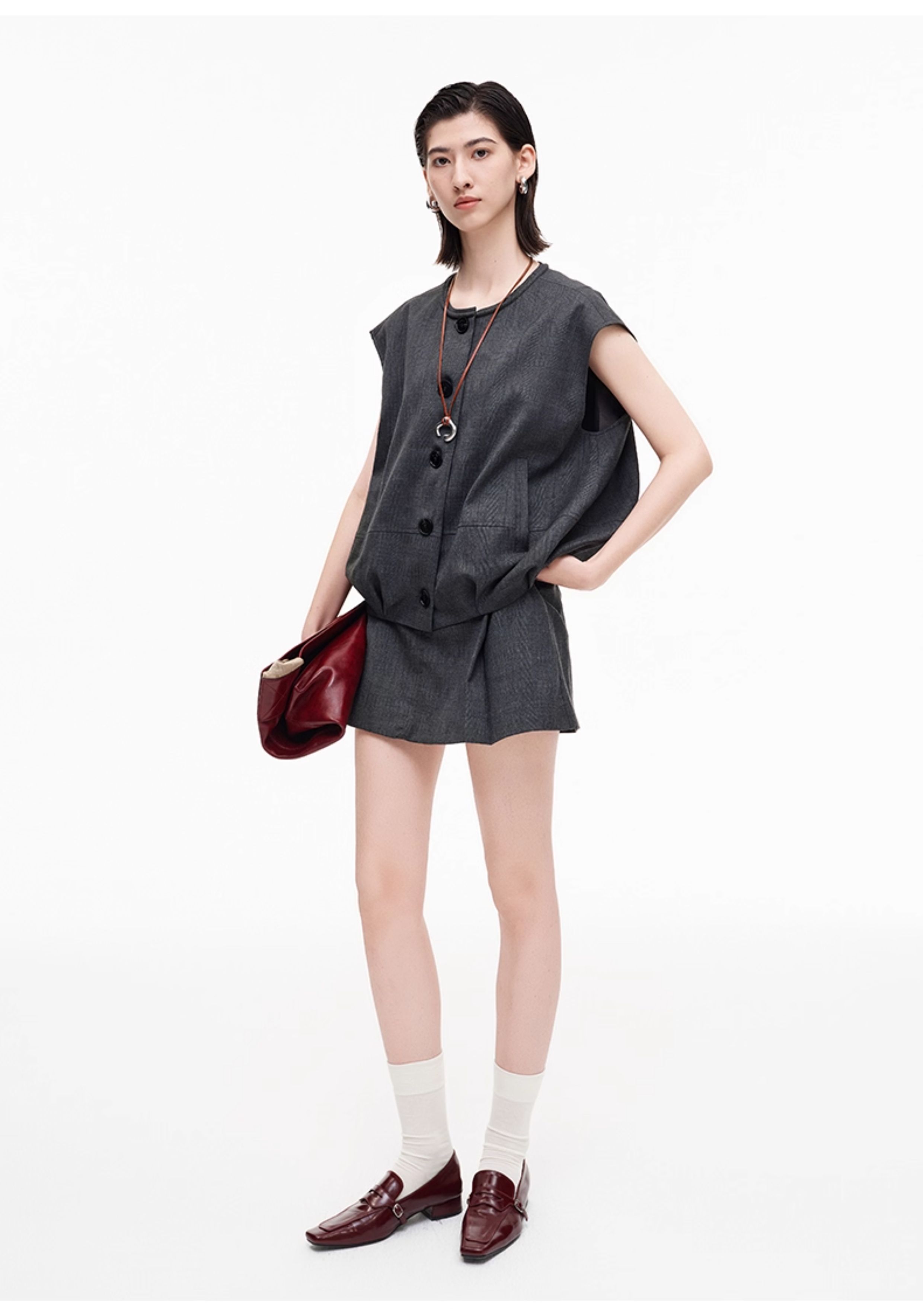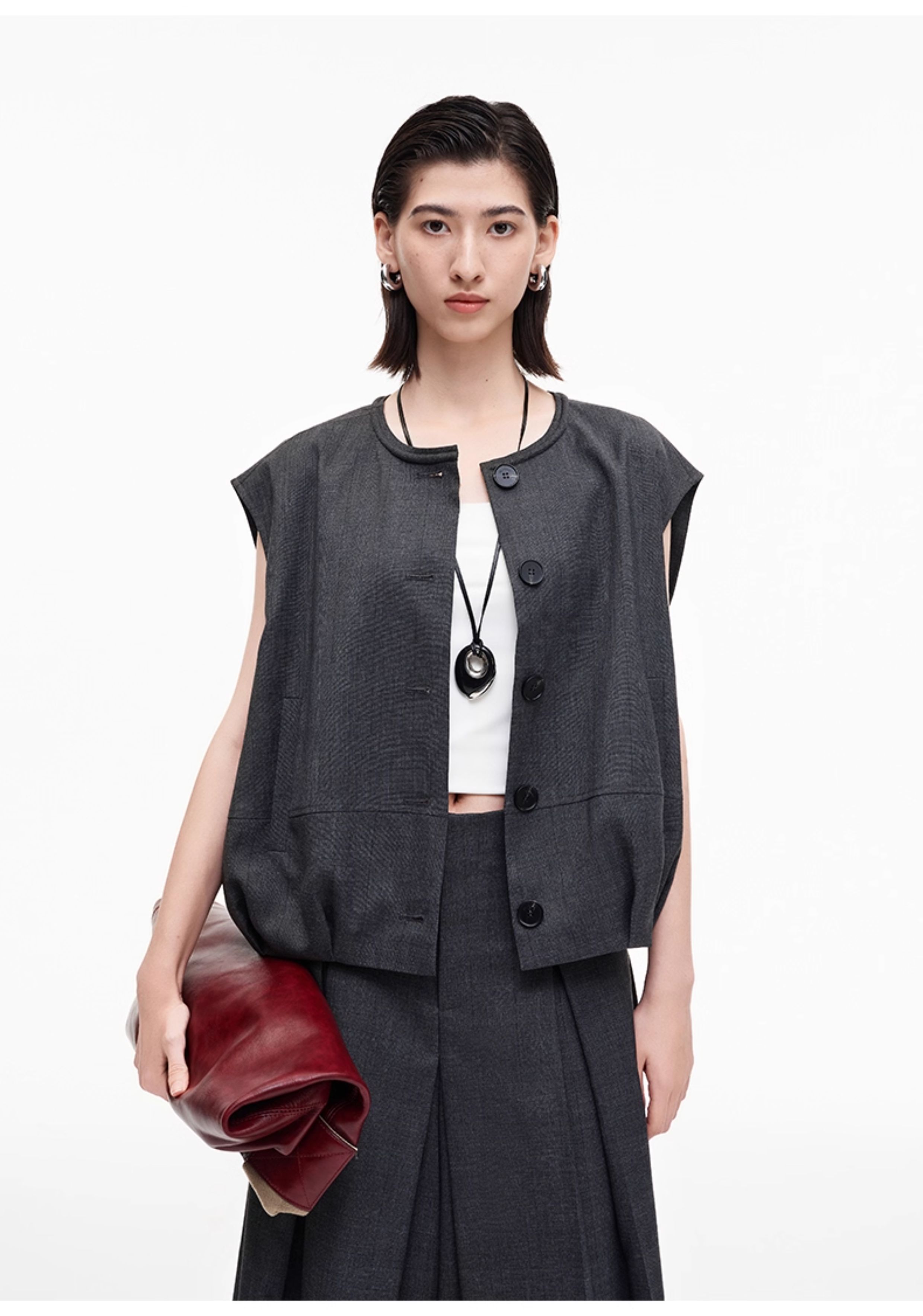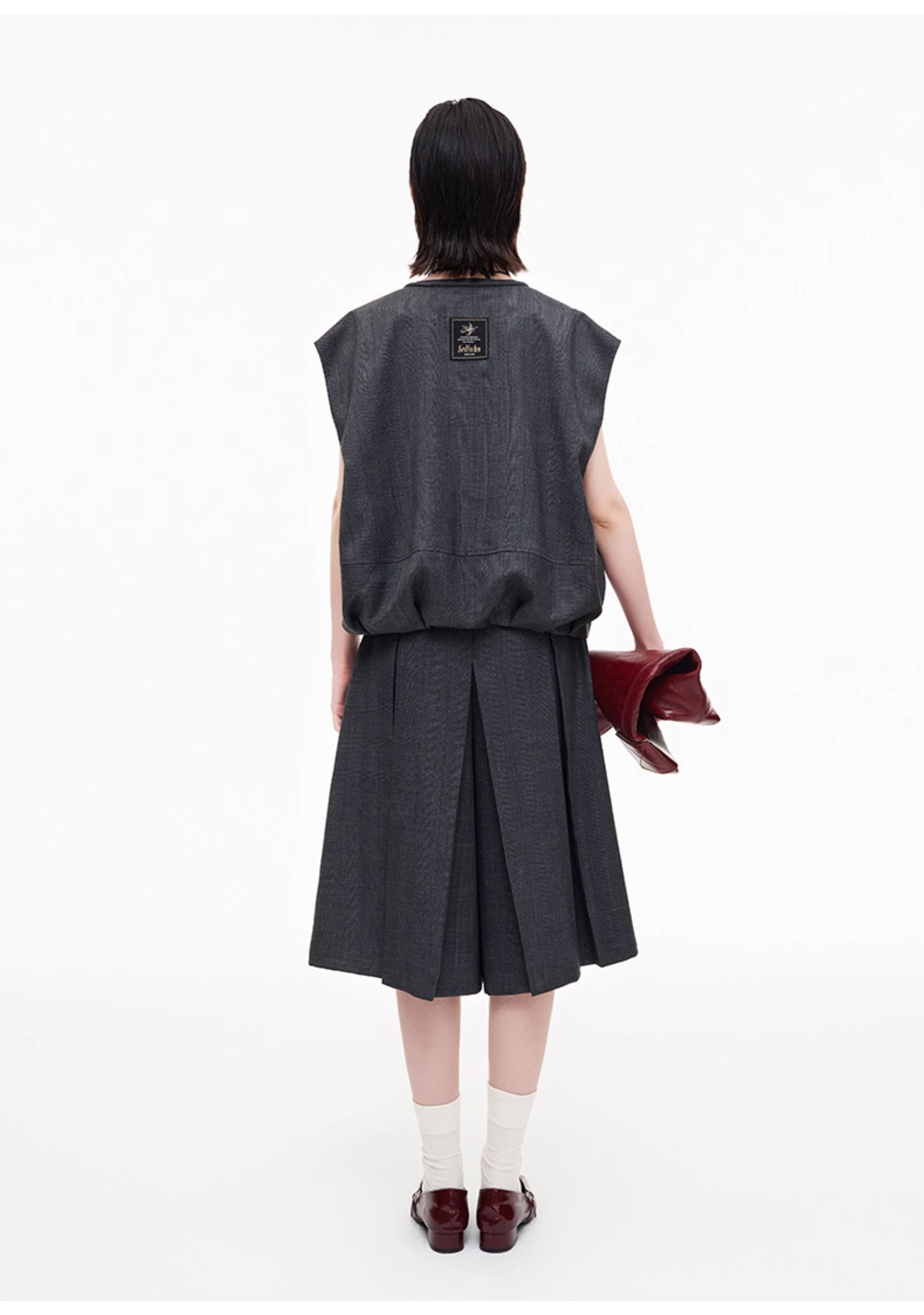 SELFWHO高智感夹克马甲女2026春季新款宽松落肩倒褶设计无袖马夹