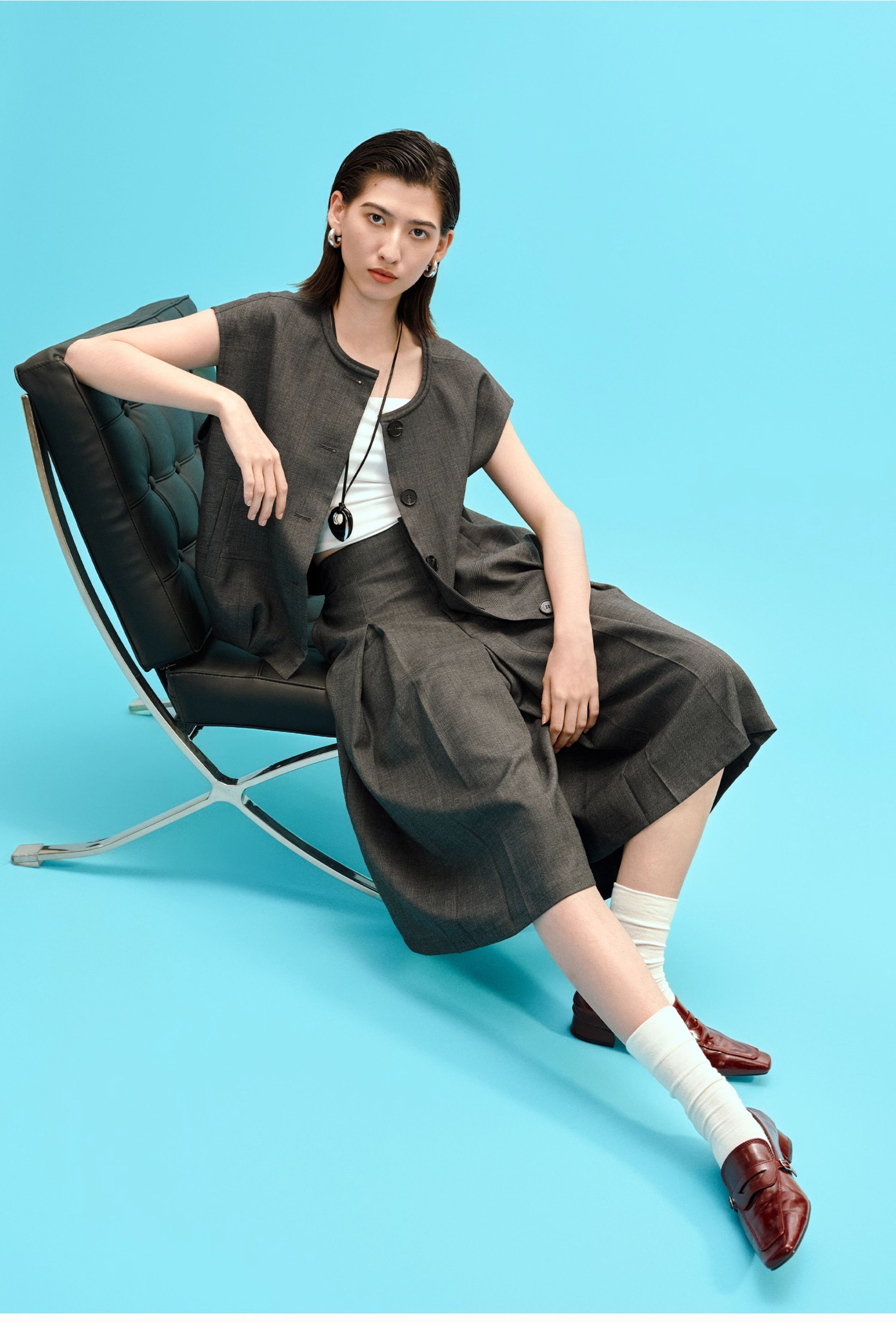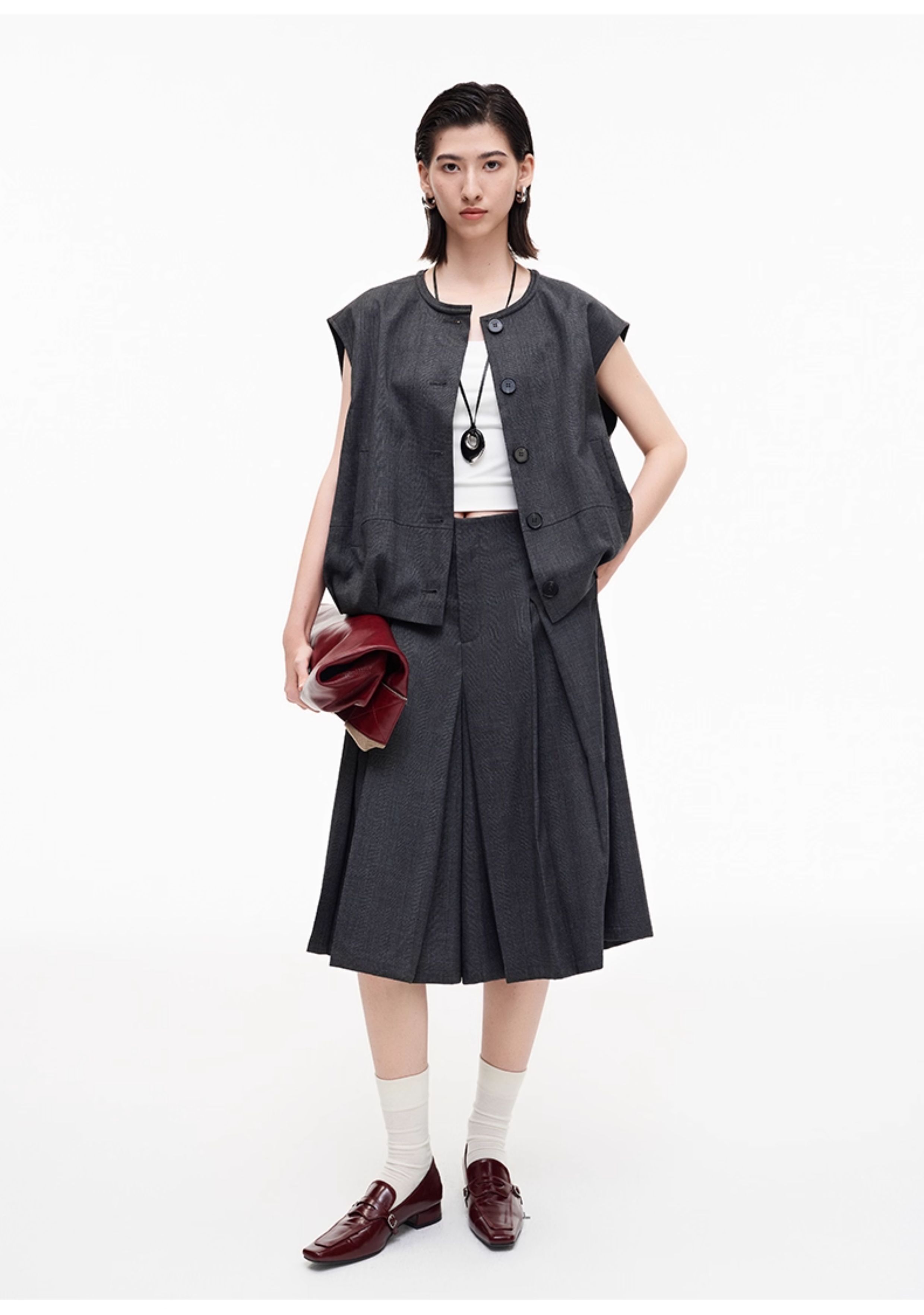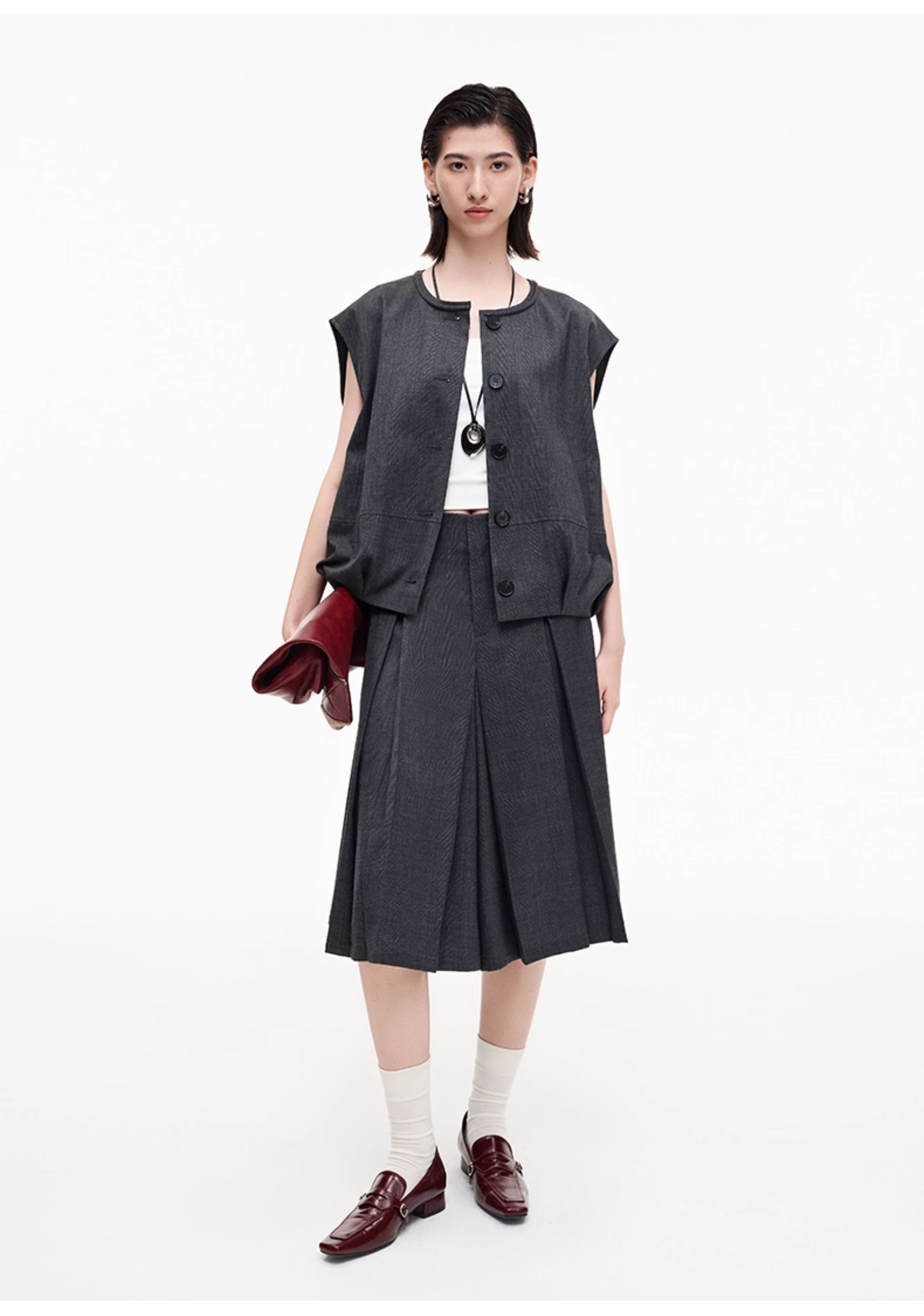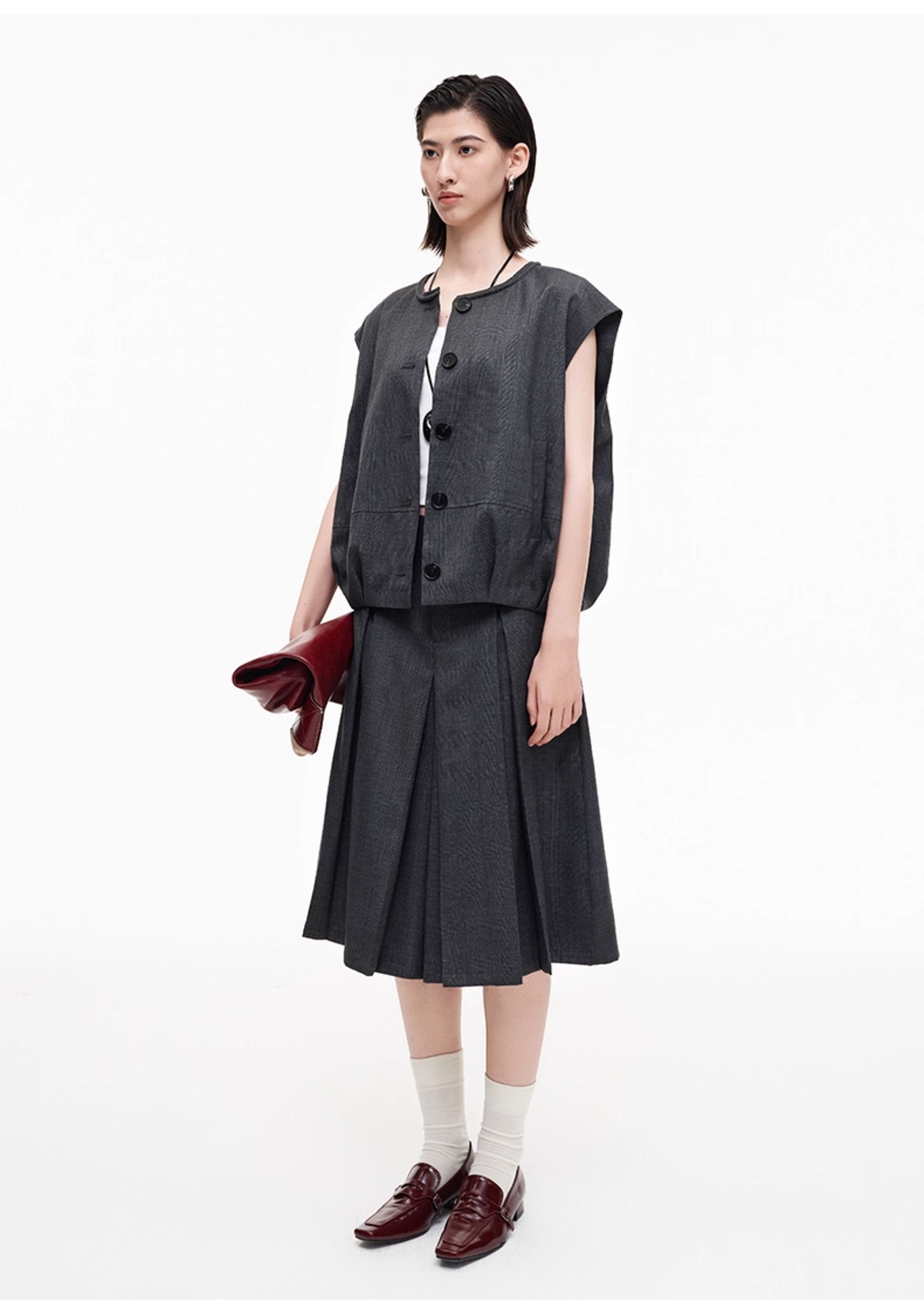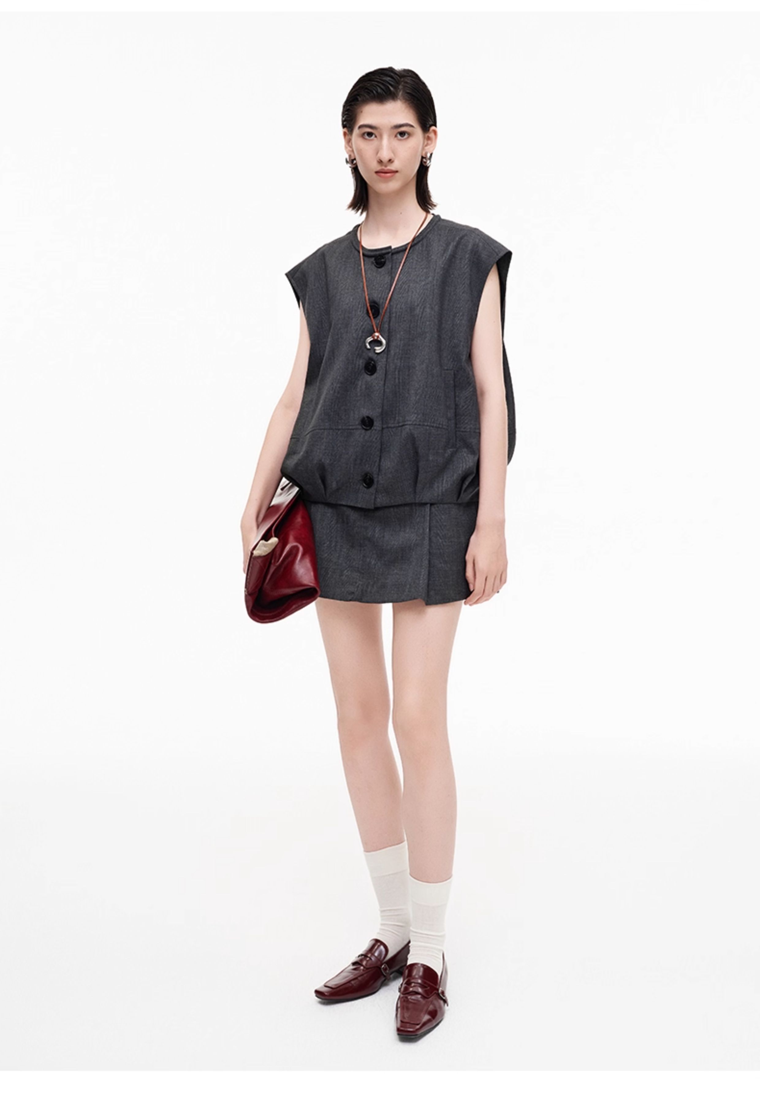 SELFWHO高智感夹克马甲女2026春季新款宽松落肩倒褶设计无袖马夹