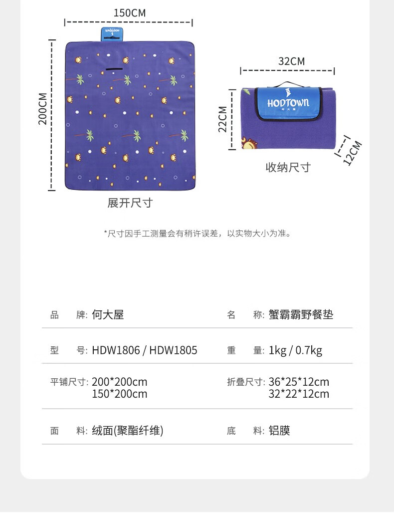 何大屋(Hodtown)野餐垫 蟹霸霸野餐垫HDW1805