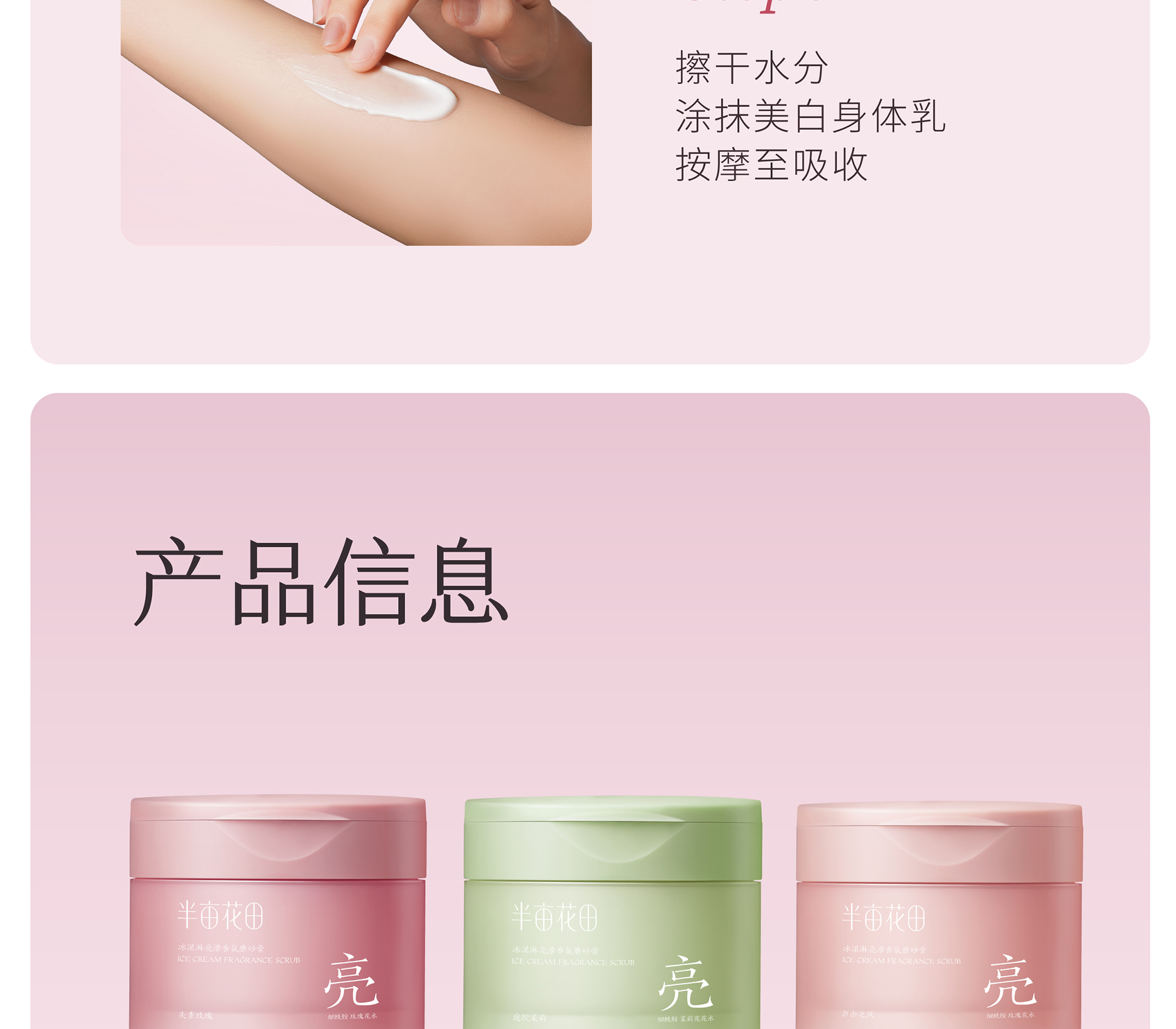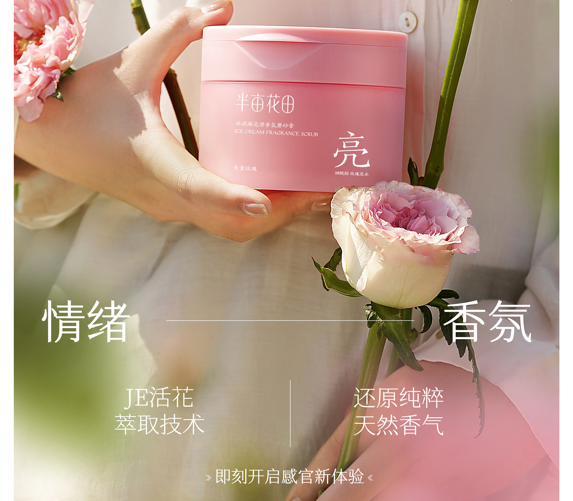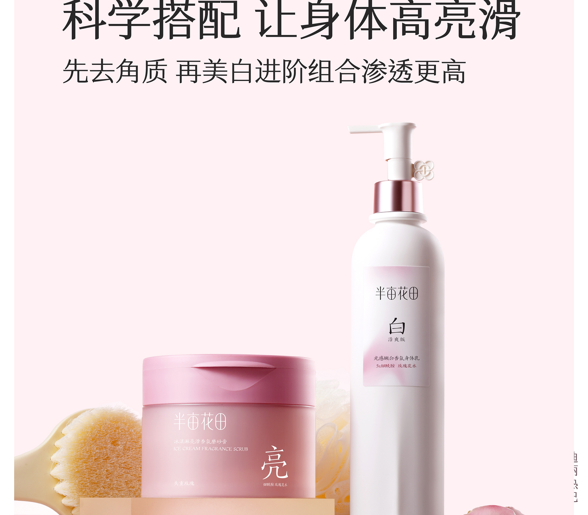 【半亩花田升级款冰淇淋身体磨砂膏】沐浴去角质 高纯度烟酰胺 提亮肤色 改善暗沉 2瓶磨砂膏+ 4个体验装+ 1个沐浴刷
