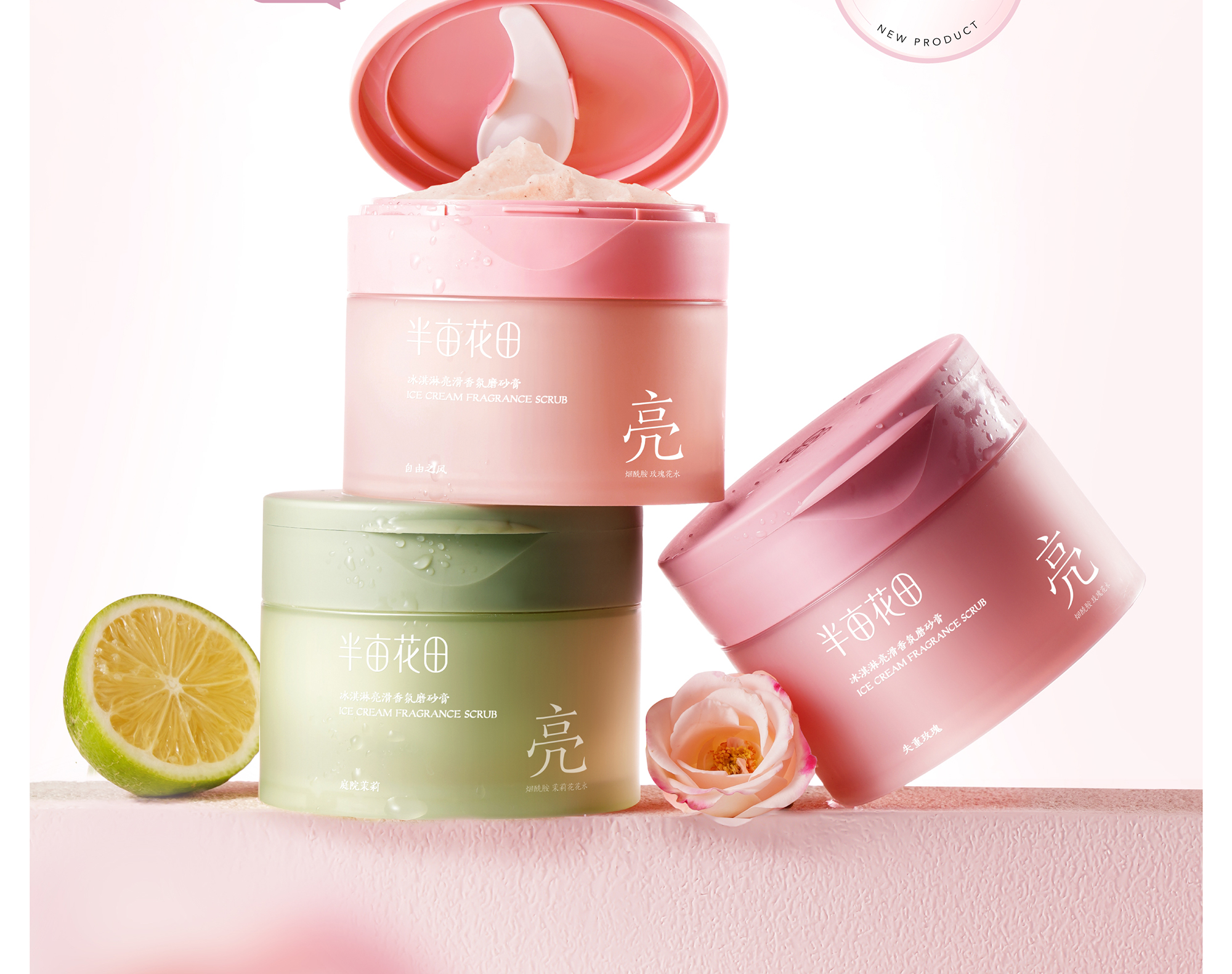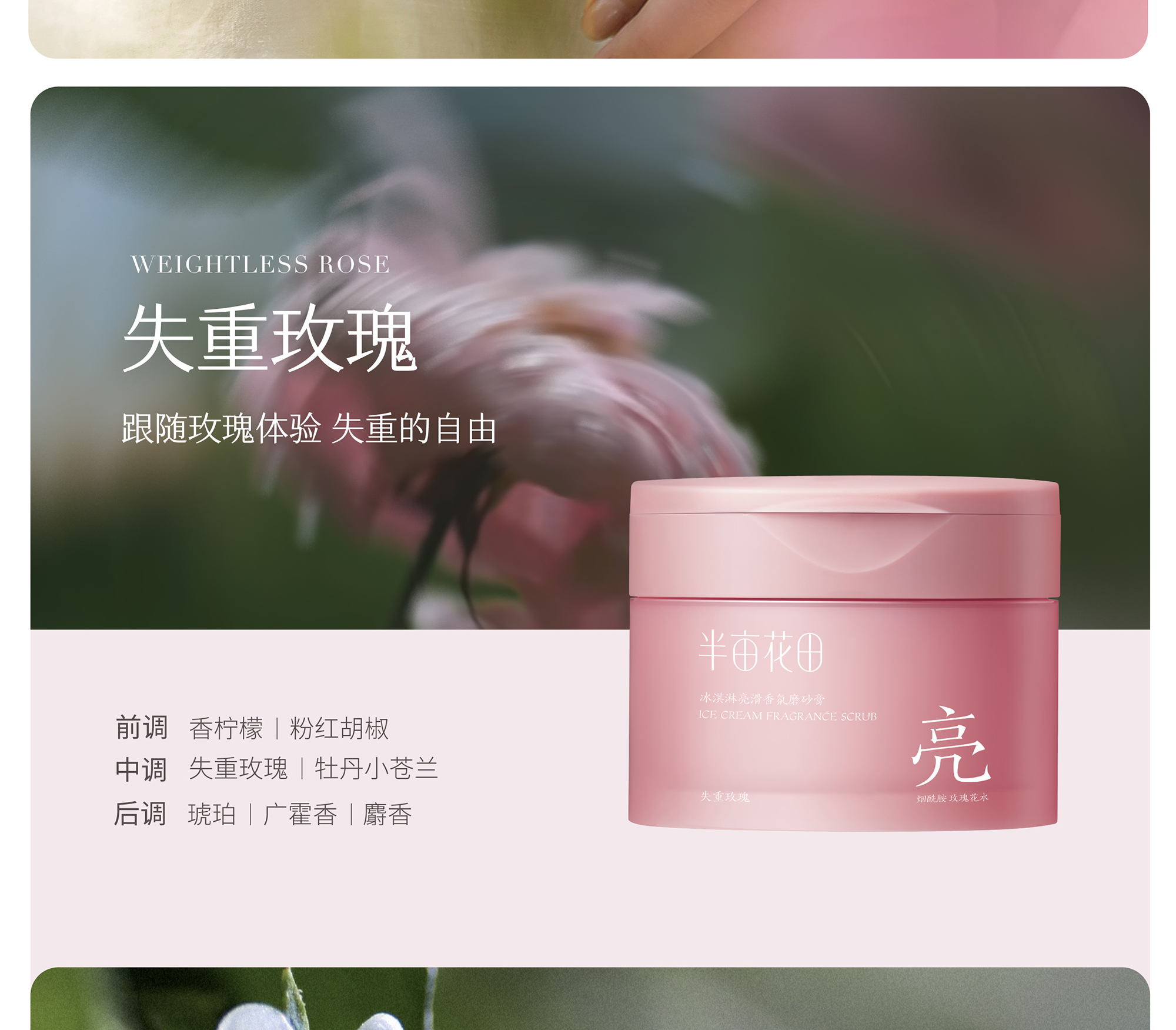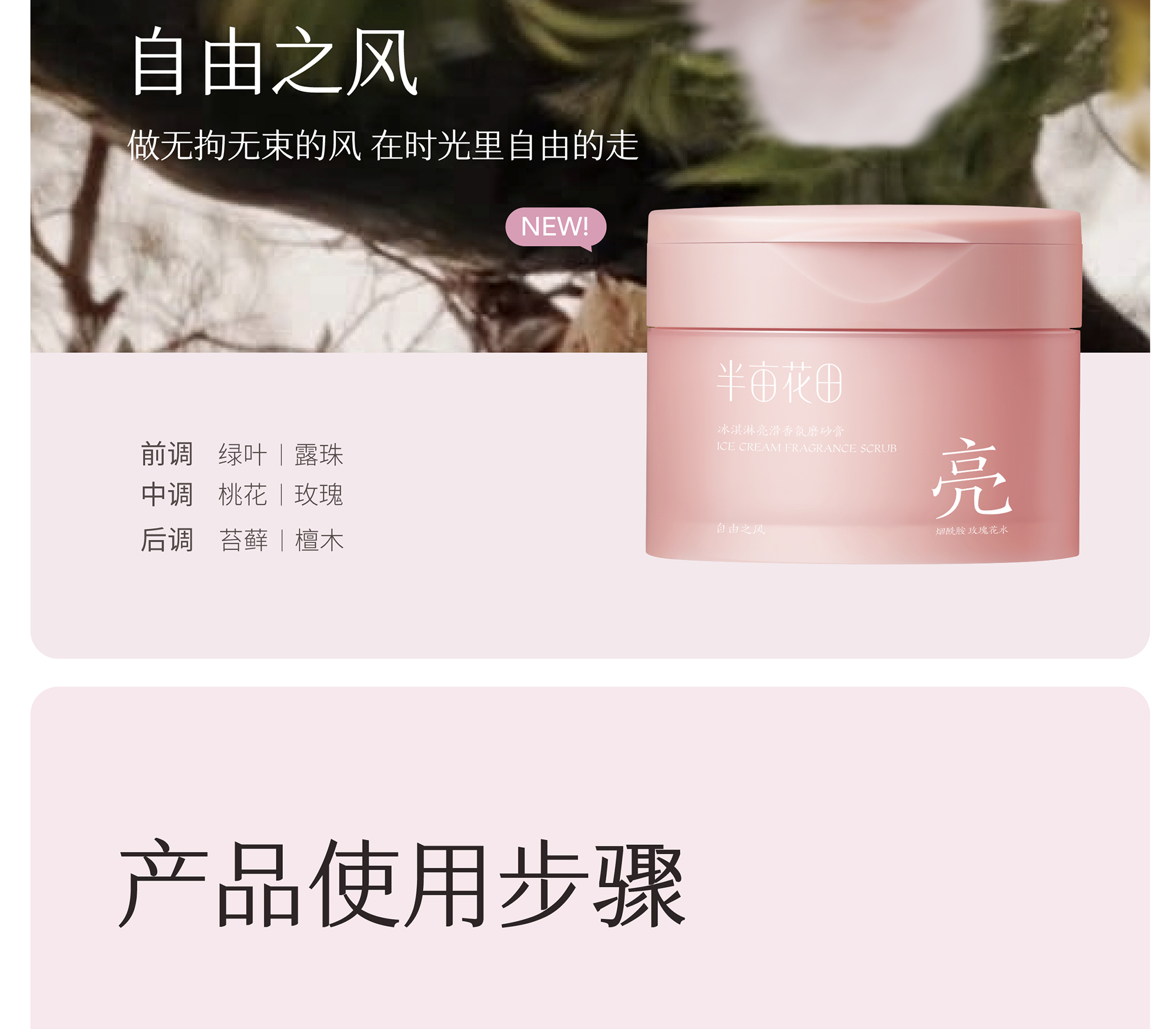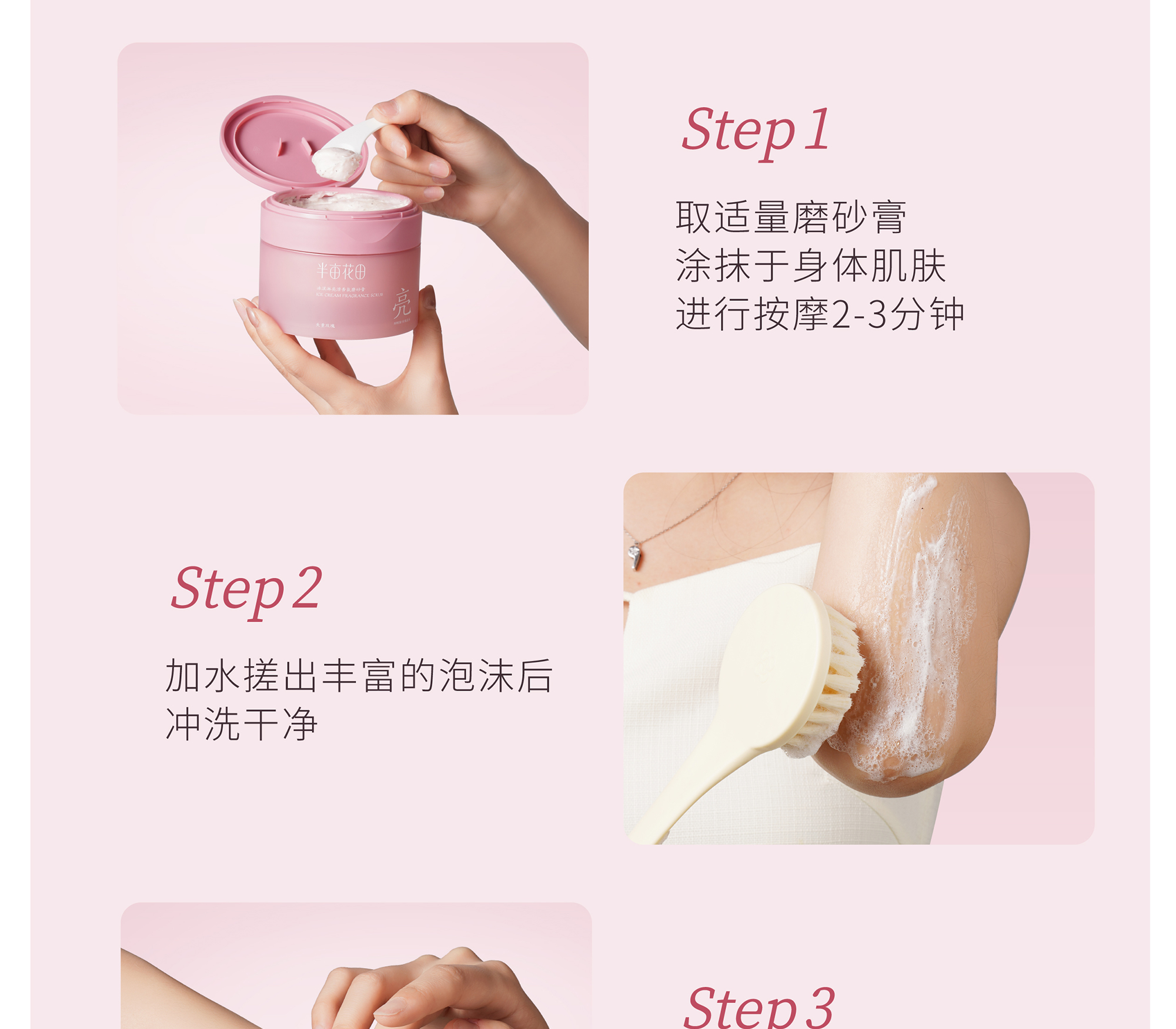 【半亩花田升级款冰淇淋身体磨砂膏】沐浴去角质 高纯度烟酰胺 提亮肤色 改善暗沉 2瓶磨砂膏+ 4个体验装+ 1个沐浴刷