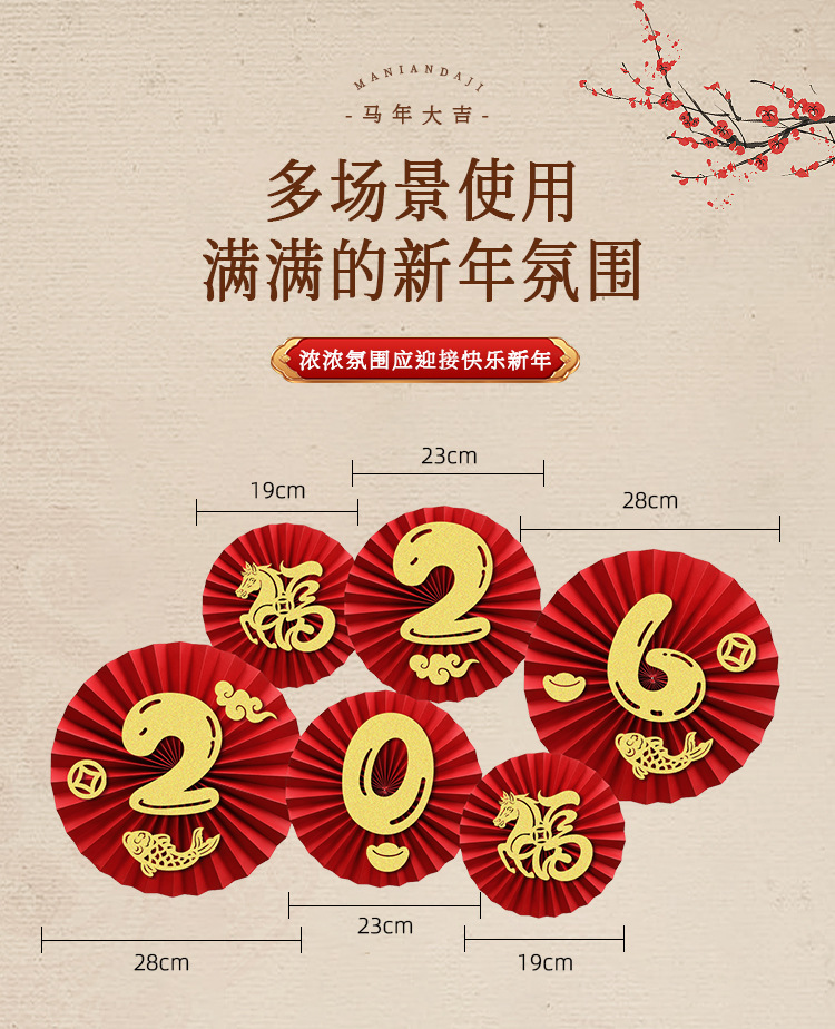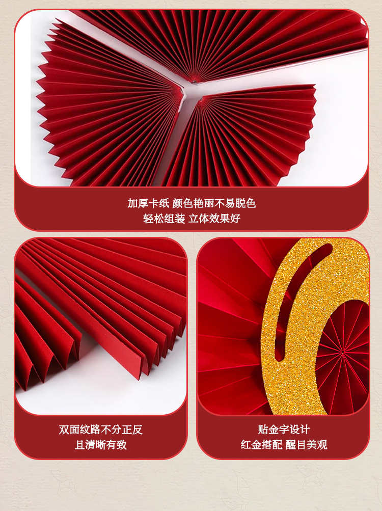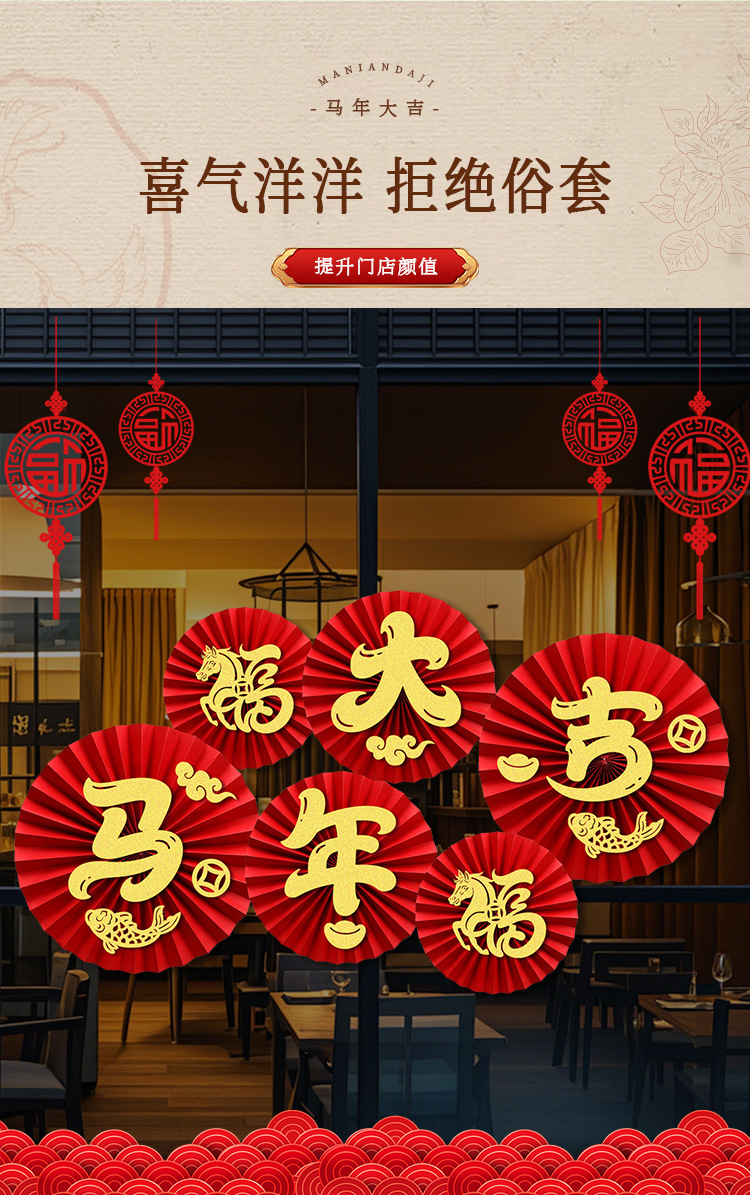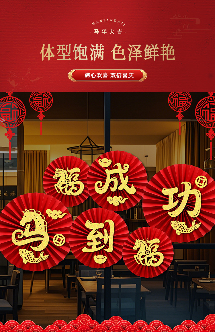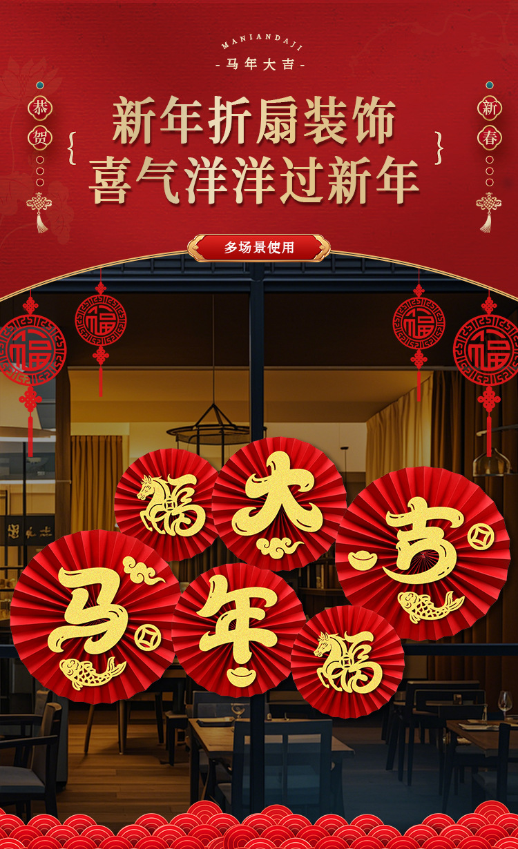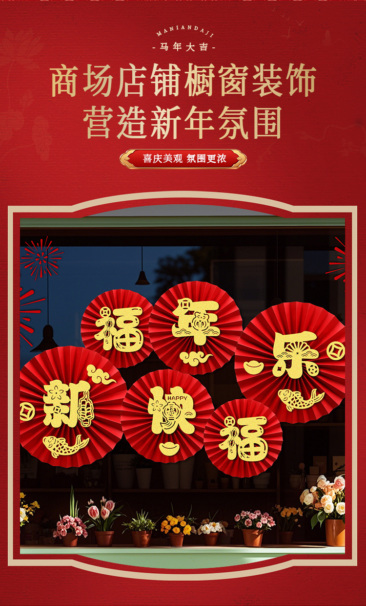 【春节纸扇花元旦新年窗花】马年新款教室装饰氛围 商场橱窗布置