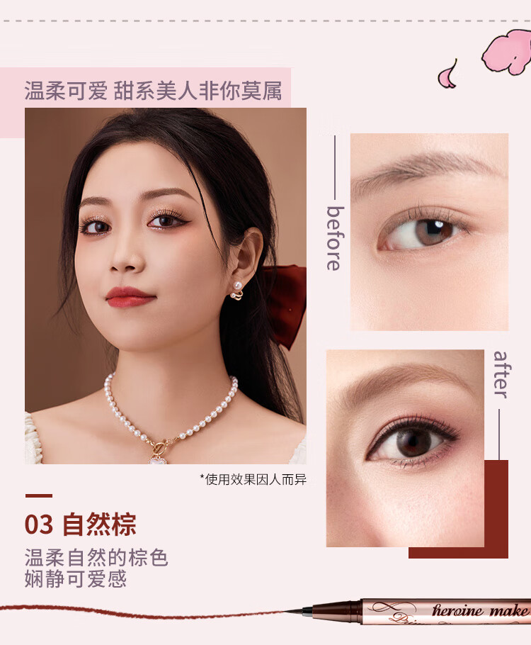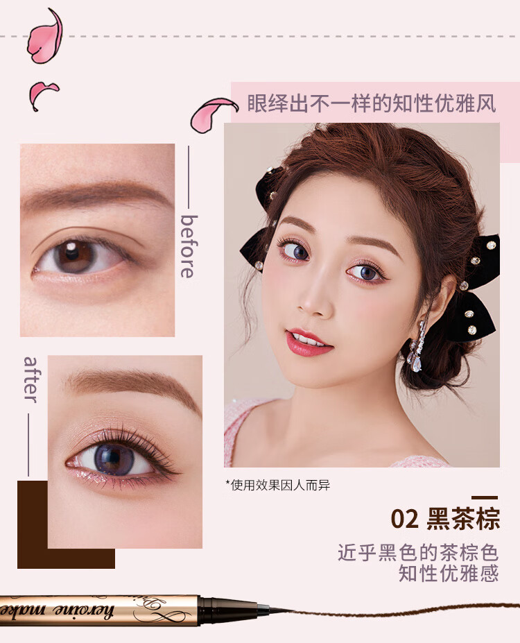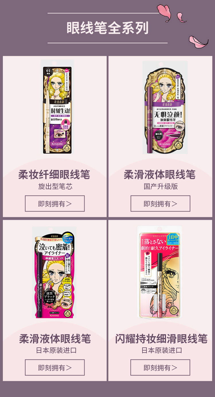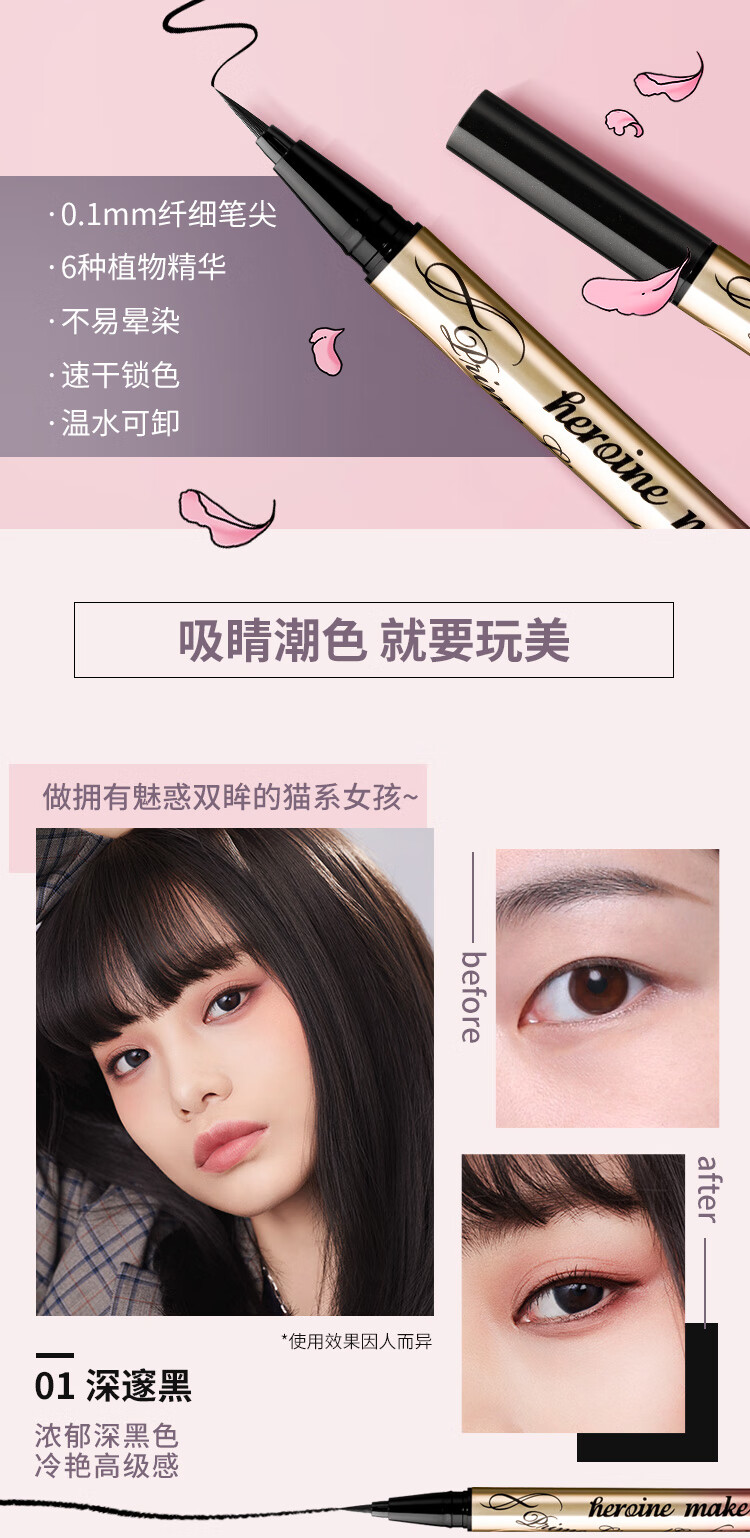 奇士美(kiss me)花盈美蔻闪耀持妆细滑眼线液笔0.4ml#01 深邃黑/02黑茶棕/03 自然棕