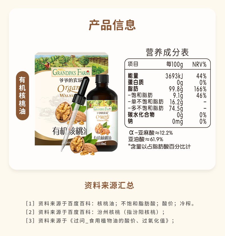 爷爷的农场有机核桃油110ml