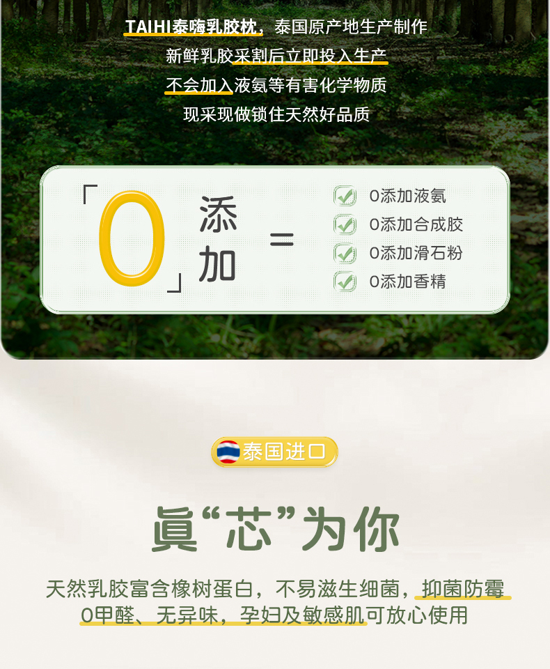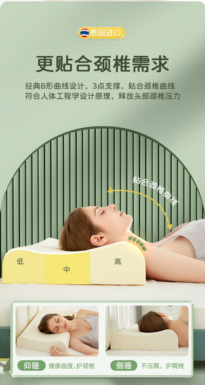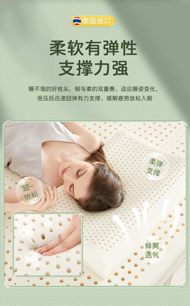 TAIHI泰嗨 泰国进口93%天然乳胶透气高低平面枕头
