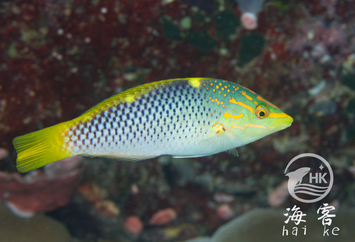 也叫云斑海猪鱼、花面龙、四齿仔、鹦仔、雷仔、鹦哥。成鱼,幼鱼是白色带有黑色条纹、斑点。成鱼后,颜色银色带有黑色棋盘状纹路。背鳍和尾巴是黄色,面部绿色带有粉红色条纹。