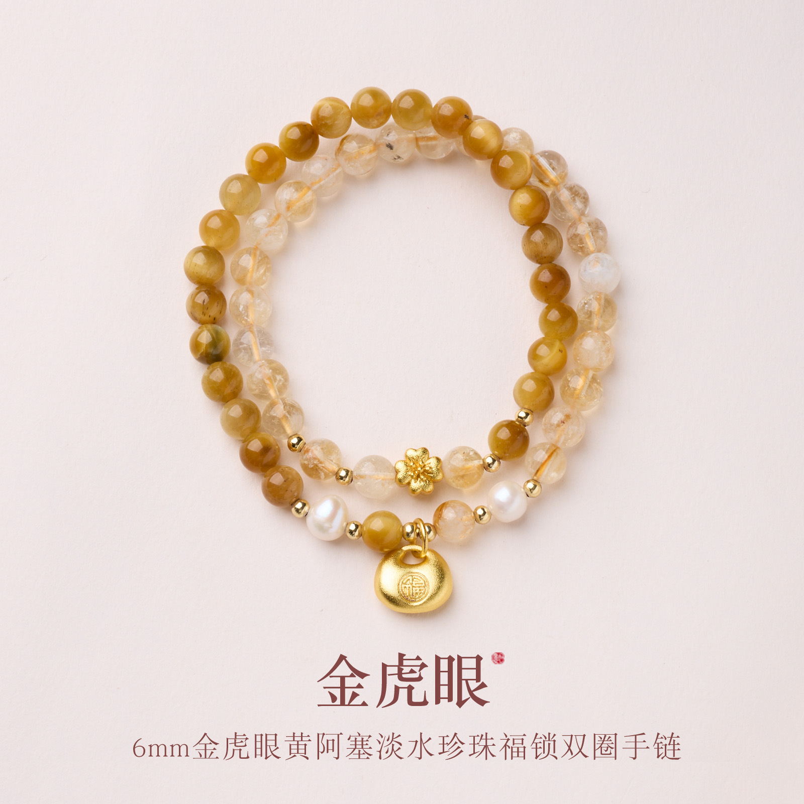 【品名】金禧·金虎眼黄阿塞福袋双圈手串