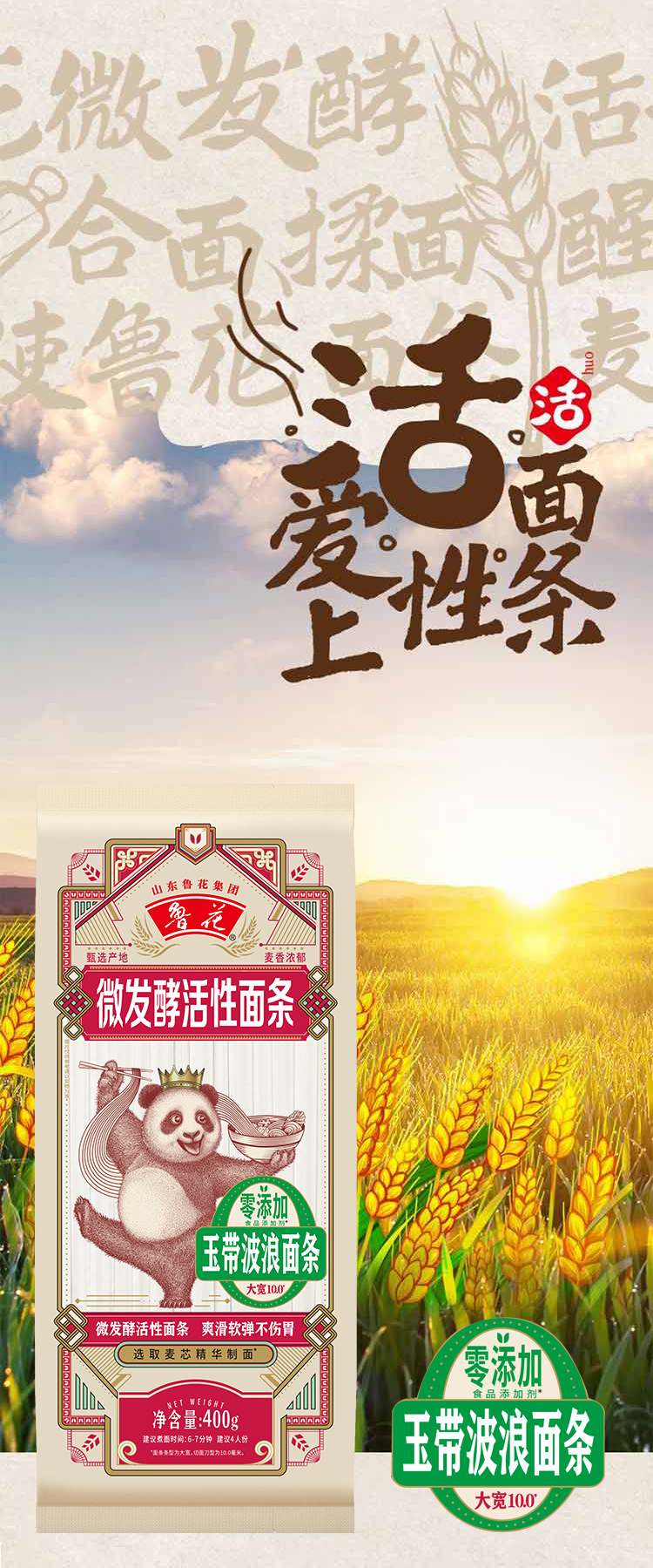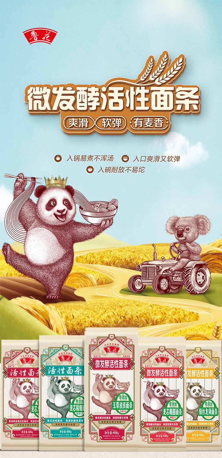 鲁花熊猫玉带波浪面条*2*400G