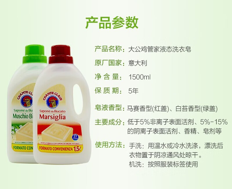 CHANTECLAIR大公鸡管家意大利进口马赛洗衣液 1500ml/瓶