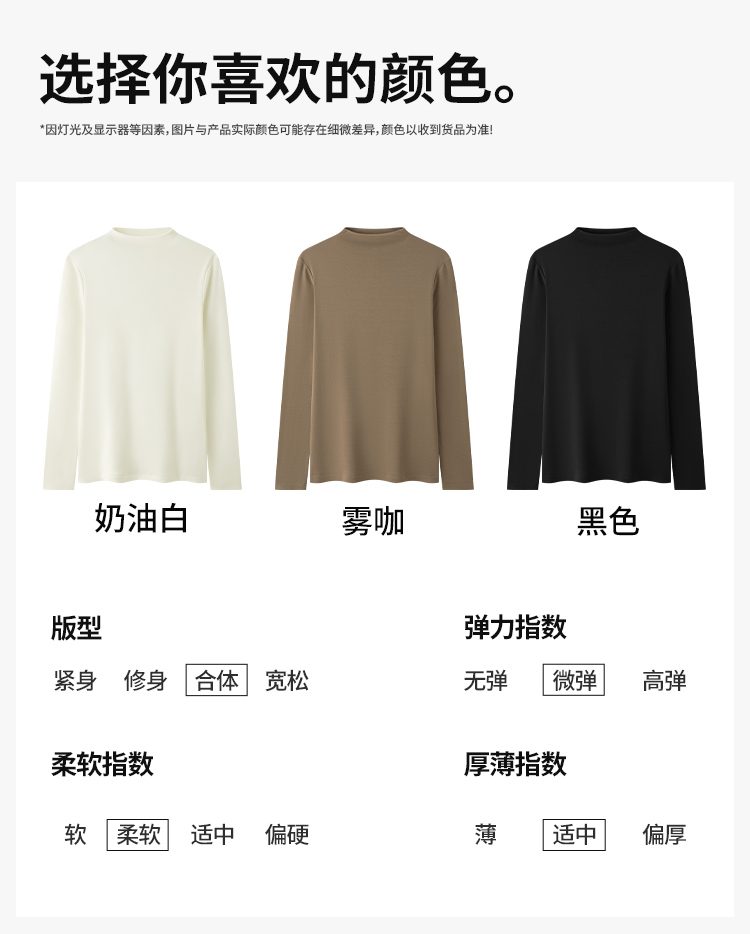 拇指白小T女士半堆领肌底衣
