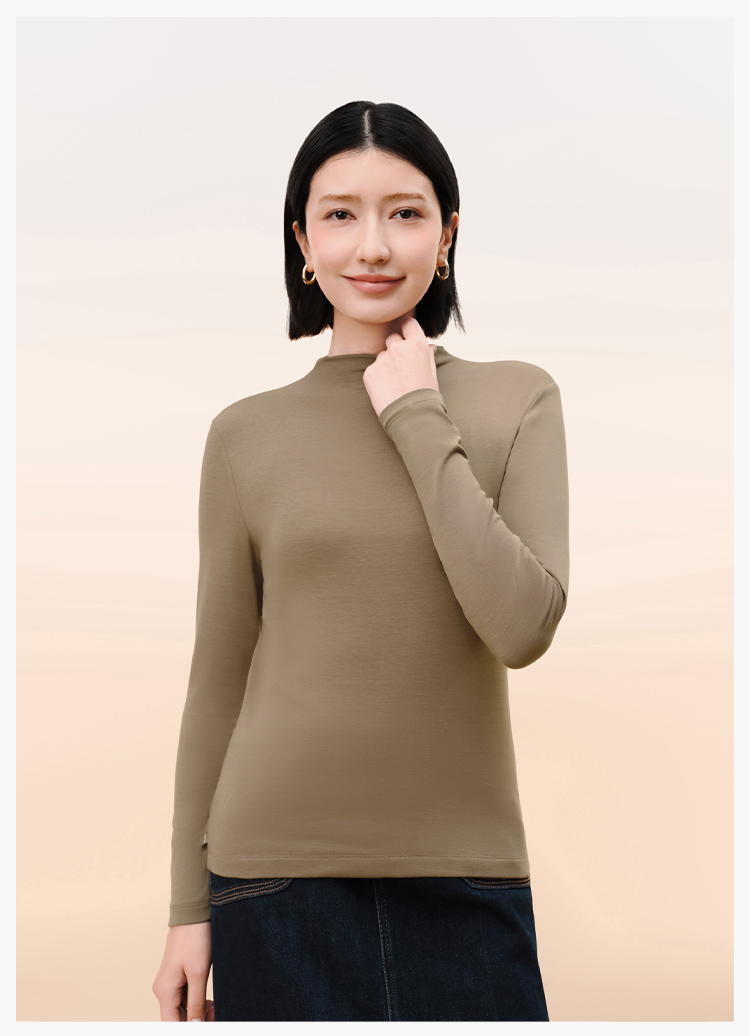 拇指白小T女士热力加绒长袖T恤