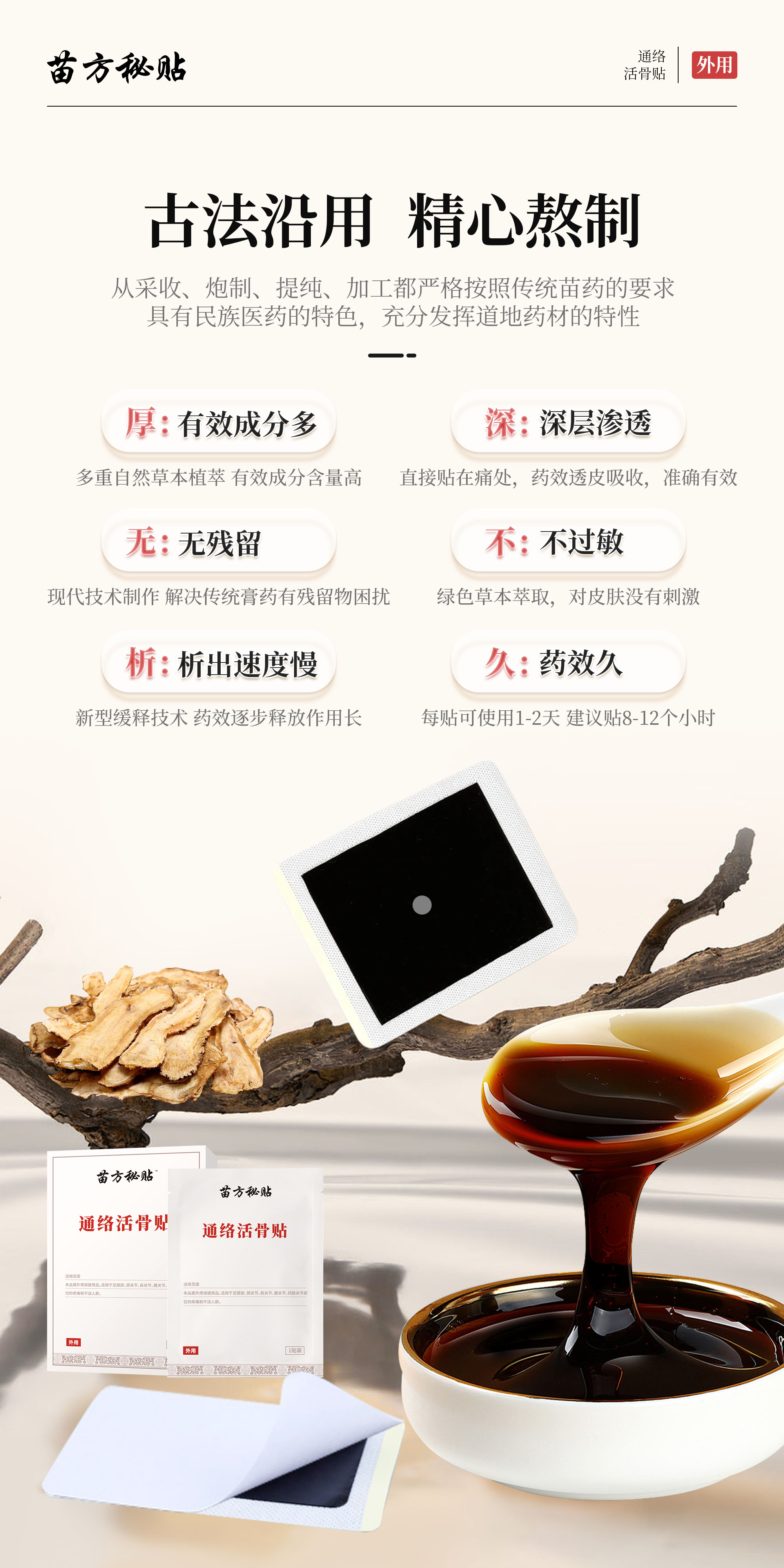 每一贴苗药成分高达𝟵𝟬%有效保留