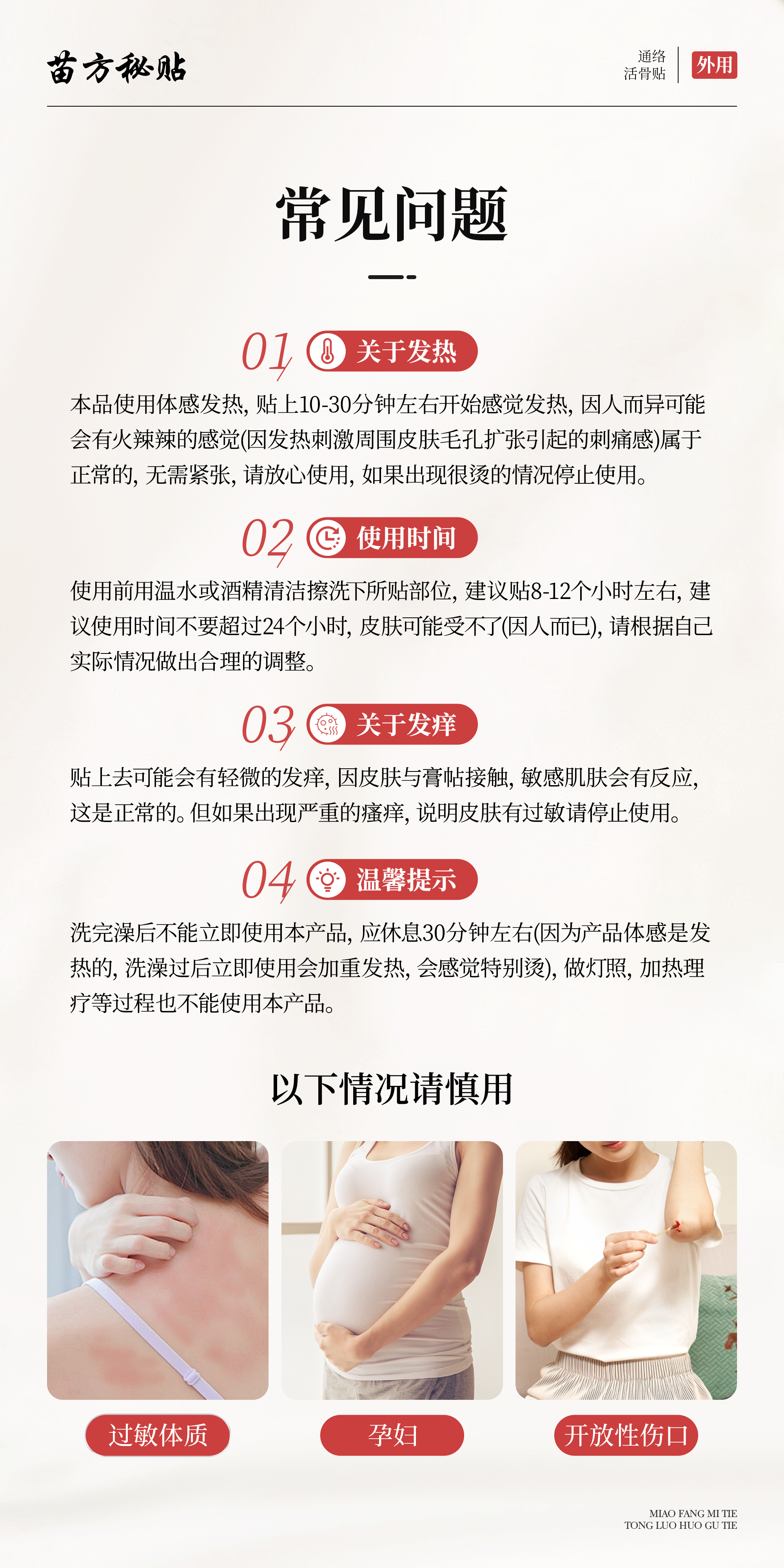 ▪在伤口、湿疹、粘膜或皮疹的部位不要贴