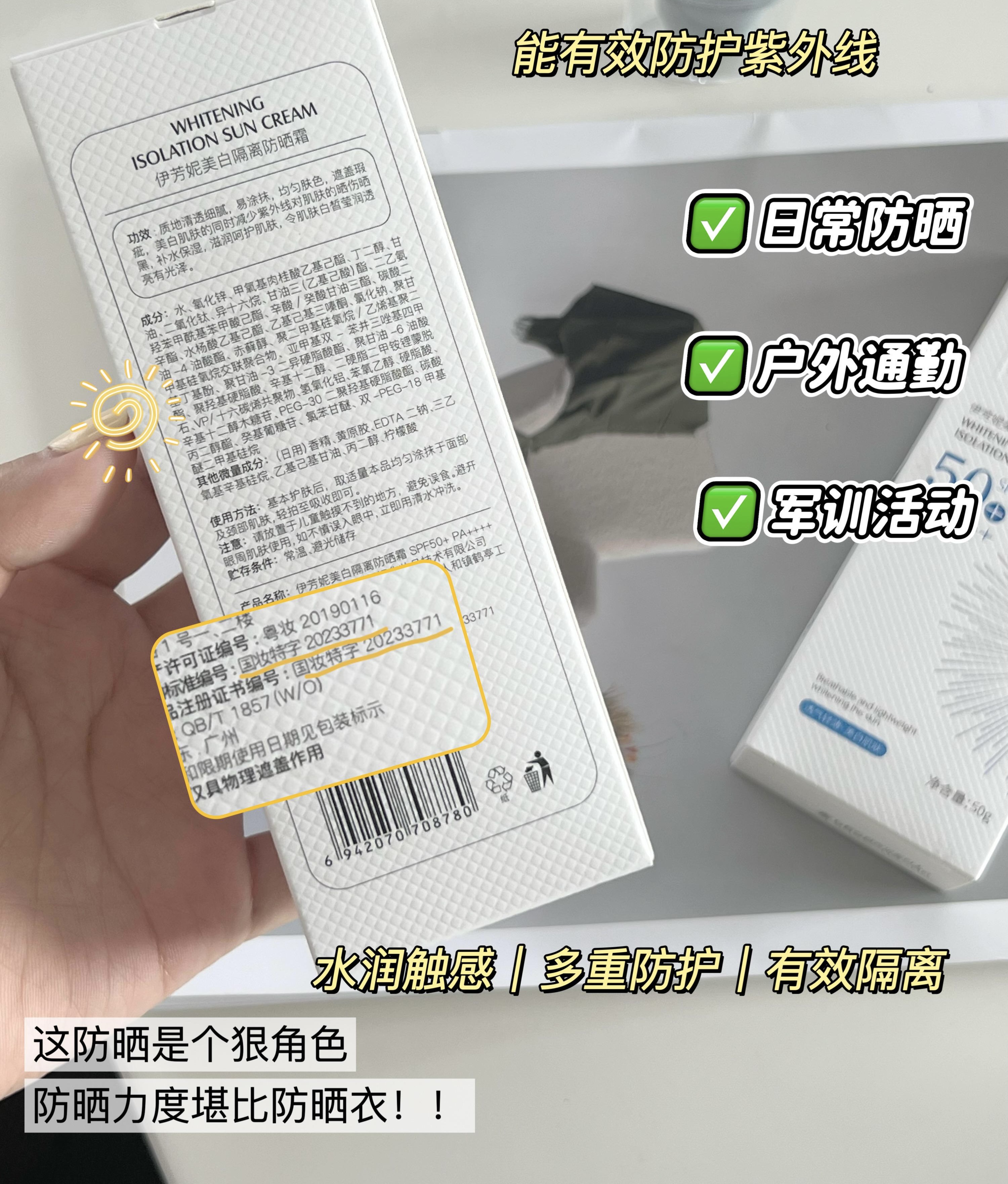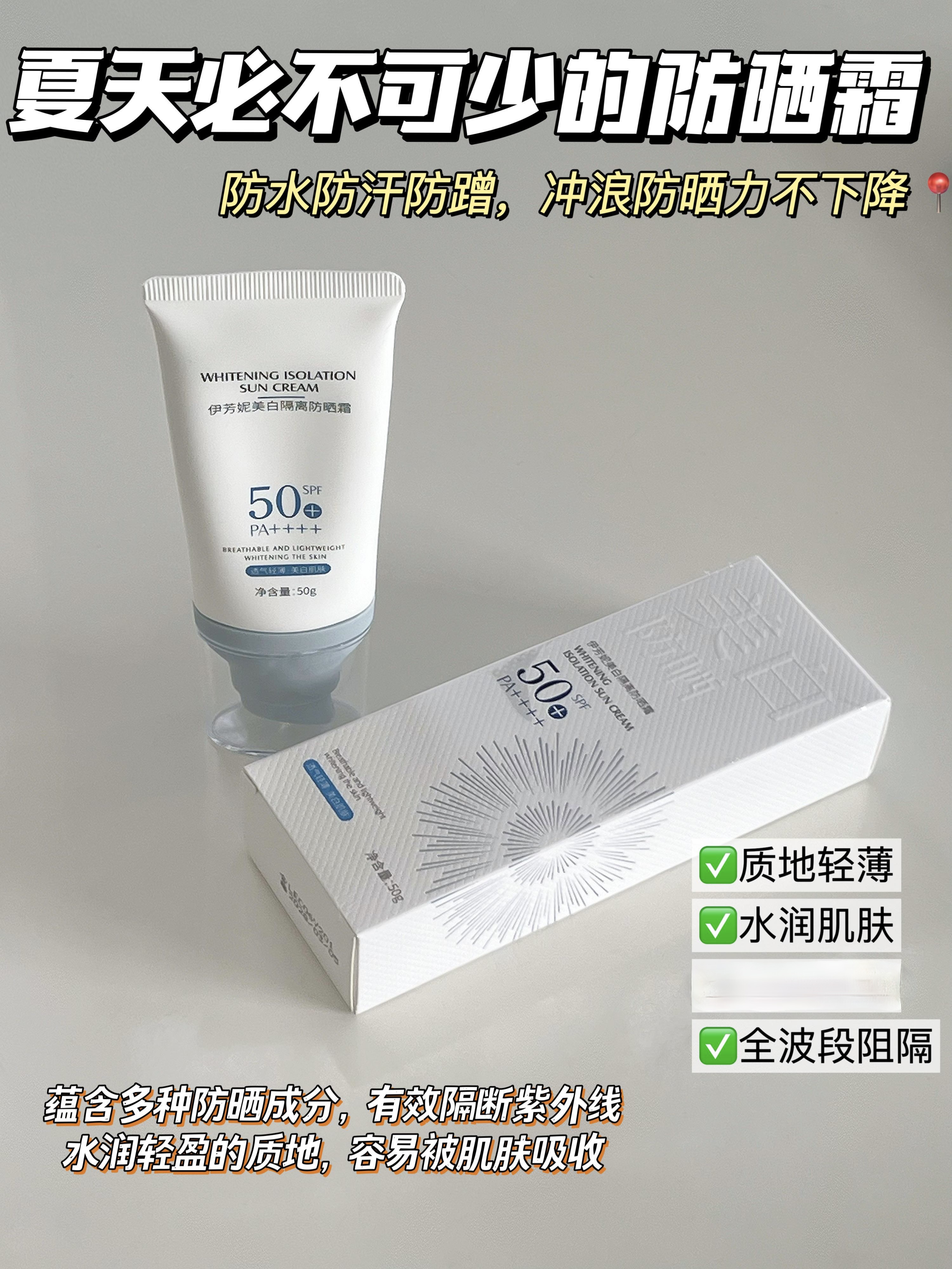 伊芳妮美白隔离防晒霜(新款)SPE50+ 长效阻隔UVB PA++++ 强效抵御UVA 清爽细腻轻薄不黏腻 50g/瓶