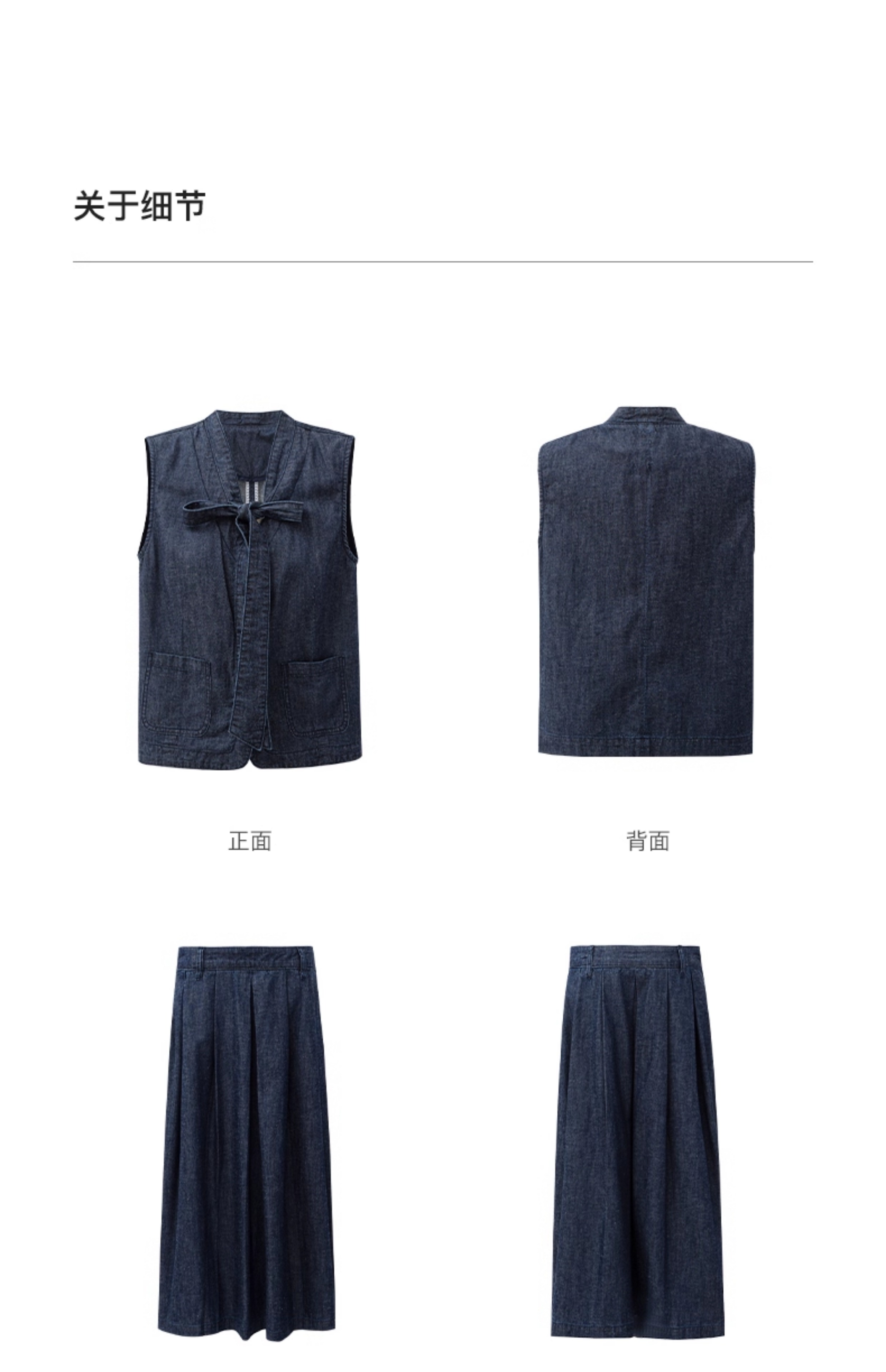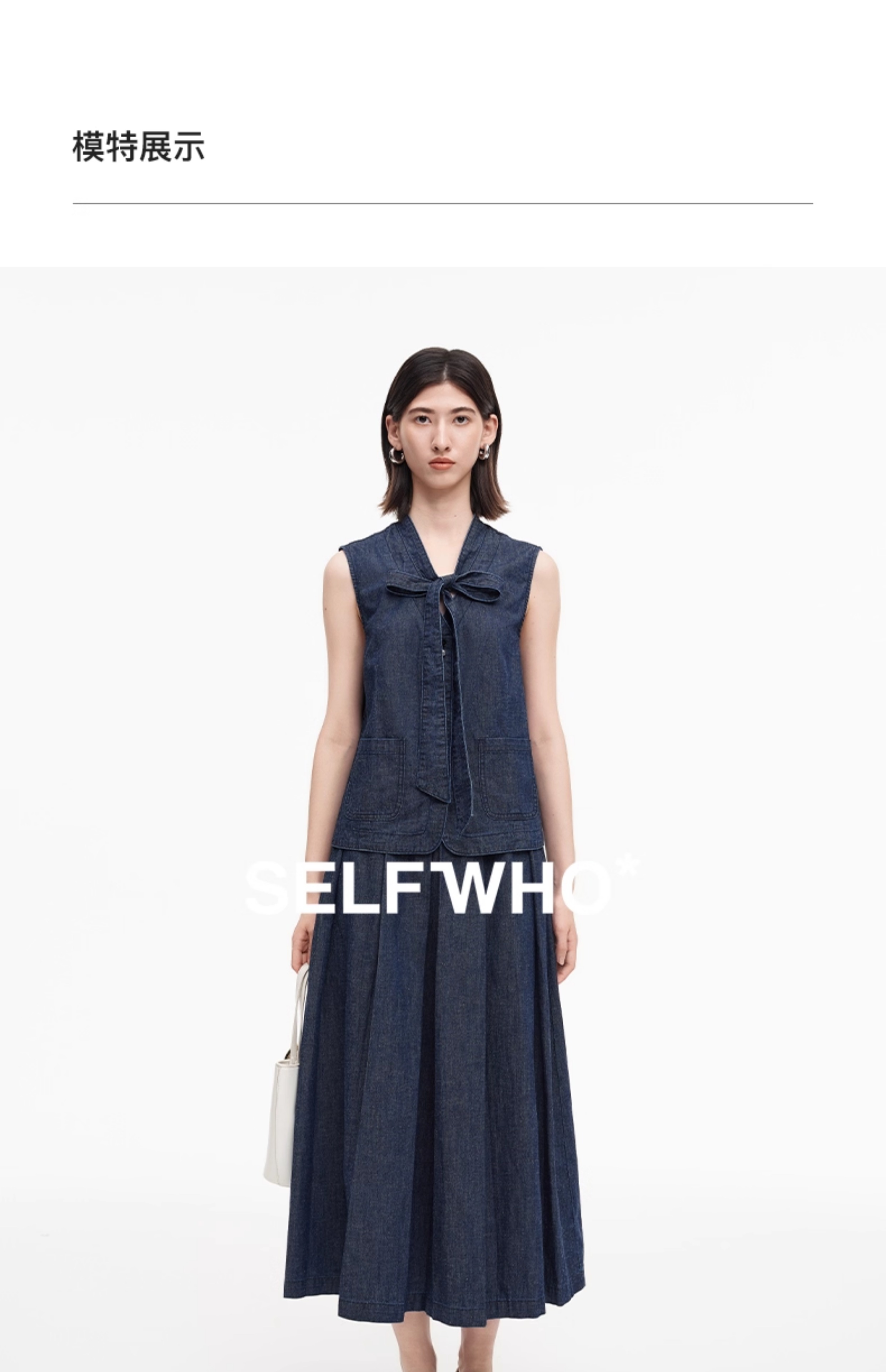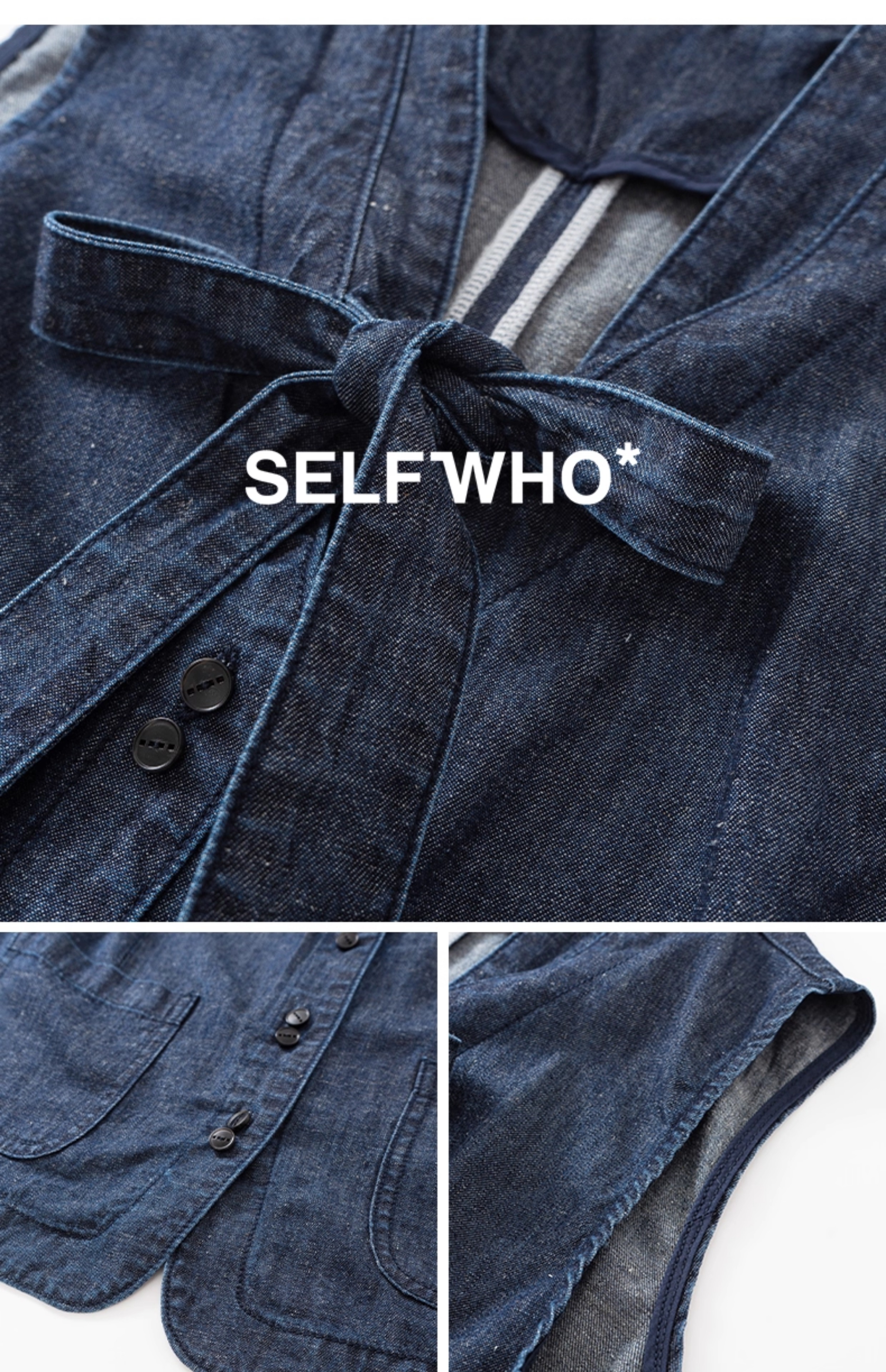 SELFWHO棉麻混纺复古原牛风V领飘带牛仔马甲女2025秋新款无袖背心