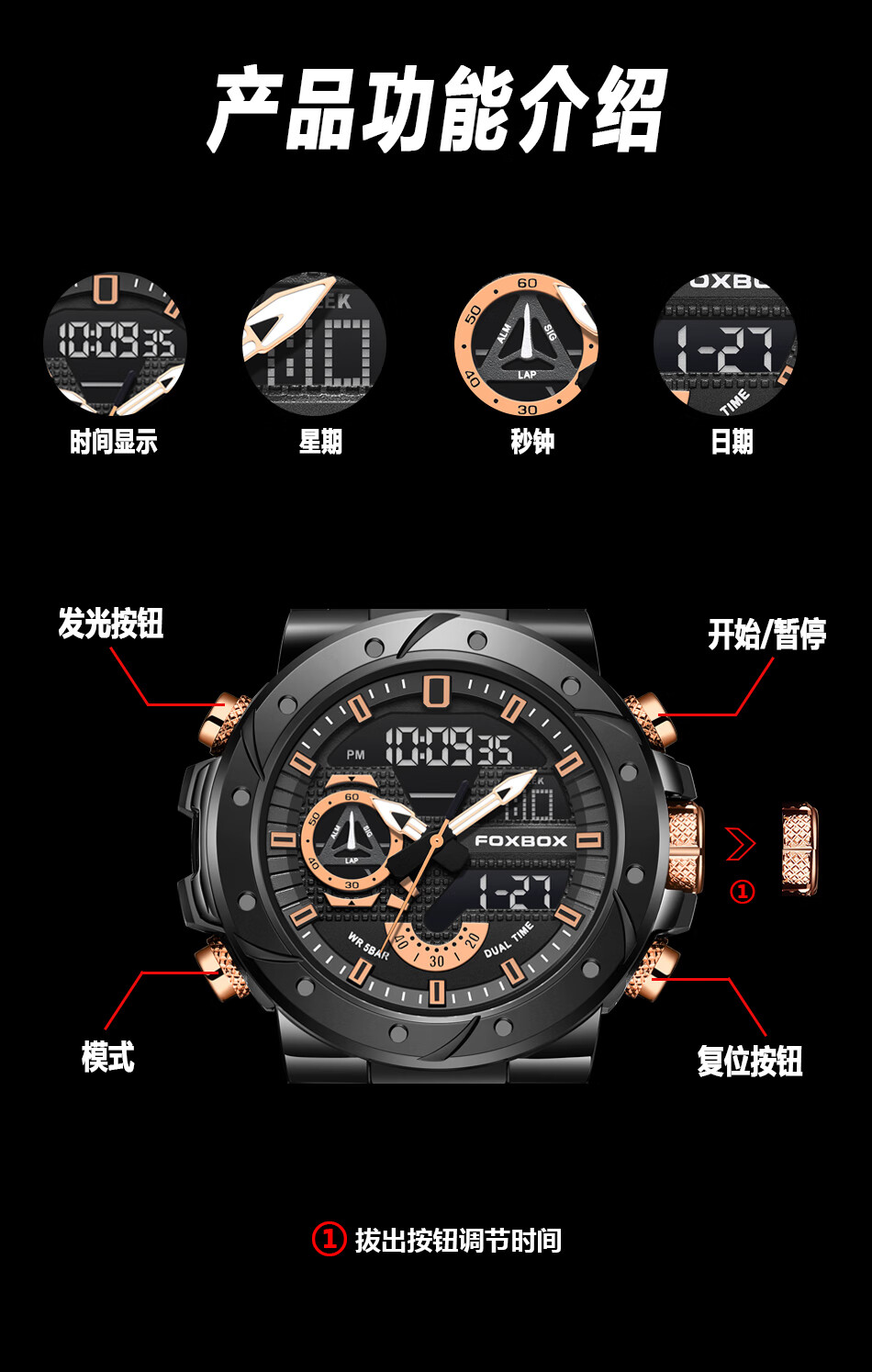 Foxbx 儿童青少年经典运动多功能电子表 FB0056