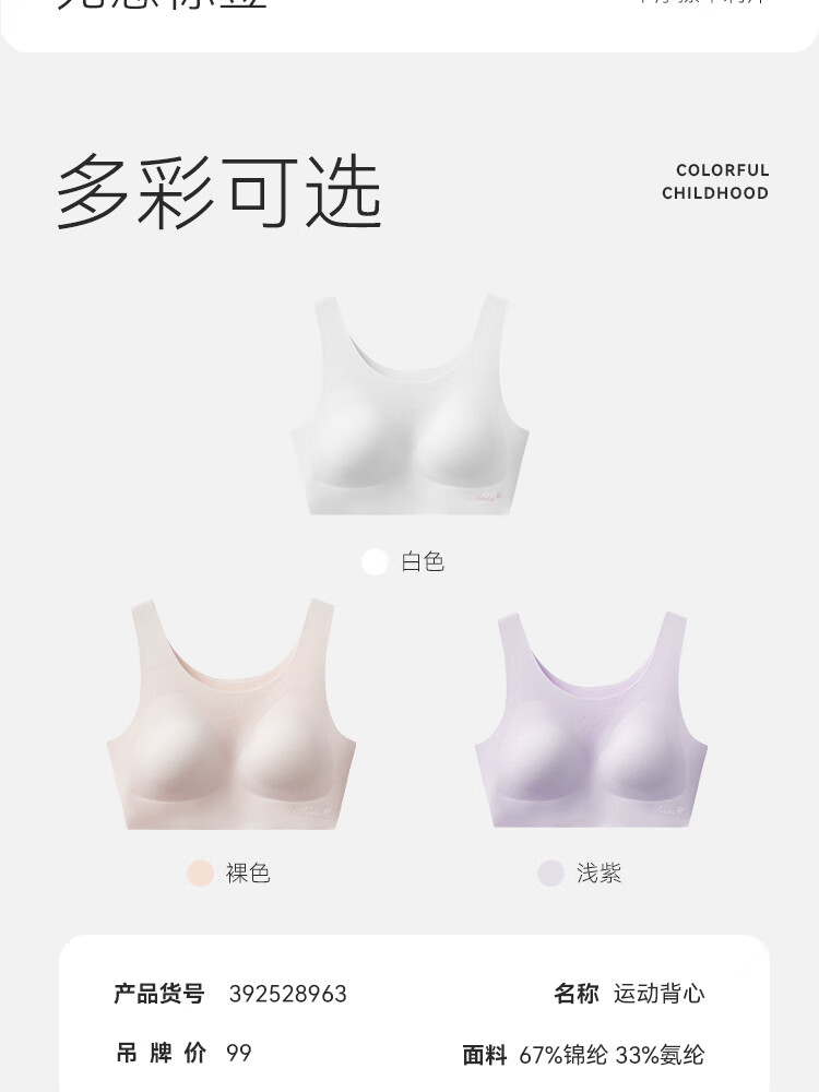 安踏儿童内衣发育内衣女大童吸湿速干3A抗菌运动背心392528963