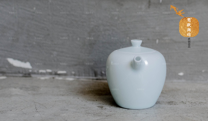 全手工白瓷隐青壶