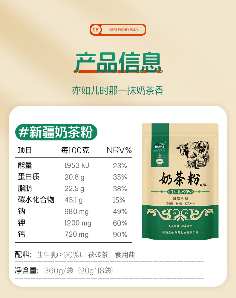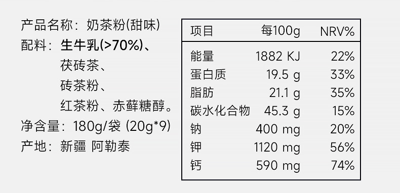 【哈纳斯】新疆阿勒泰奶茶粉无植脂末9条/袋-1-2袋
