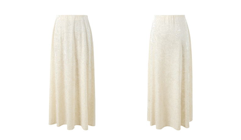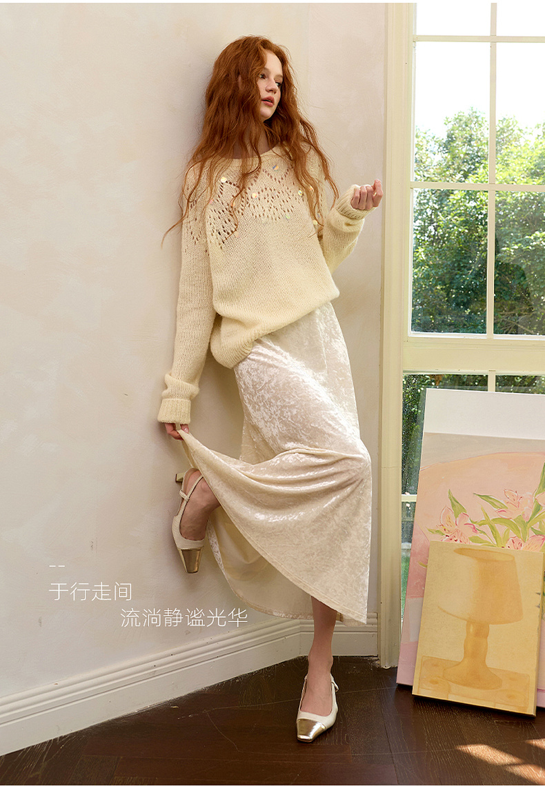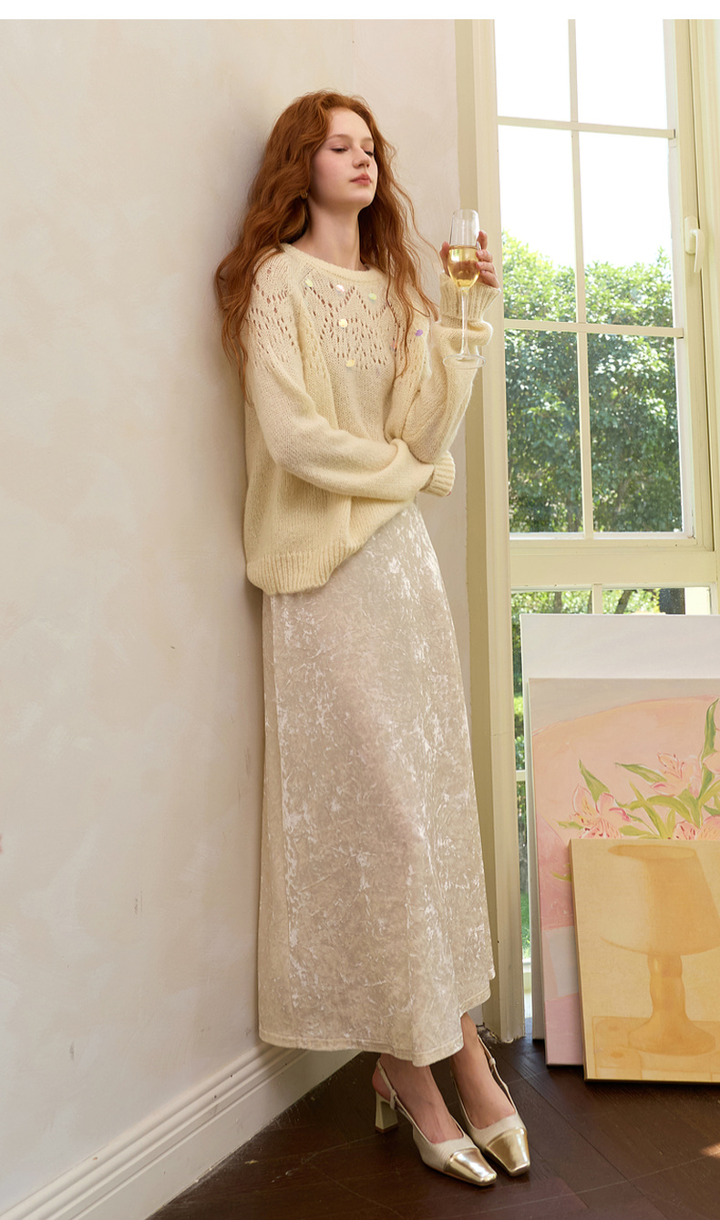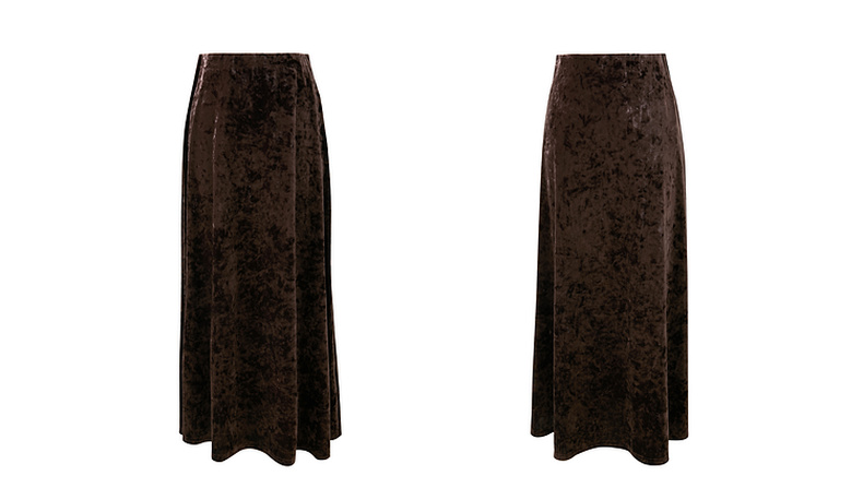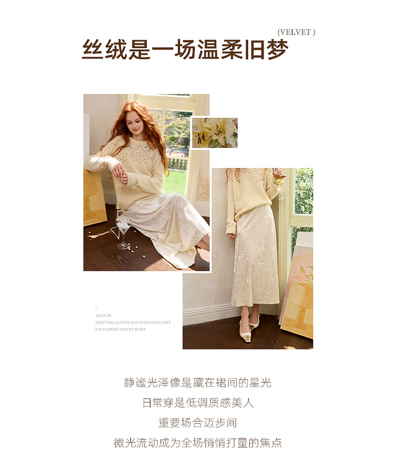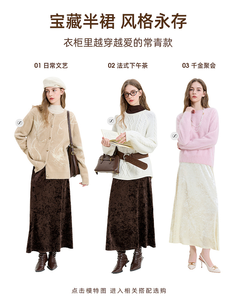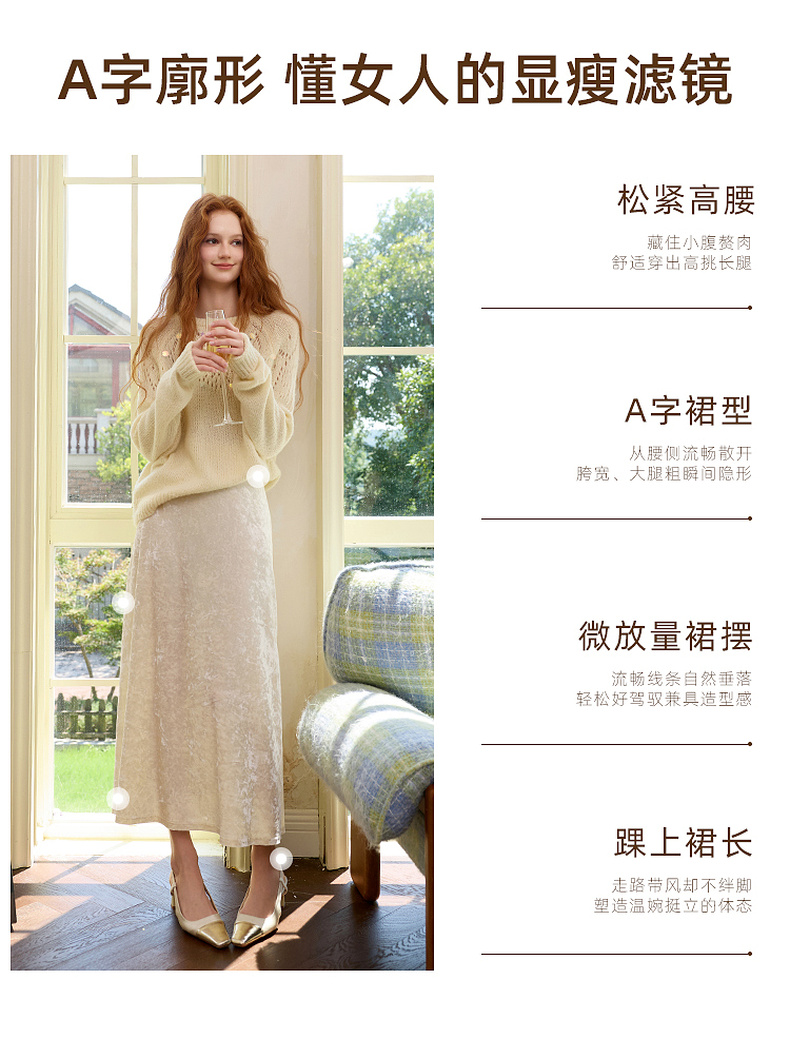 三彩2025冬季新款收腰纯色半身裙高腰冰花丝绒A字裙长裙复古M