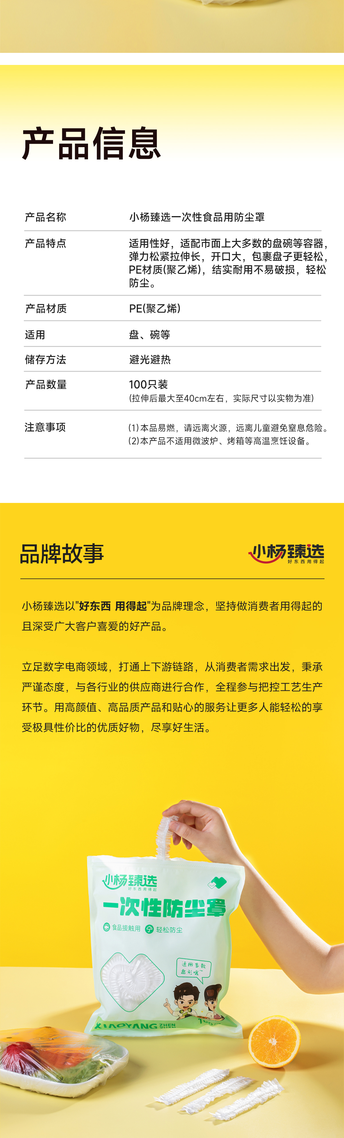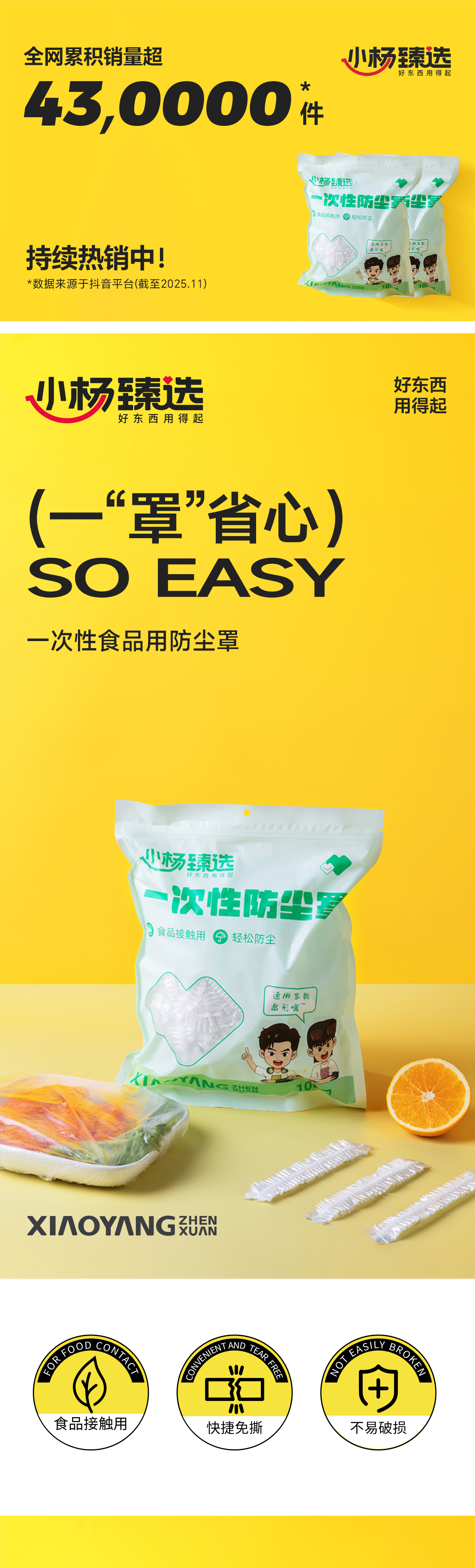 小杨臻选 一次性食品用防尘罩2件(共200只)