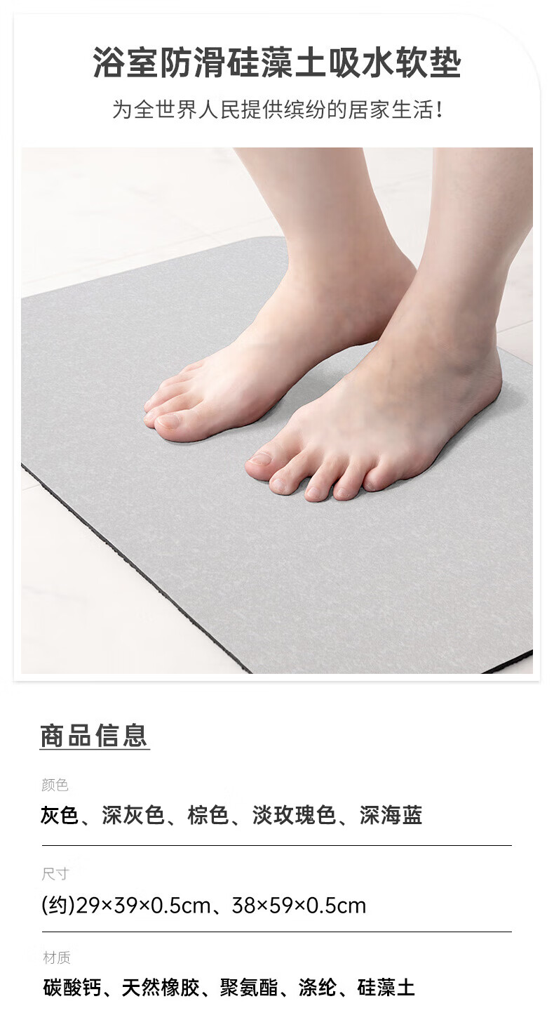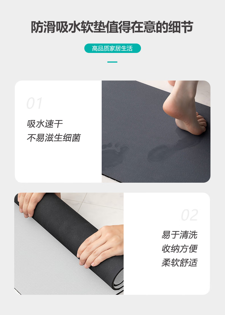 长方形家用卫生间地垫浴室防滑吸水软垫