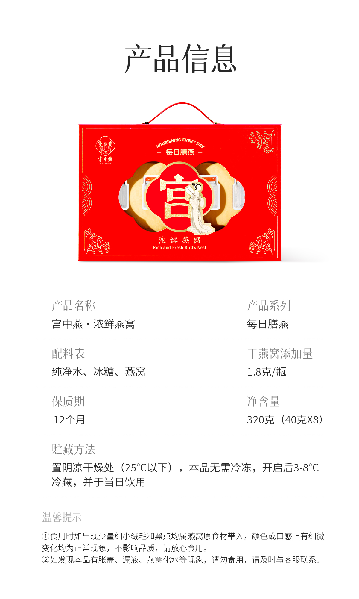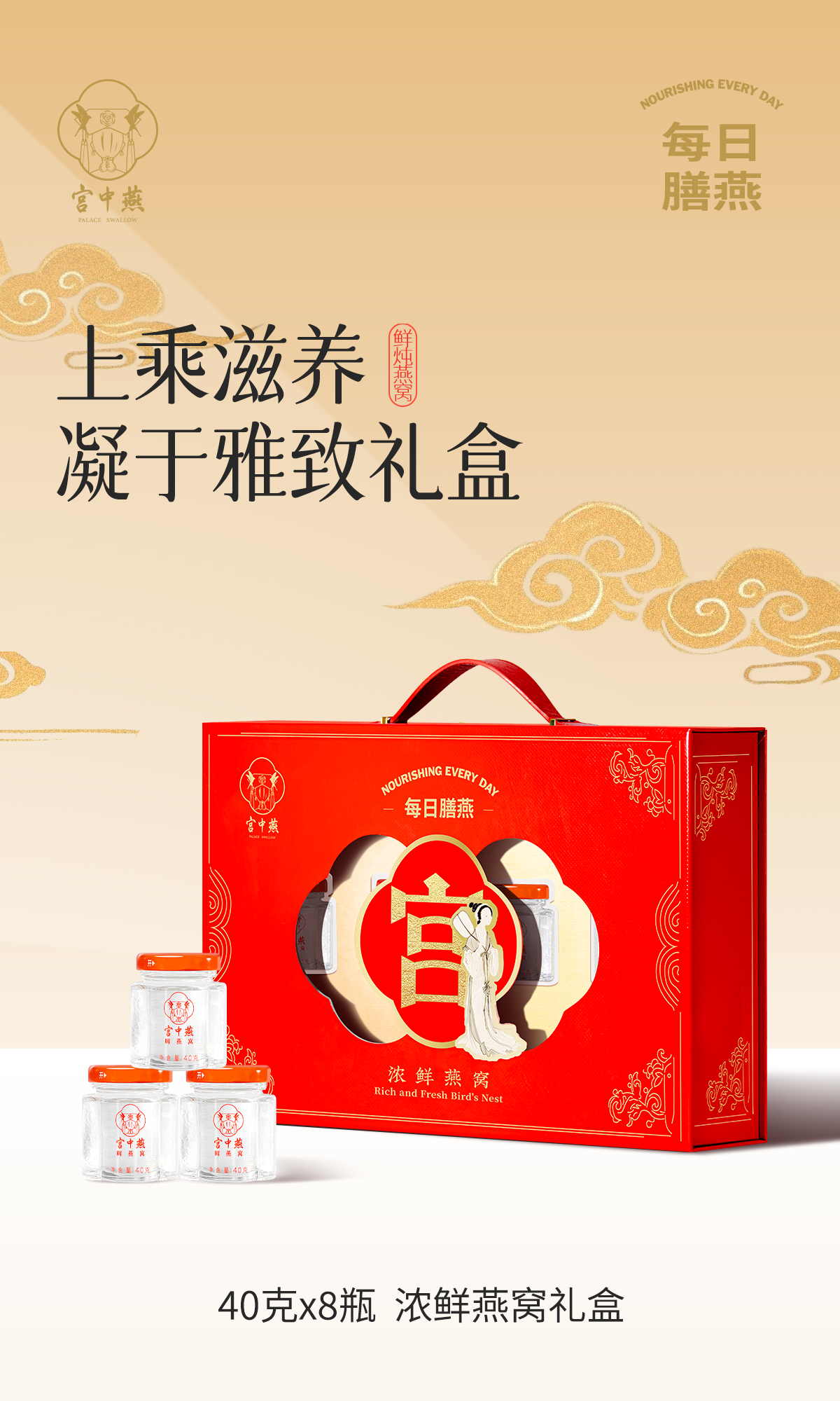 宫中燕每日膳燕浓鲜燕窝 (40g*8瓶)每瓶投入1.8克干燕窝 先进锁鲜工艺 留存纯浓鲜(9月14日发货)