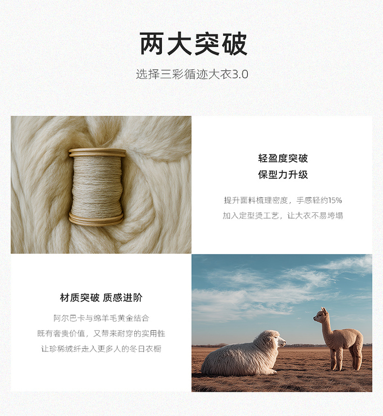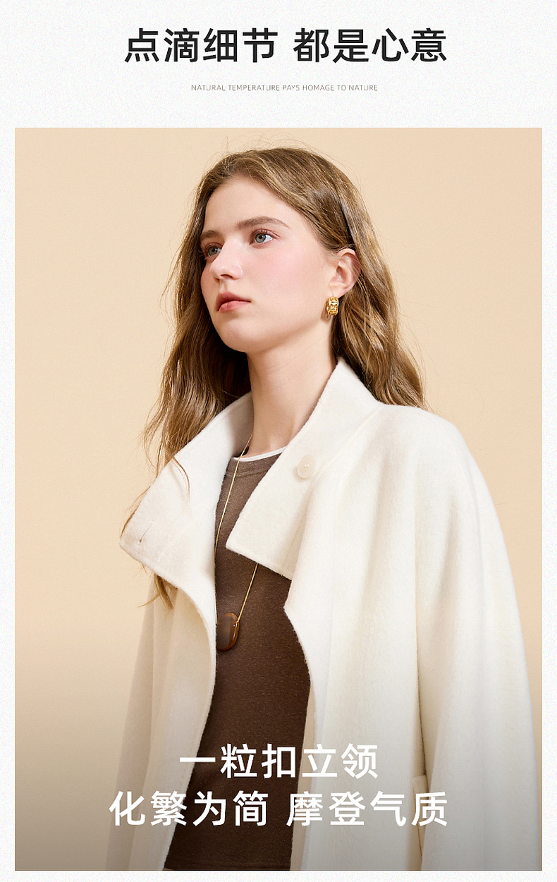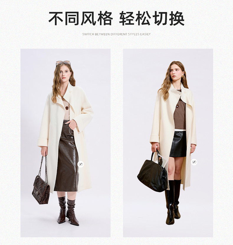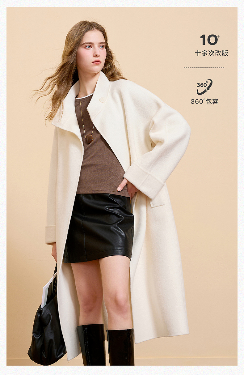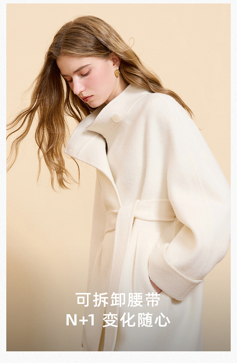 【宋轶同款】[阿尔巴卡]三彩2025冬季新款立领双面呢绵羊毛大衣毛呢外套M