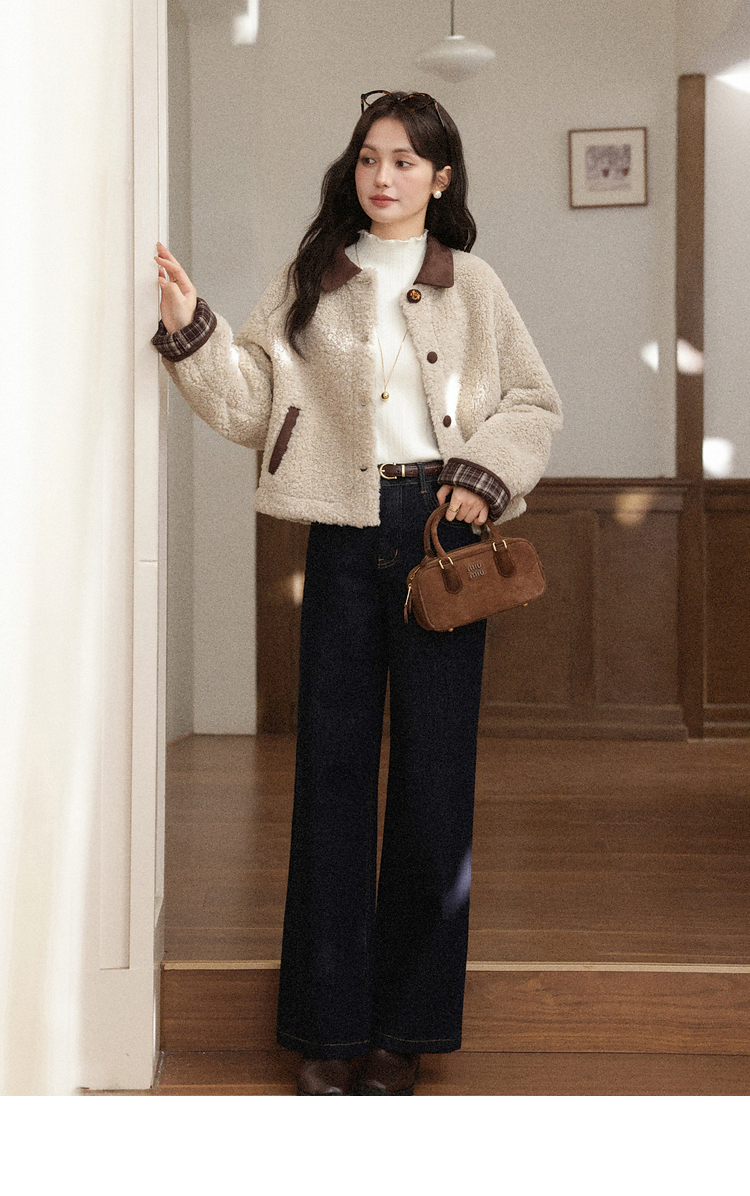 鹿向南「松果与雪」气质百搭摩卡色毛呢外套女冬长款保暖宽松大衣