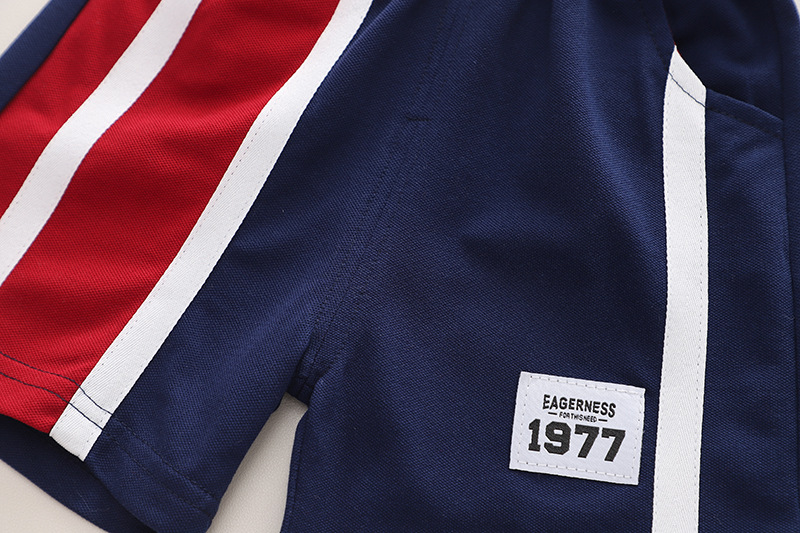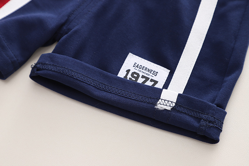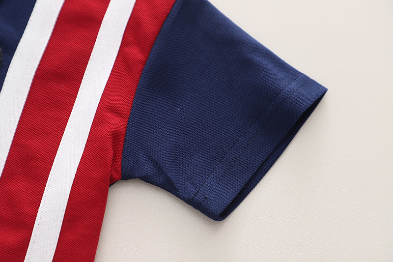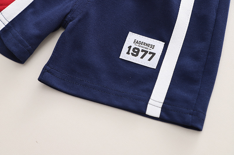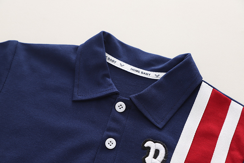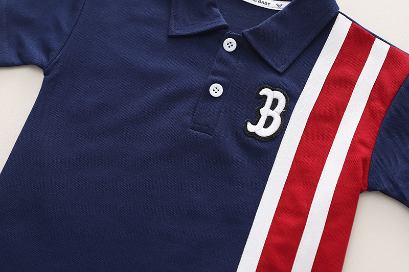 A类夏季新款翻领b字POLO衫童装男童两件套短裤夏装儿童套装