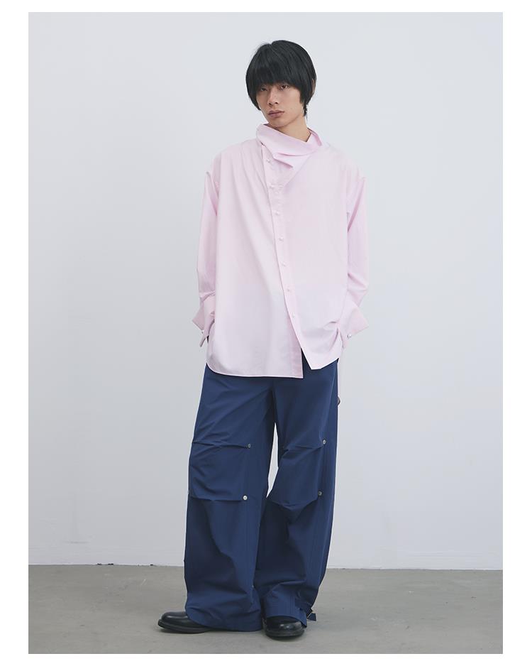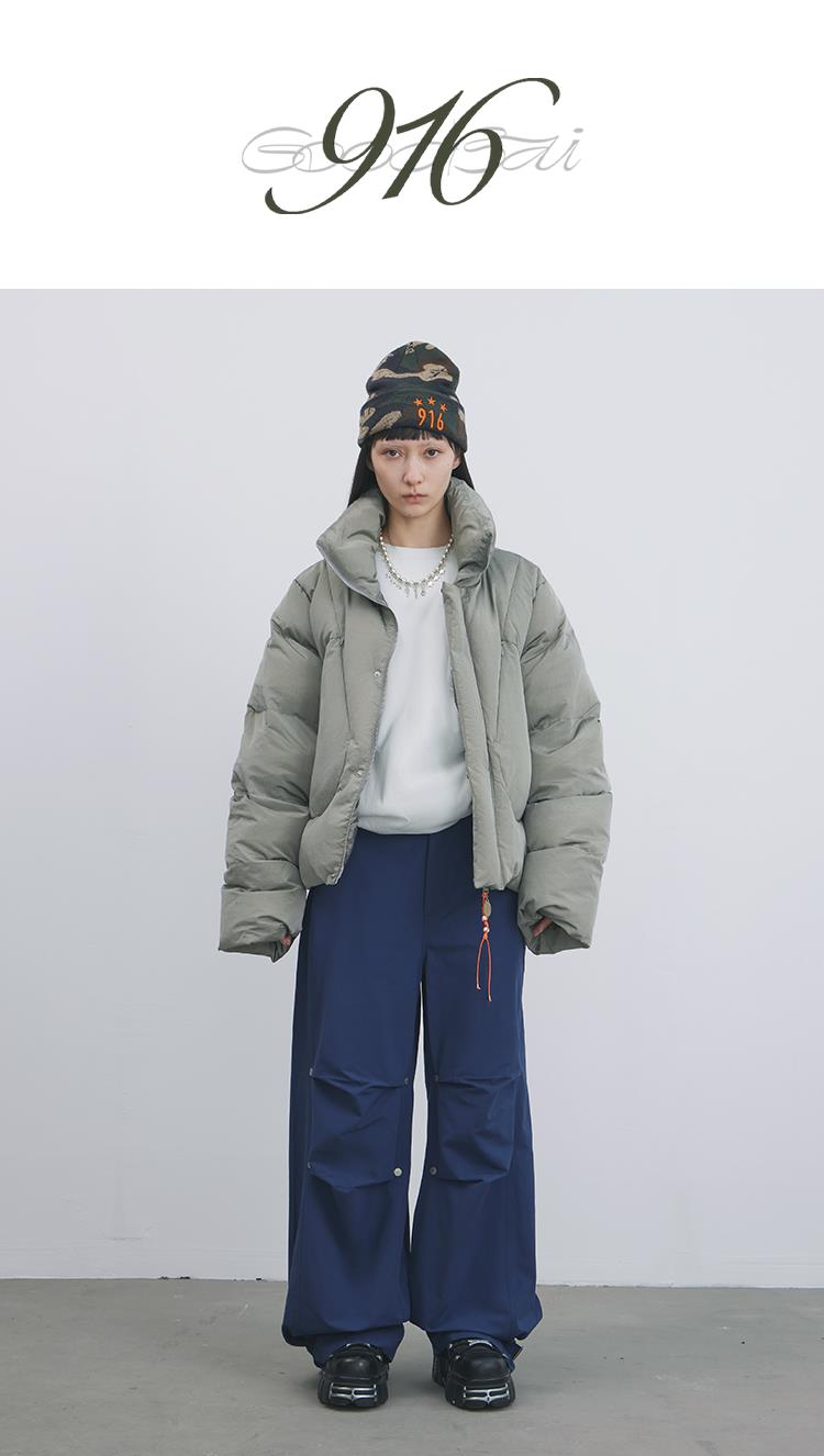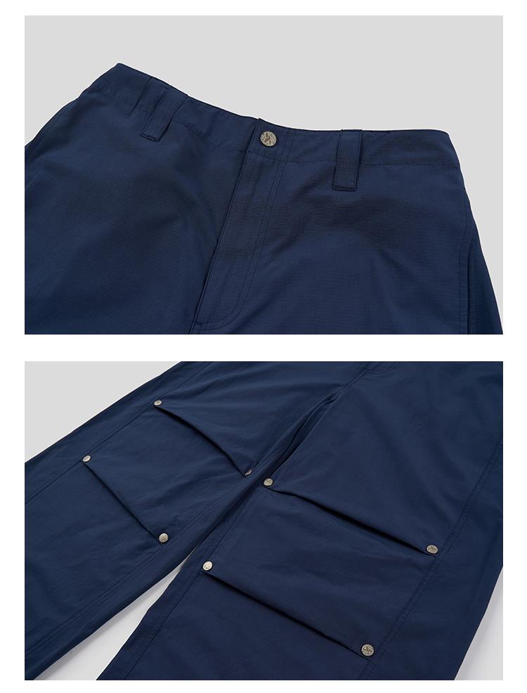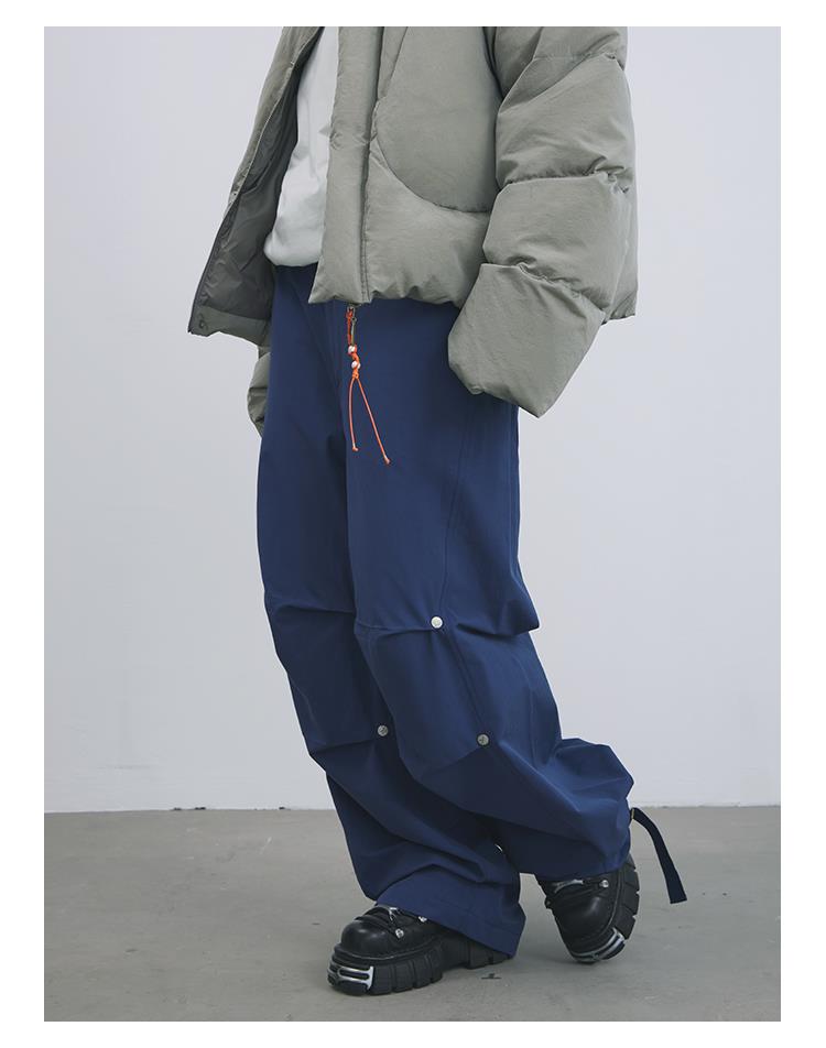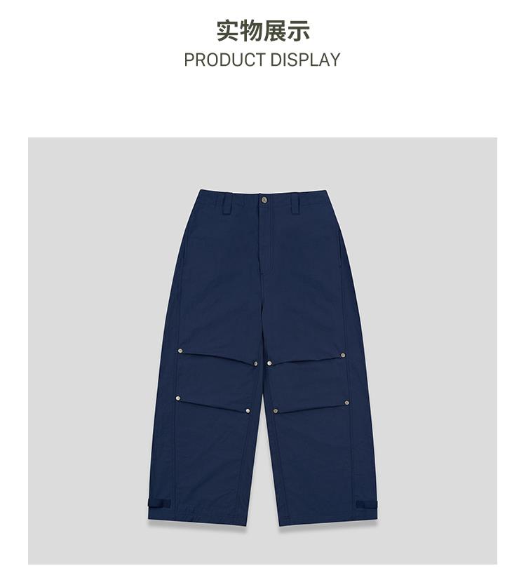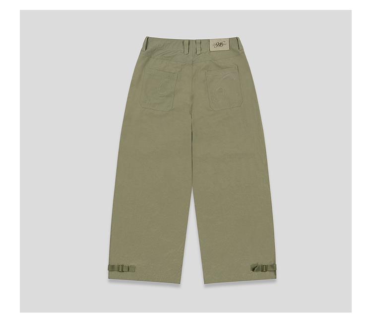 GOODBAI 916 膝盖打褶刺绣工装直筒休闲裤