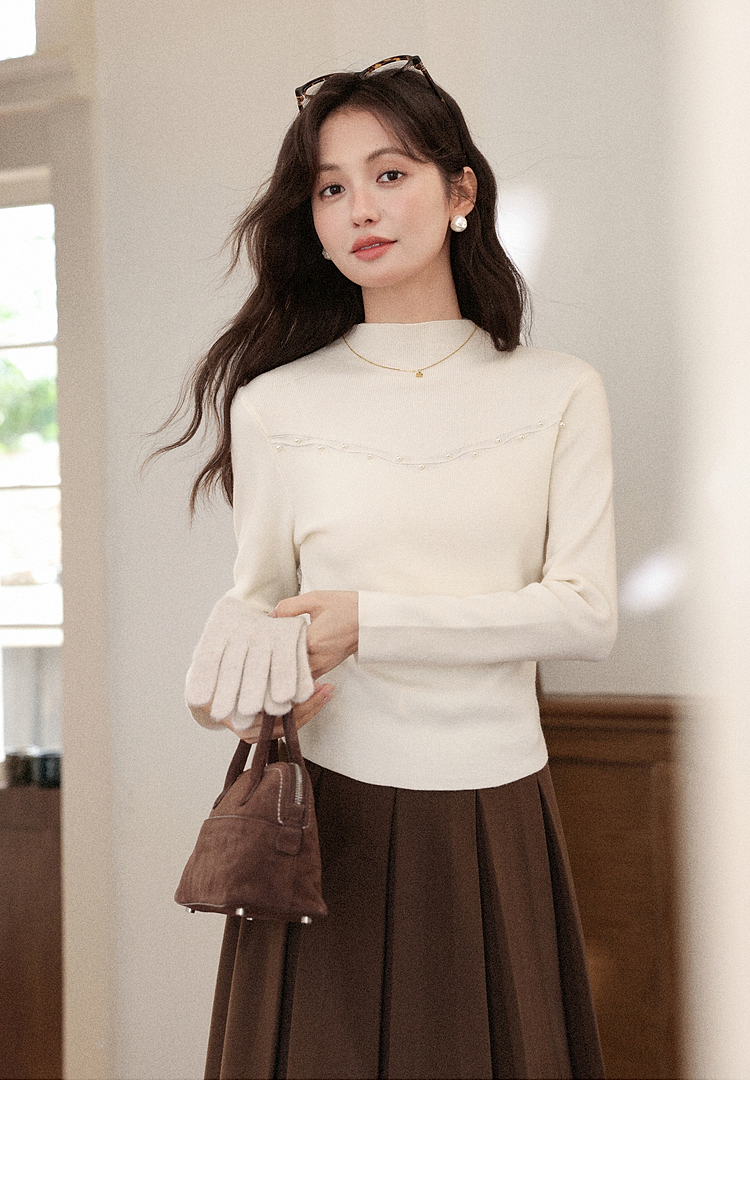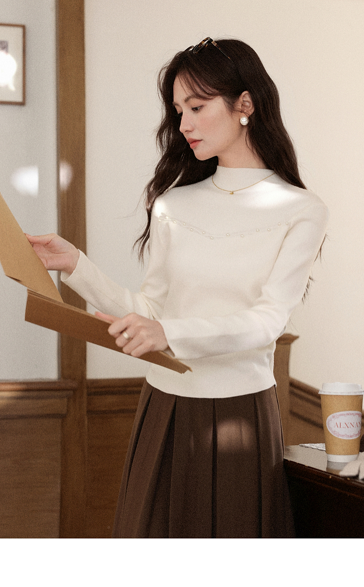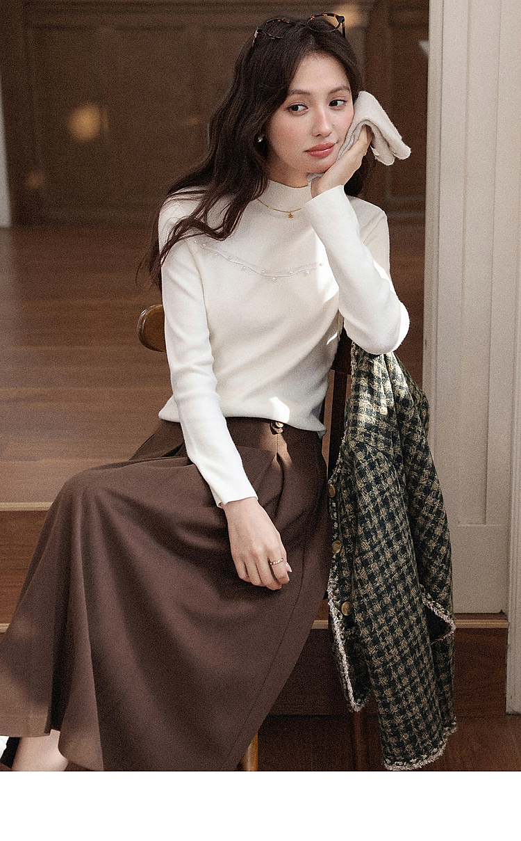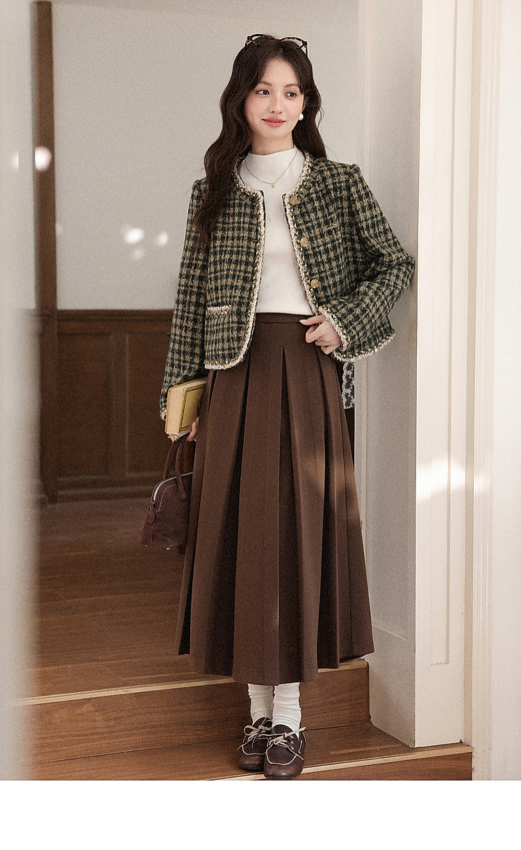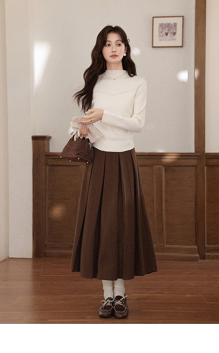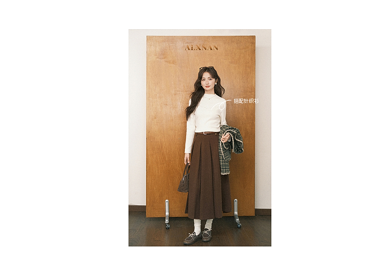 鹿向南「布拉格书店」高腰咖色半身裙女秋新款垂感显瘦长款百褶裙