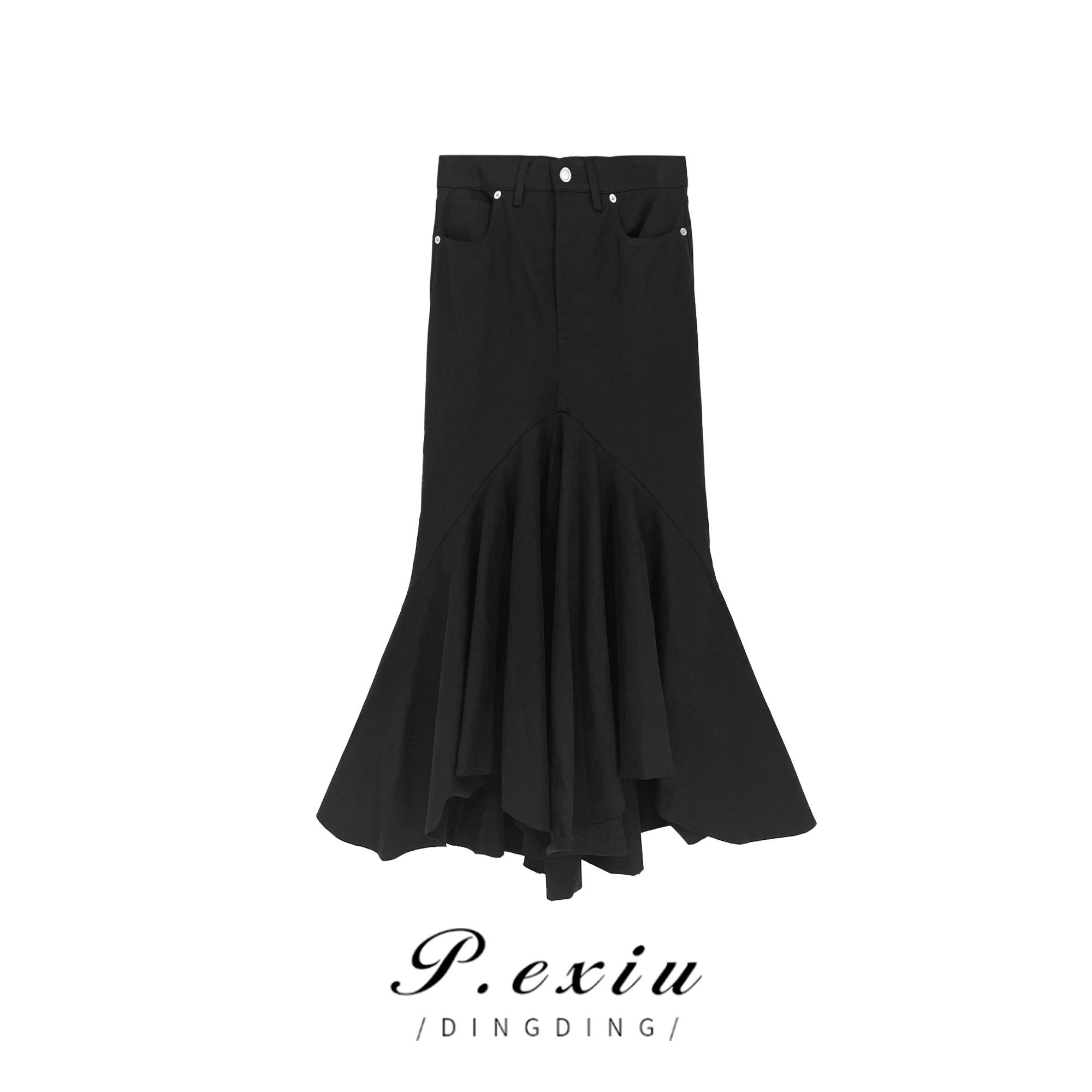 01-1 潘依绣丁丁宠粉设计感a字修身显瘦牛仔拼接半身裙 Z21800