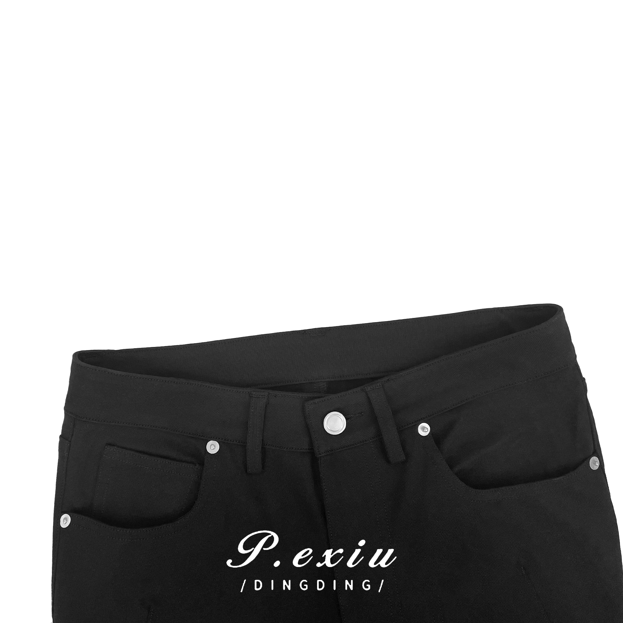 03-5潘依绣丁丁宠粉PanYiXiu/潘依绣韩系水洗松紧腰系带拖地直筒牛仔裤 D6176