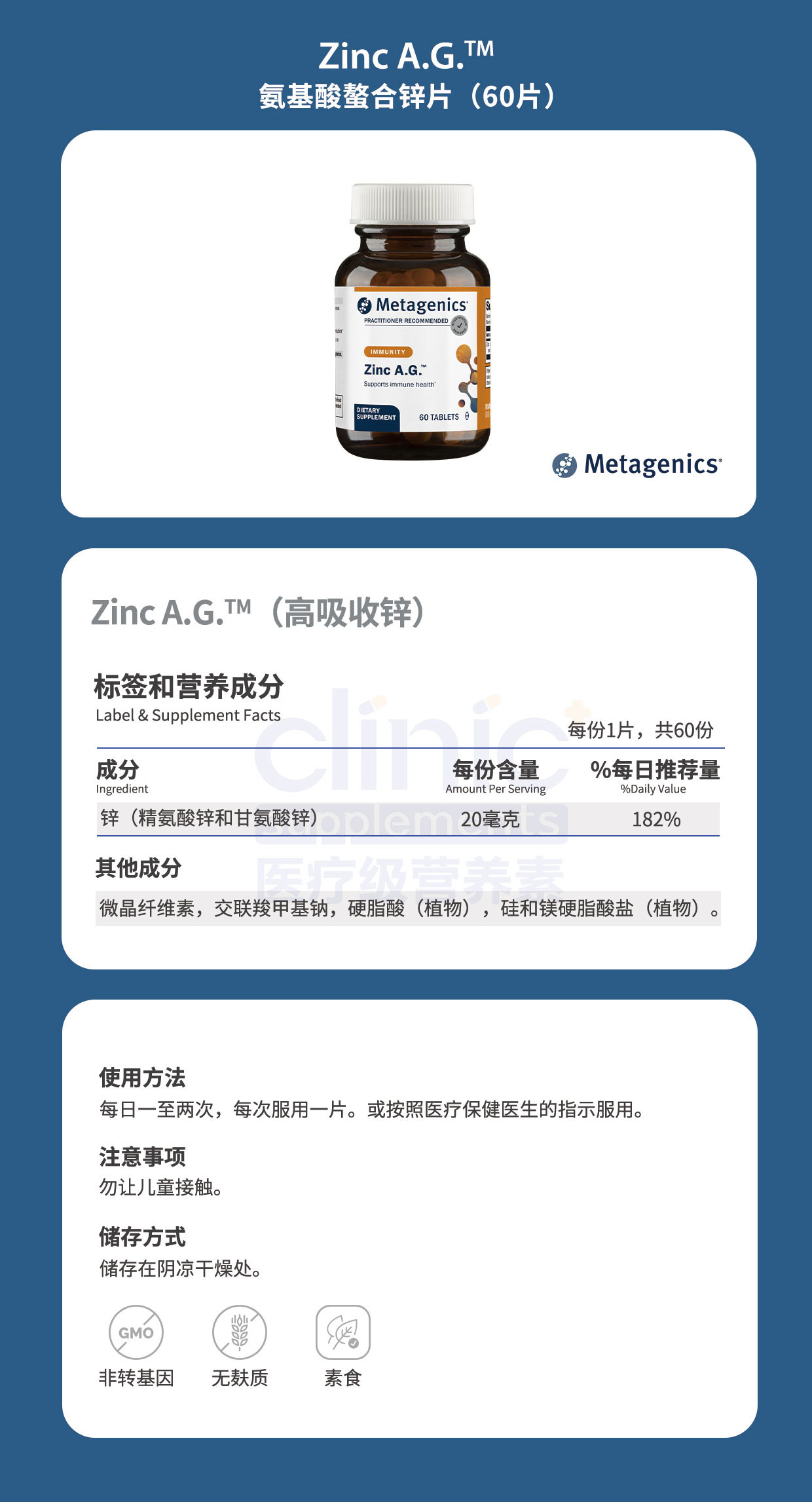 Metagenics Zinc A.G.™ 锌 60片【效期2027年7月底】