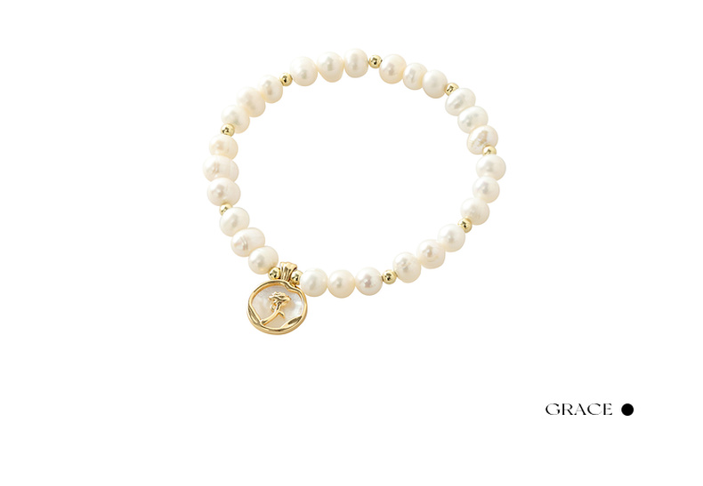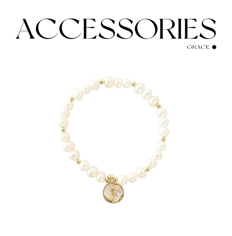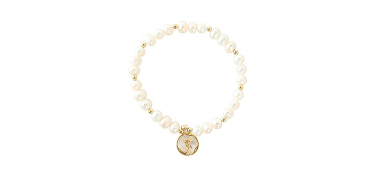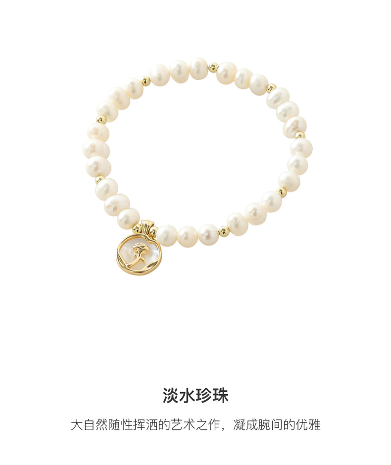 三彩2025新款赫本风法式淡水珍珠串珠手链女贝壳玫瑰浪漫送礼约会