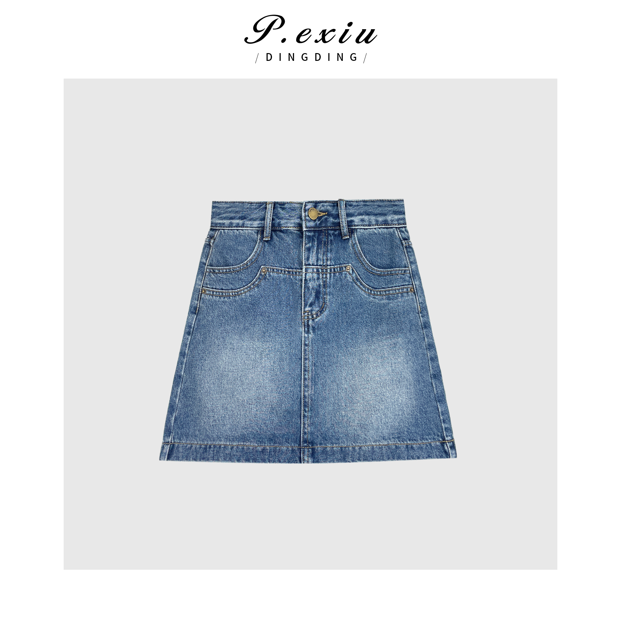 03-5潘依绣丁丁宠粉PanYiXiu/潘依绣【含安全裤】感水洗休闲百搭牛仔短裙 D6225