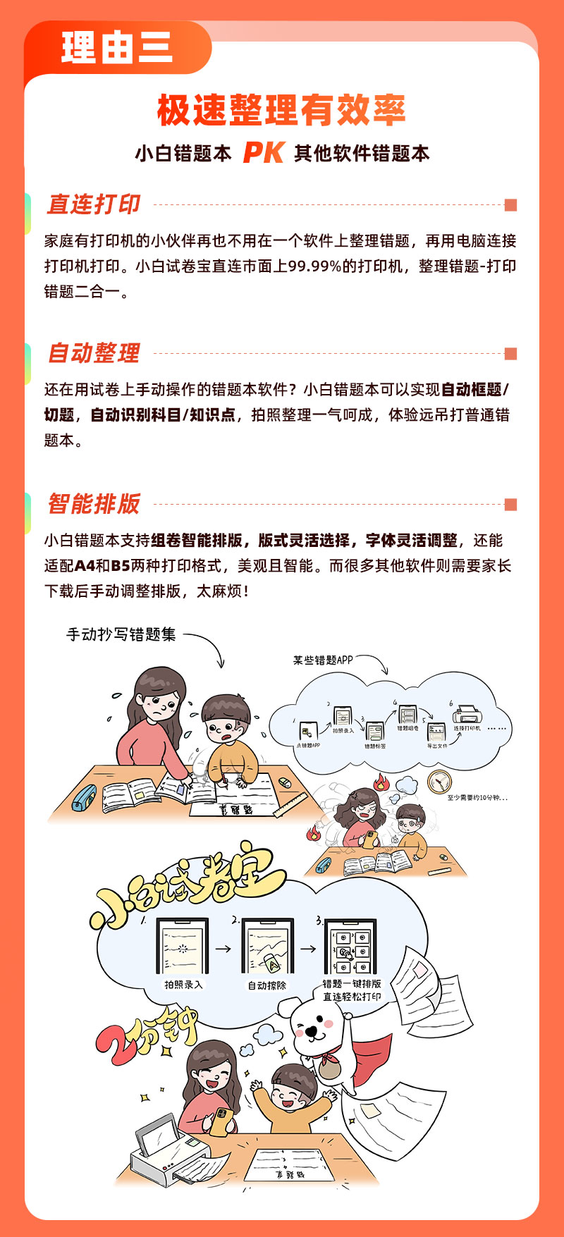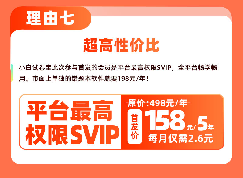 1天仅需8分钱!每月打印450份【小白试卷宝SVIP年卡 】五年卡 创建孩子的个性错题库 500+小初高真题试卷,口算汉字作业英文练习