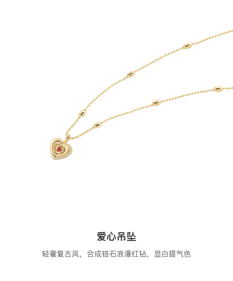 【“红”运相伴 耀启新年】三彩2026新款金色珠链爱心红钻项链