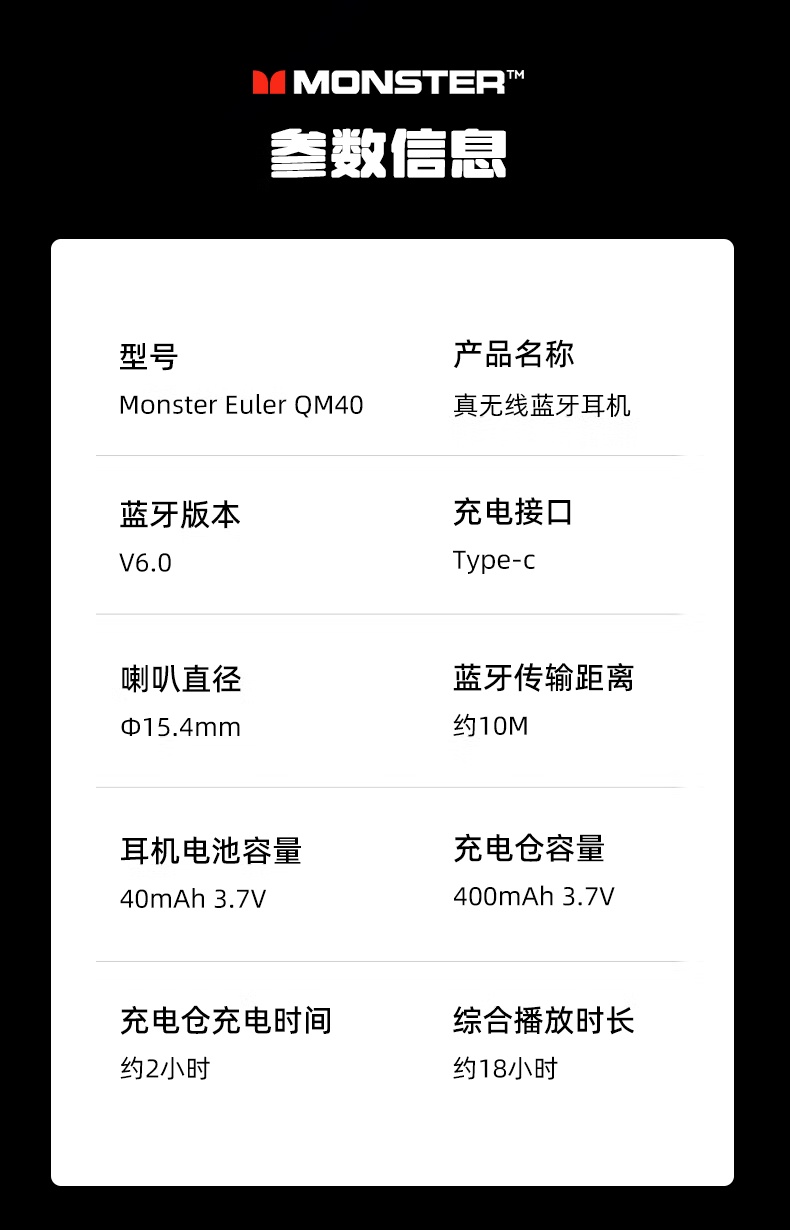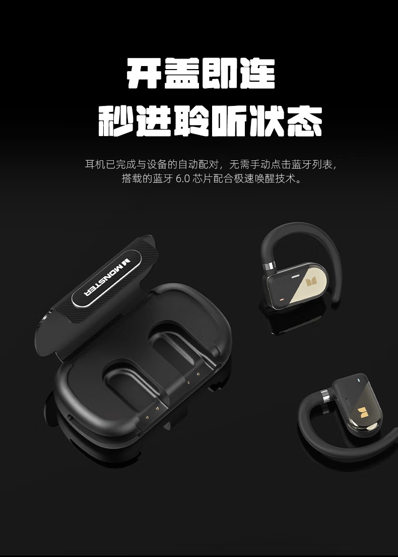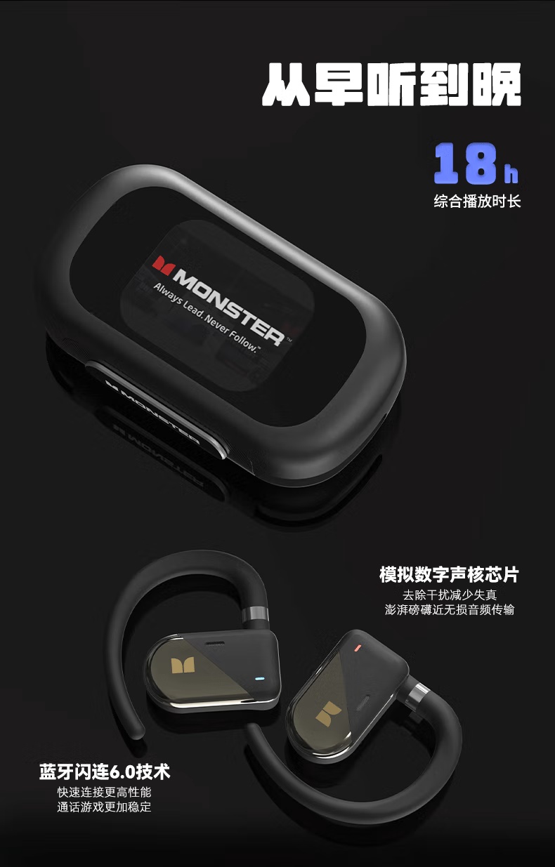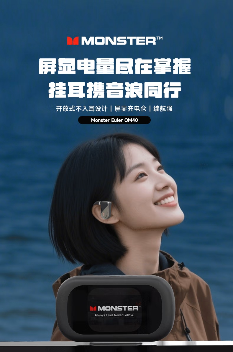【新款上市】MONSTER/魔声 QM40 蓝牙6.0 不入耳开放式OWS耳机 通话降噪 触屏操控