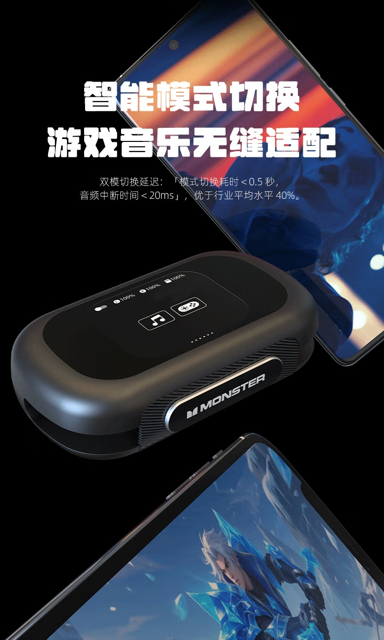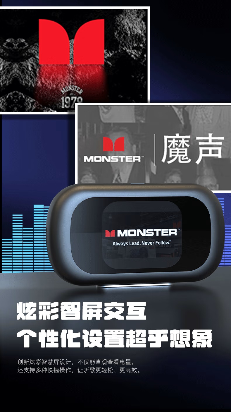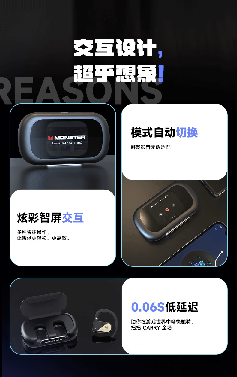 【新款上市】MONSTER/魔声 QM40 蓝牙6.0 不入耳开放式OWS耳机 通话降噪 触屏操控