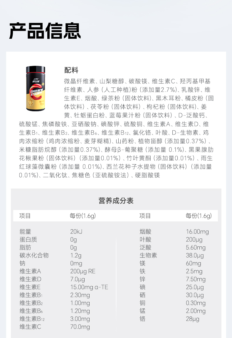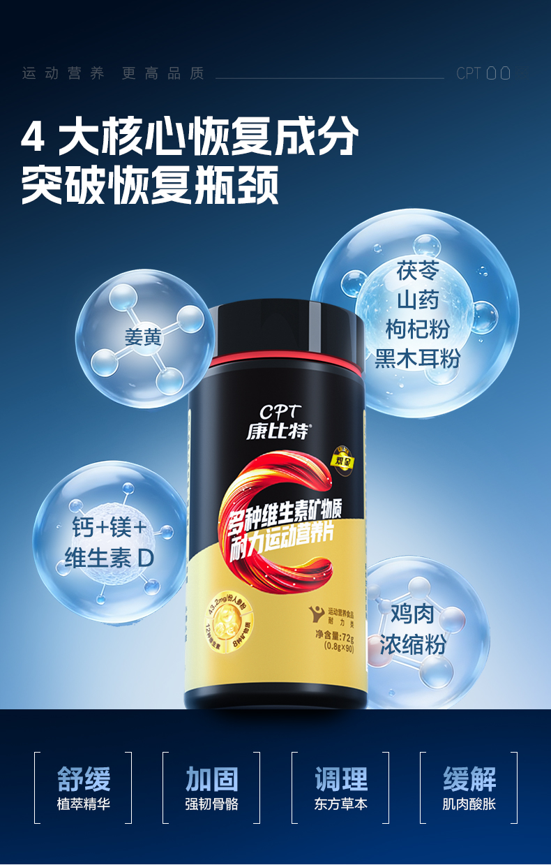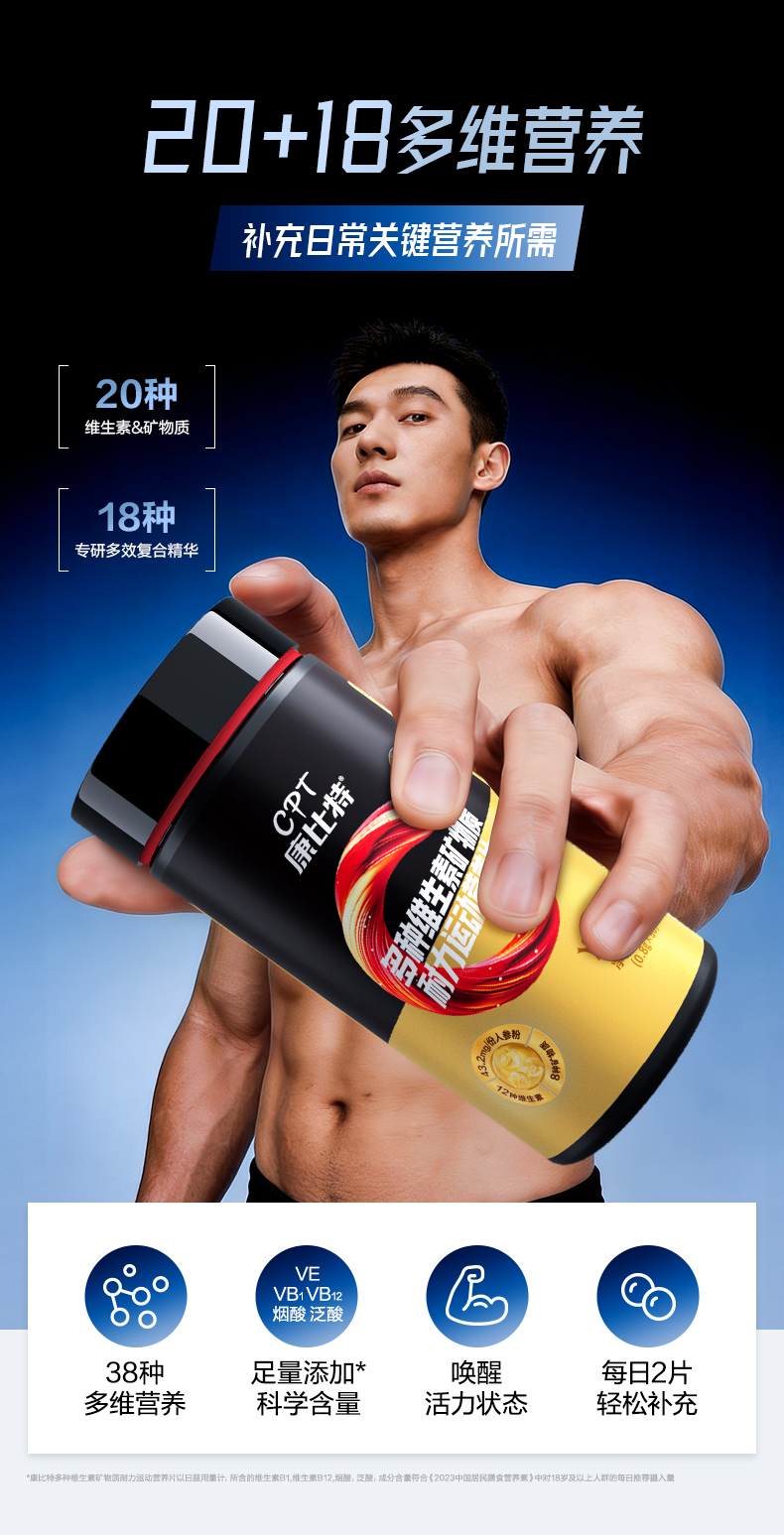 康比特男士复合维生素20种维矿b族维生素复合片健身男90粒含姜黄