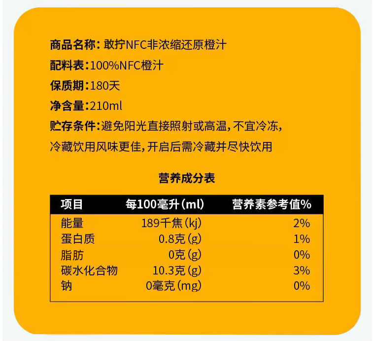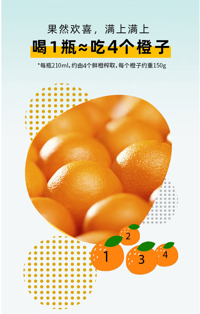 【敢拧】4个橙100%NFC橙汁210ml*10瓶 四季鲜橙鲜榨 非浓缩还原无添加纯果汁