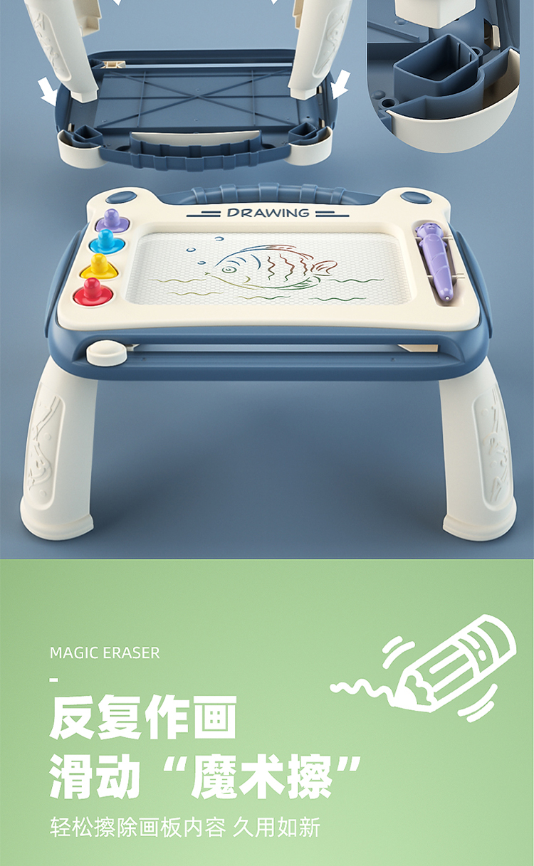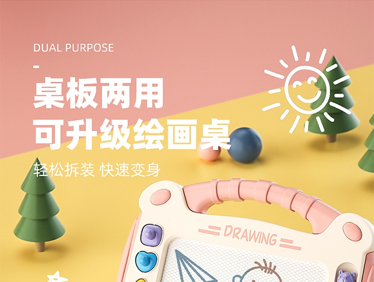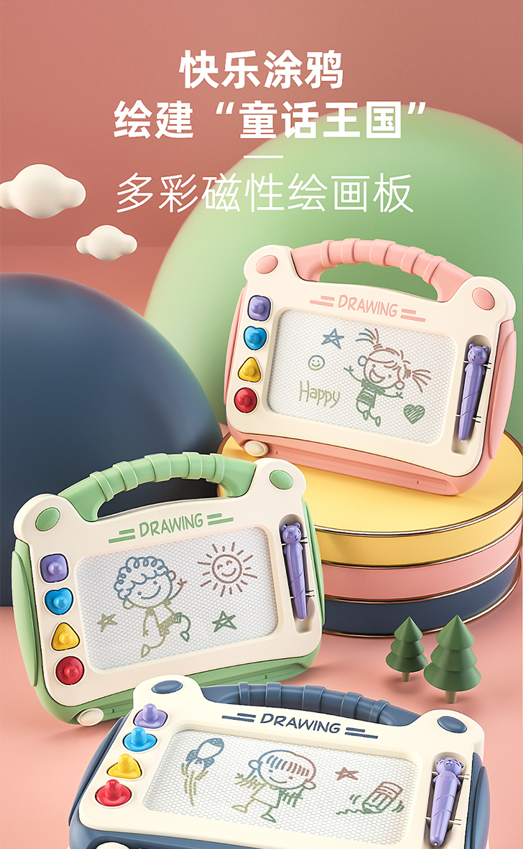 儿童磁性画画板 带支架可擦写字板涂鸦绘画板 含印章画笔